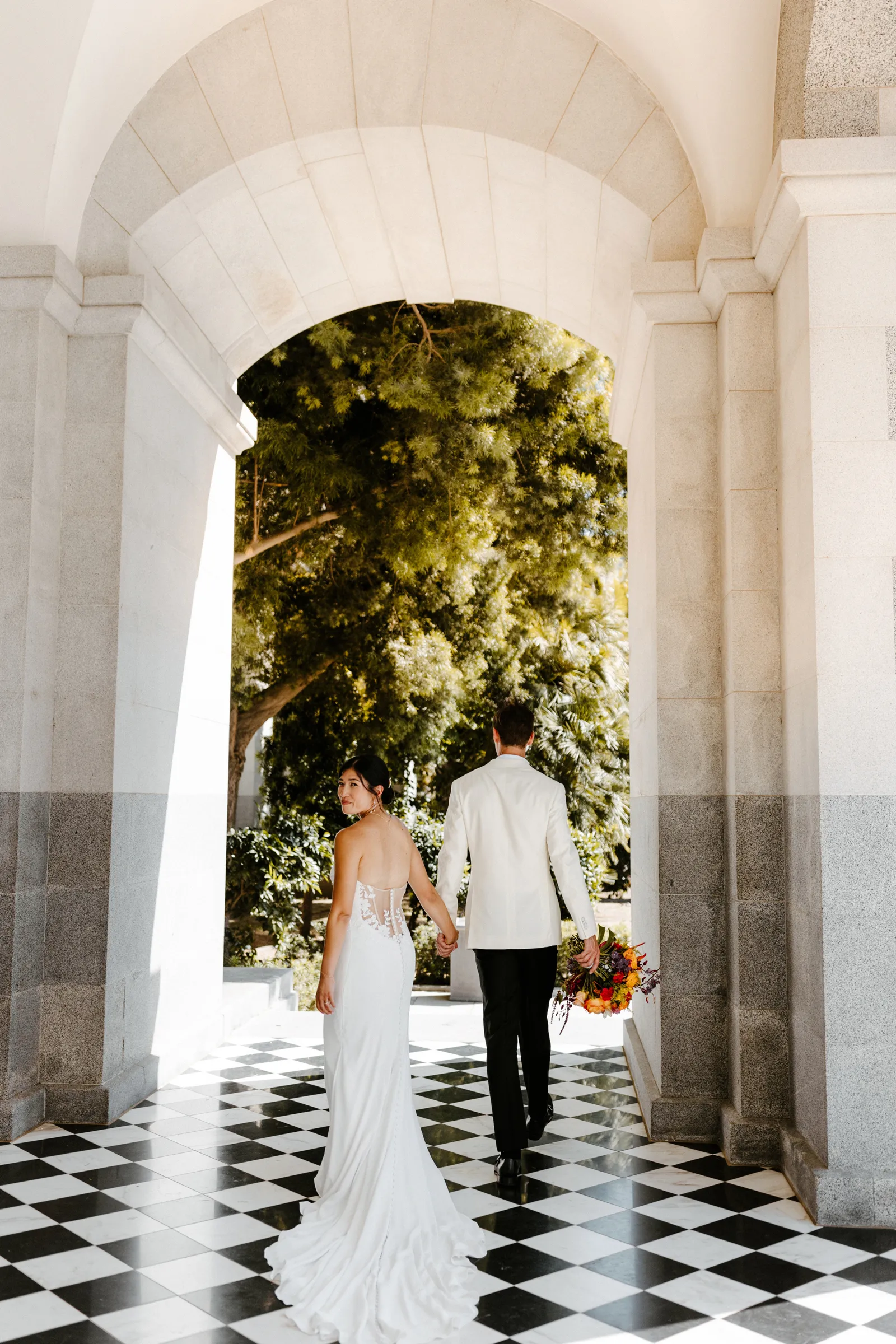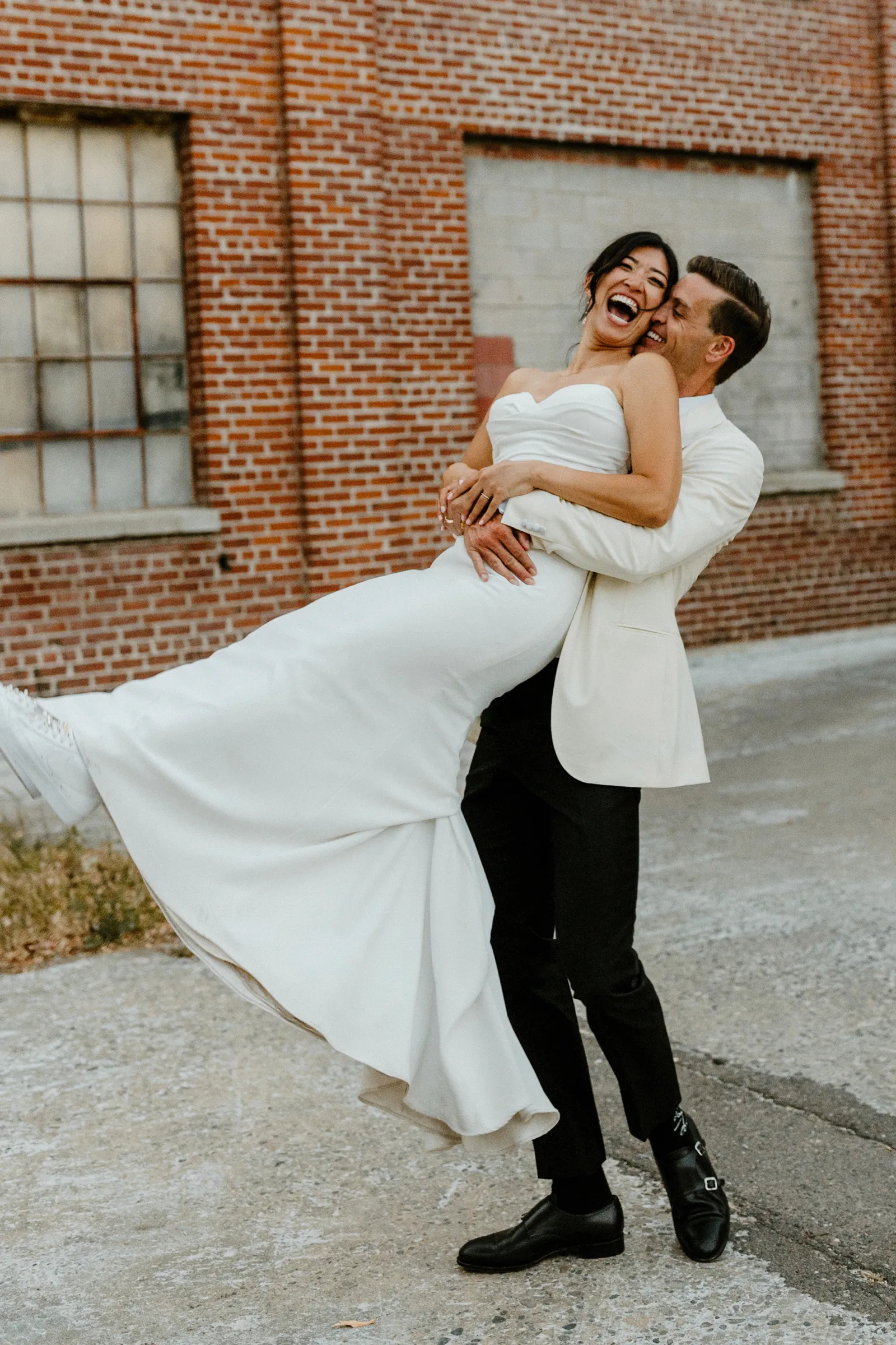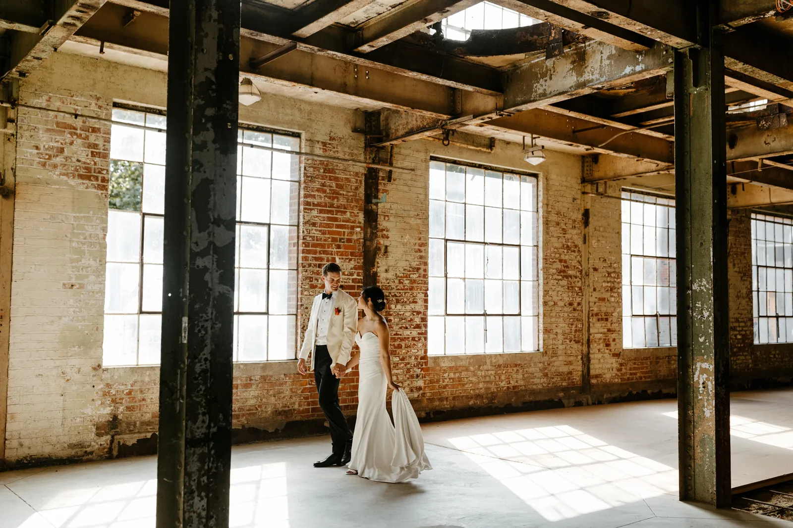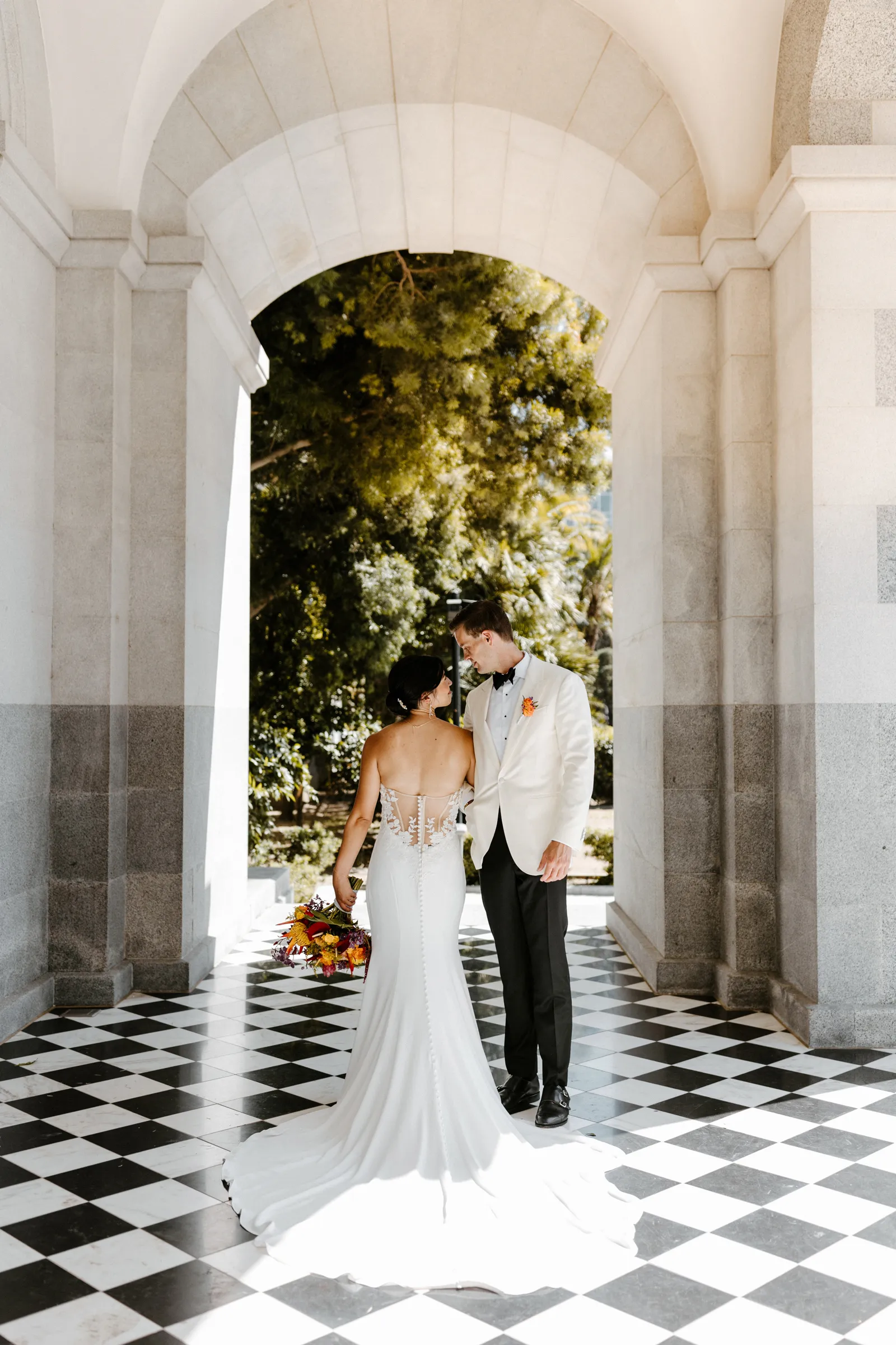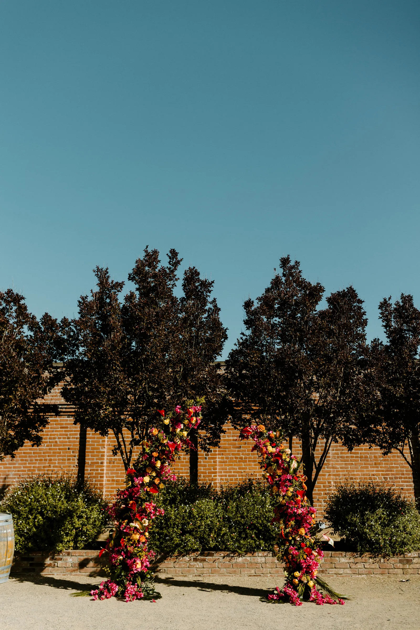 Their REAL wedding (hence, Real Weddings Wednesday), is what we’re here to celebrate today – set at Old Sugar Mill and complete with lots of (puppy) love! We’re talking chic and industrial photos with a furry guest appearance, amazing hair and makeup artistry from our dear partner, All Dolled Up, amazing planning from Magnolia Avenue Events, a koala-inspired cake from Baker & A Black Cat, and stunning florals (thanks Strelitzia Flower Co.!) that are sure to inspire. Keep scrolling to read about the lovely couple and to get in on more of photos from Kayla Esparza Photography!