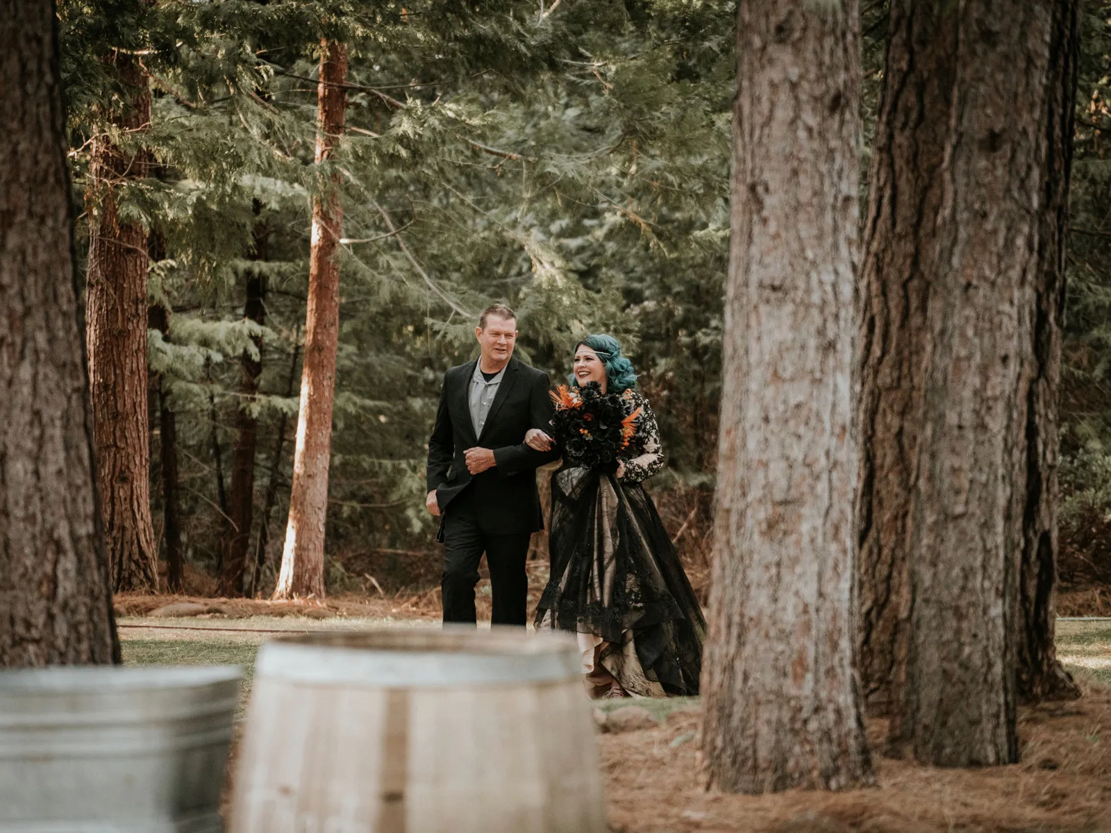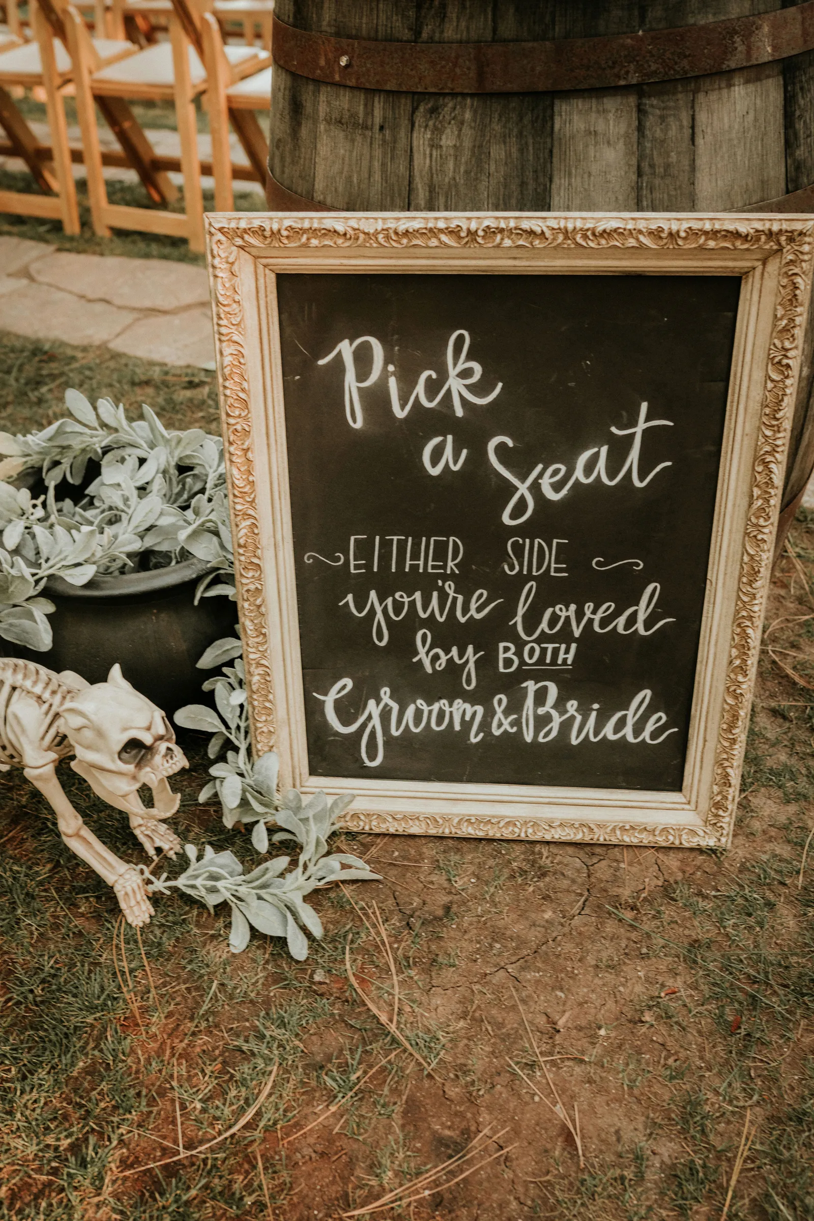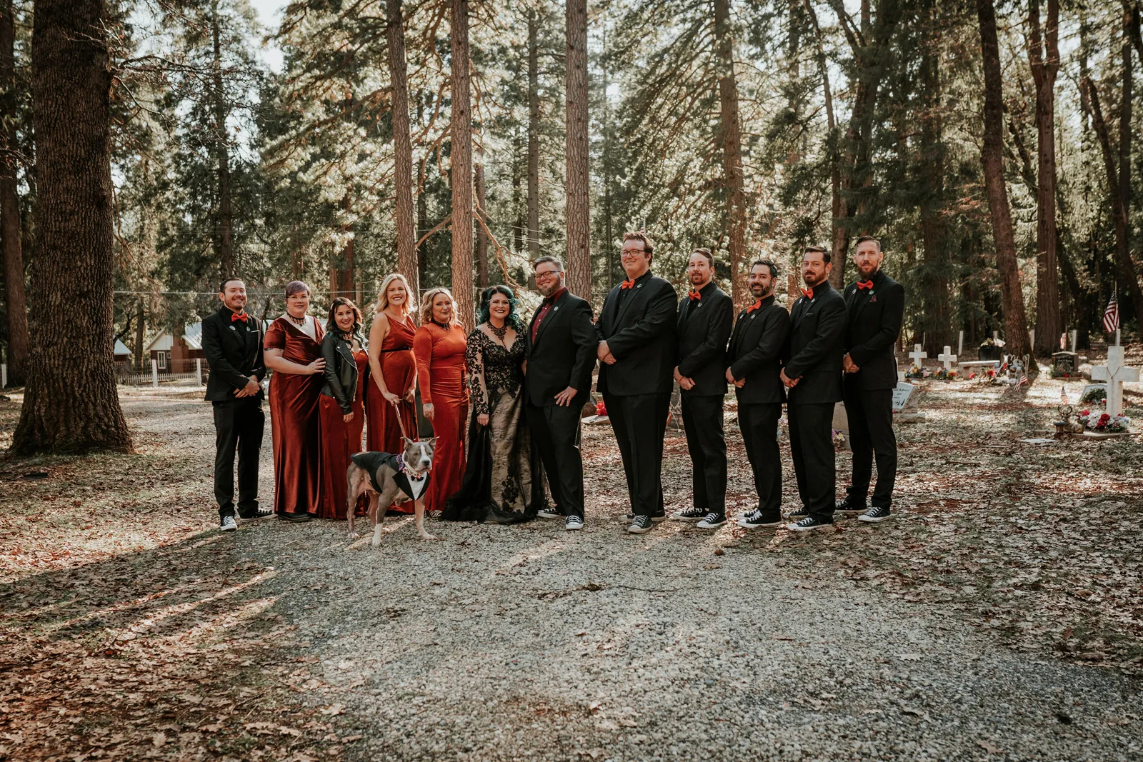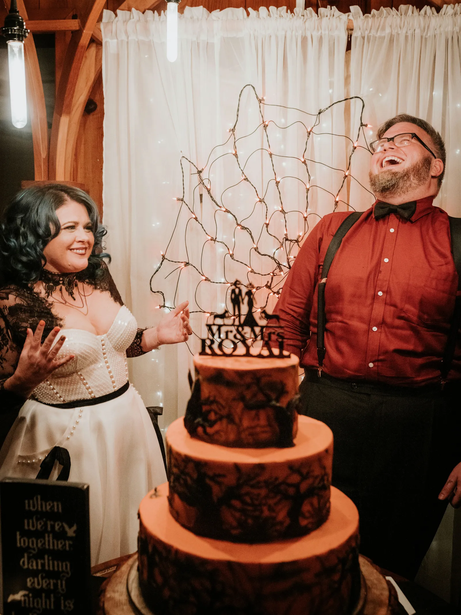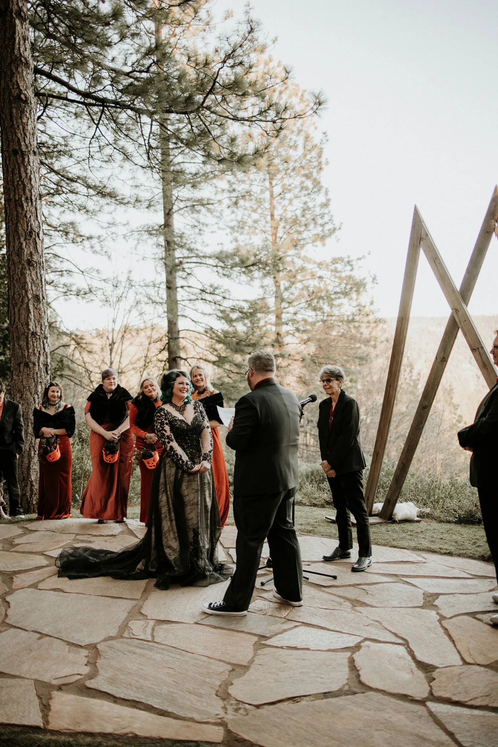 Eric and I met online dating during COVID! We had a lunch date the one week where restaurants in Sacramento opened up before re-closing with another spike. We fell for one another fast, moved in together fast, bought a farm together, booked a wedding venue before he proposed and had a blast the entire way. We fell in love with each other’s quirks, (BIG) laughs, and our shared love for Halloween and all things spooky! It wasn’t a tough choice to know that we wanted a Halloween themed wedding! It was so fun to plan and we went with the theme ‘Til Death Do Us Party’!