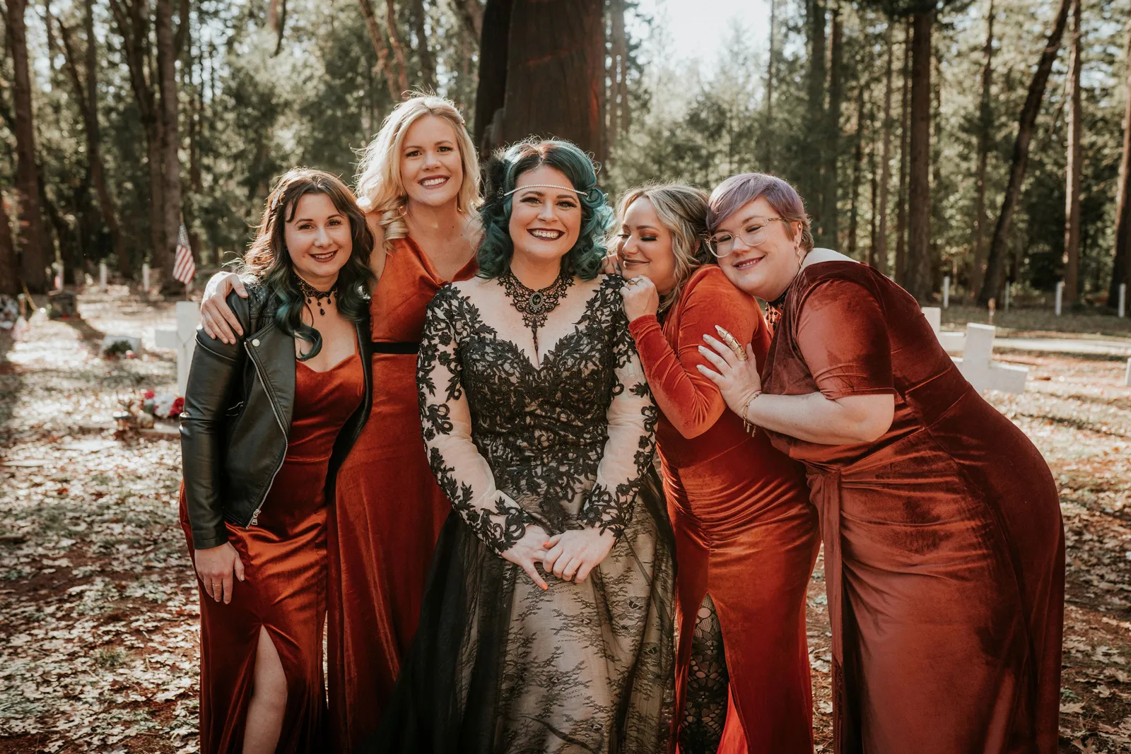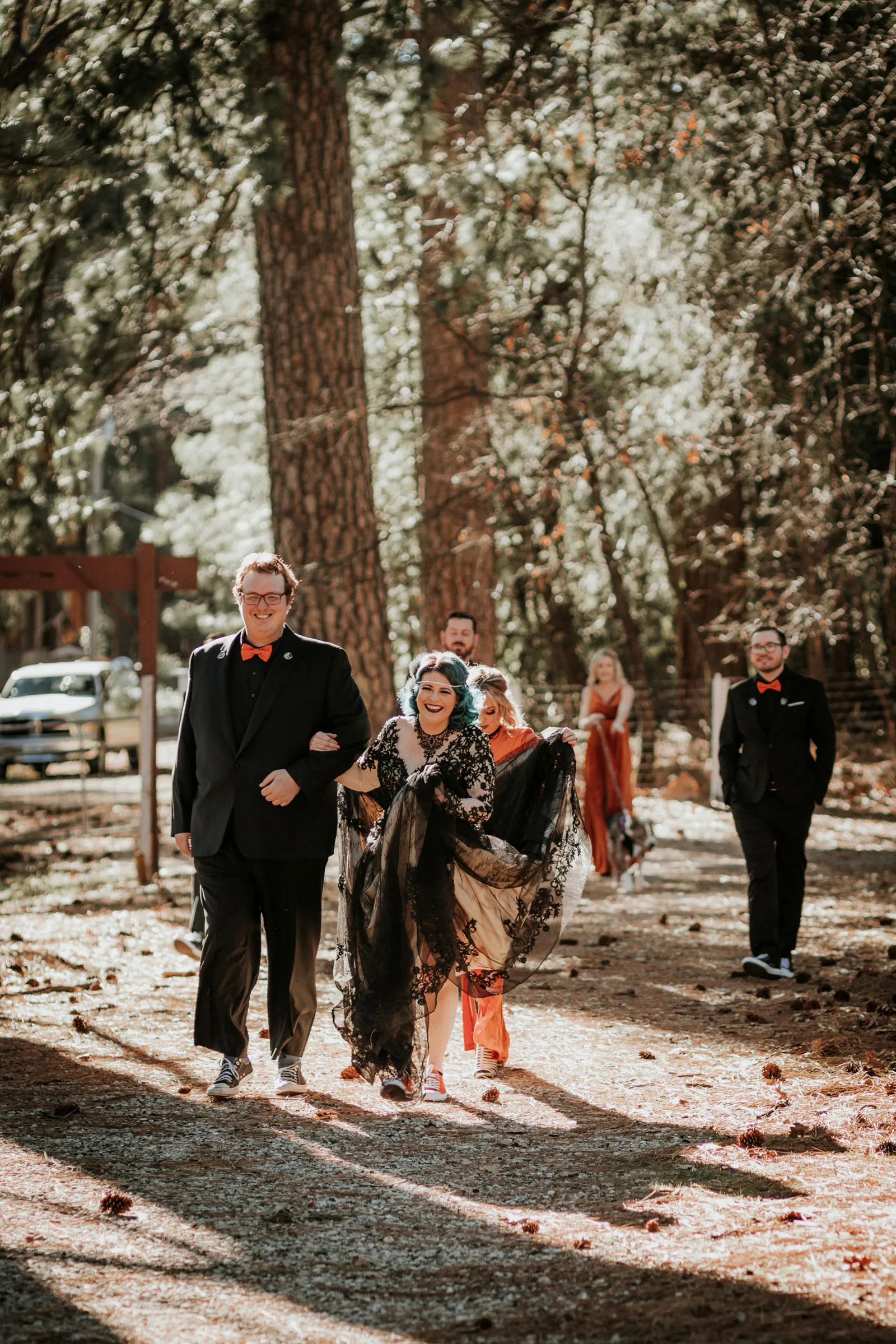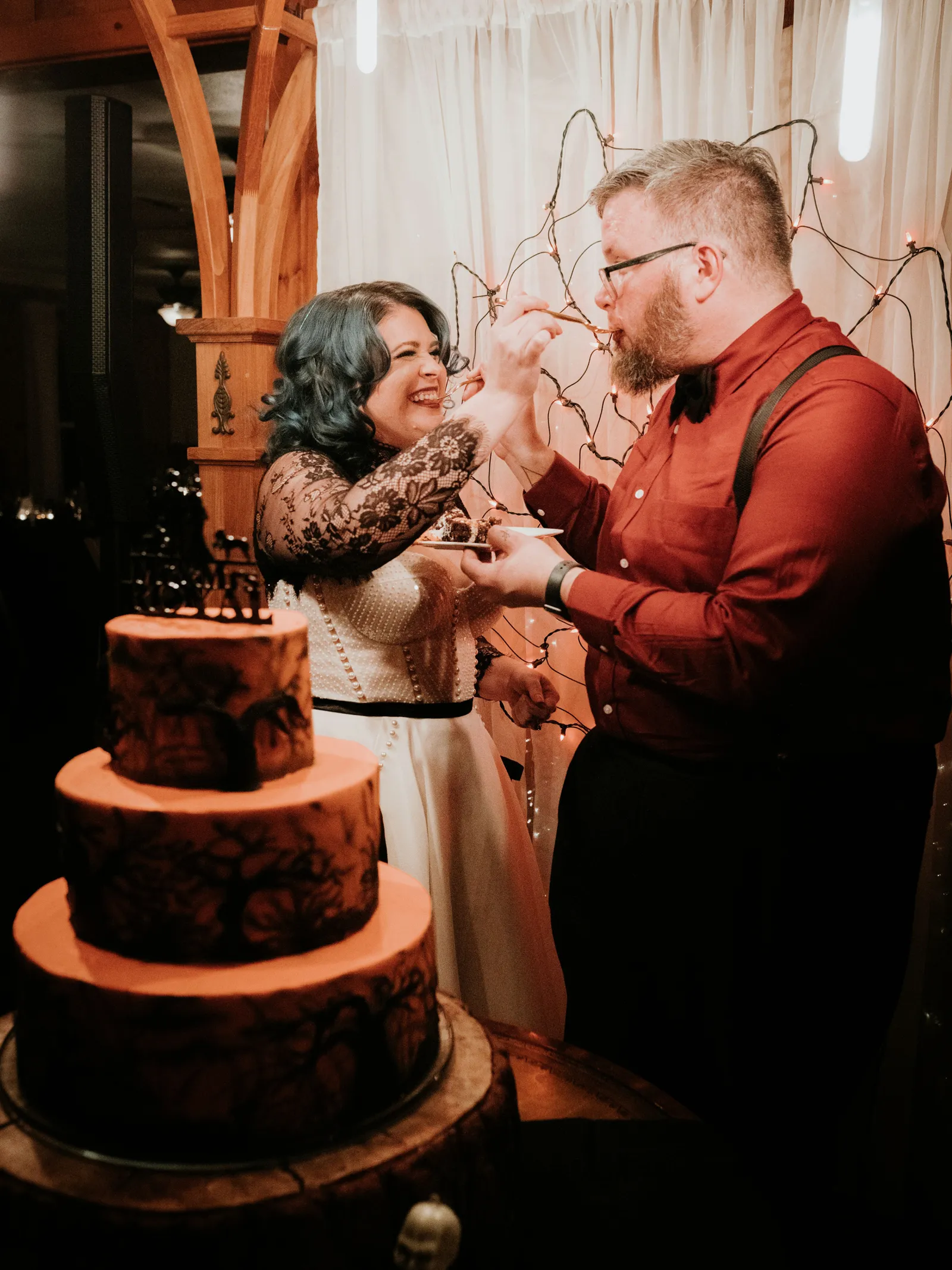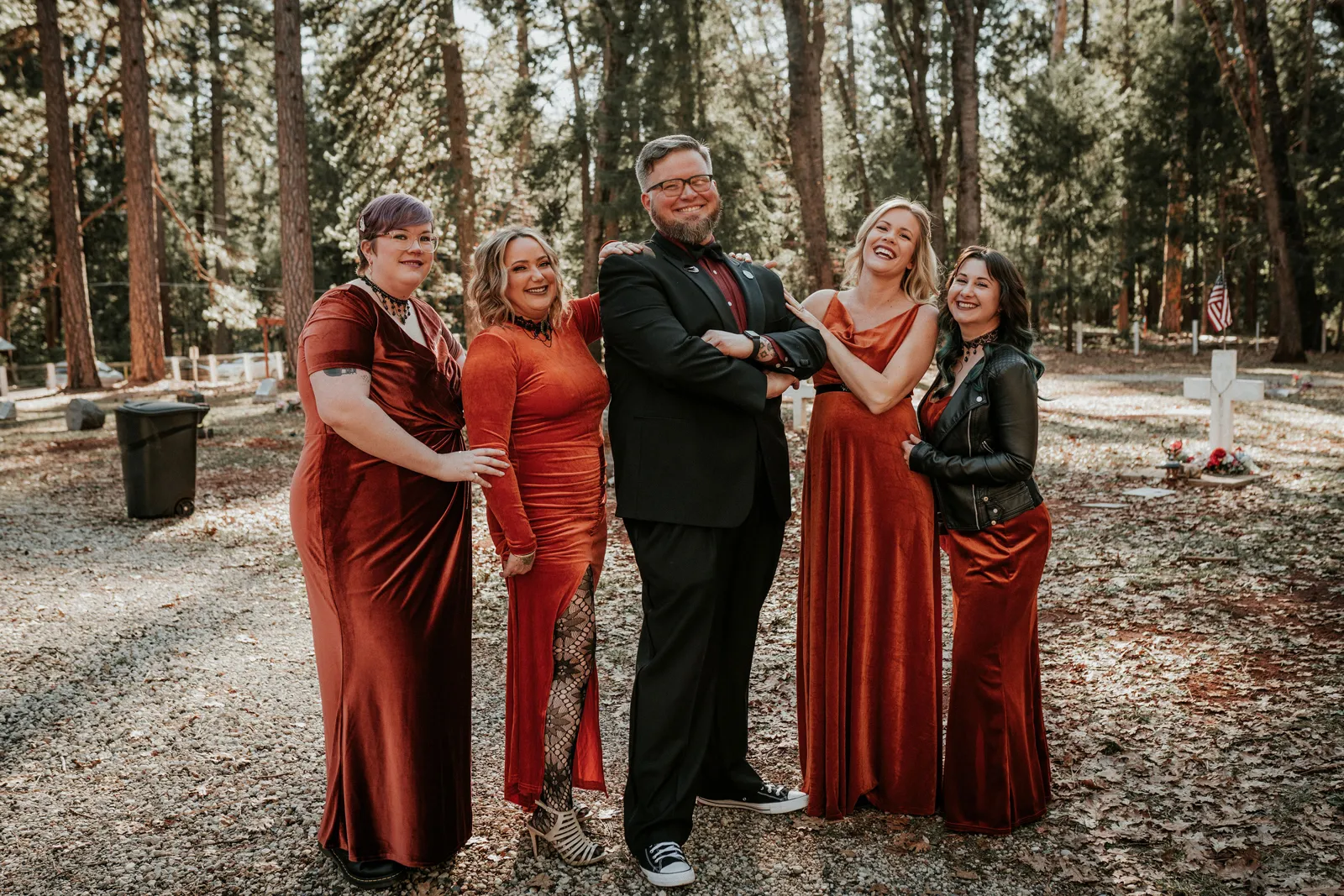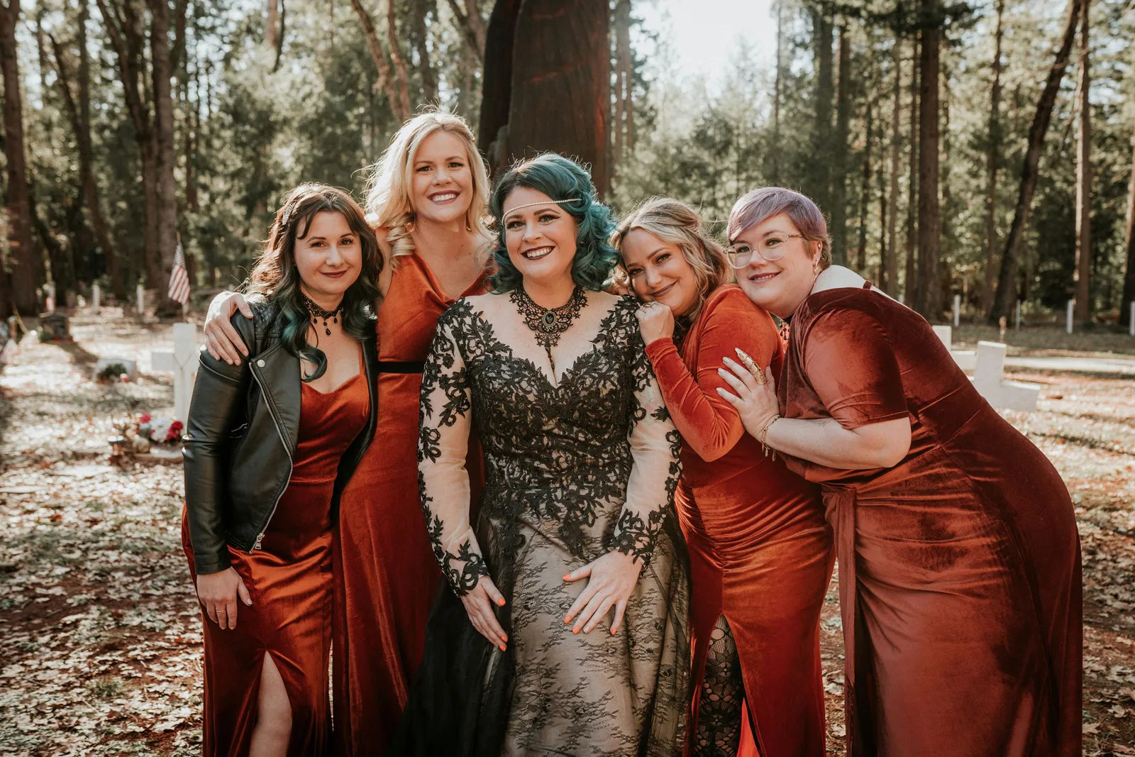 Eric and I met online dating during COVID! We had a lunch date the one week where restaurants in Sacramento opened up before re-closing with another spike. We fell for one another fast, moved in together fast, bought a farm together, booked a wedding venue before he proposed and had a blast the entire way. We fell in love with each other’s quirks, (BIG) laughs, and our shared love for Halloween and all things spooky! It wasn’t a tough choice to know that we wanted a Halloween themed wedding! It was so fun to plan and we went with the theme ‘Til Death Do Us Party’!