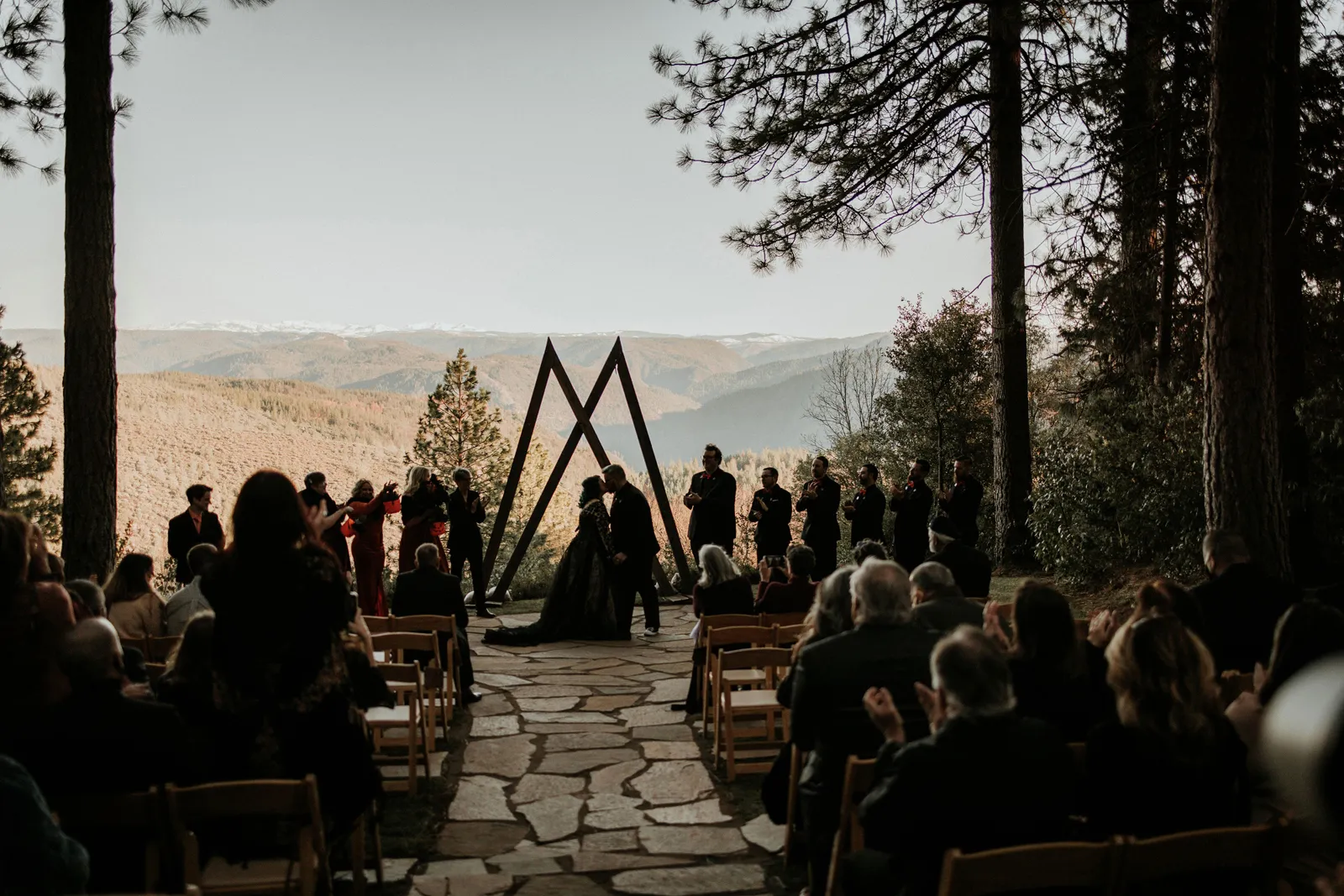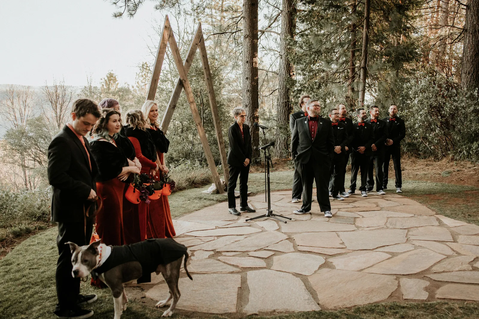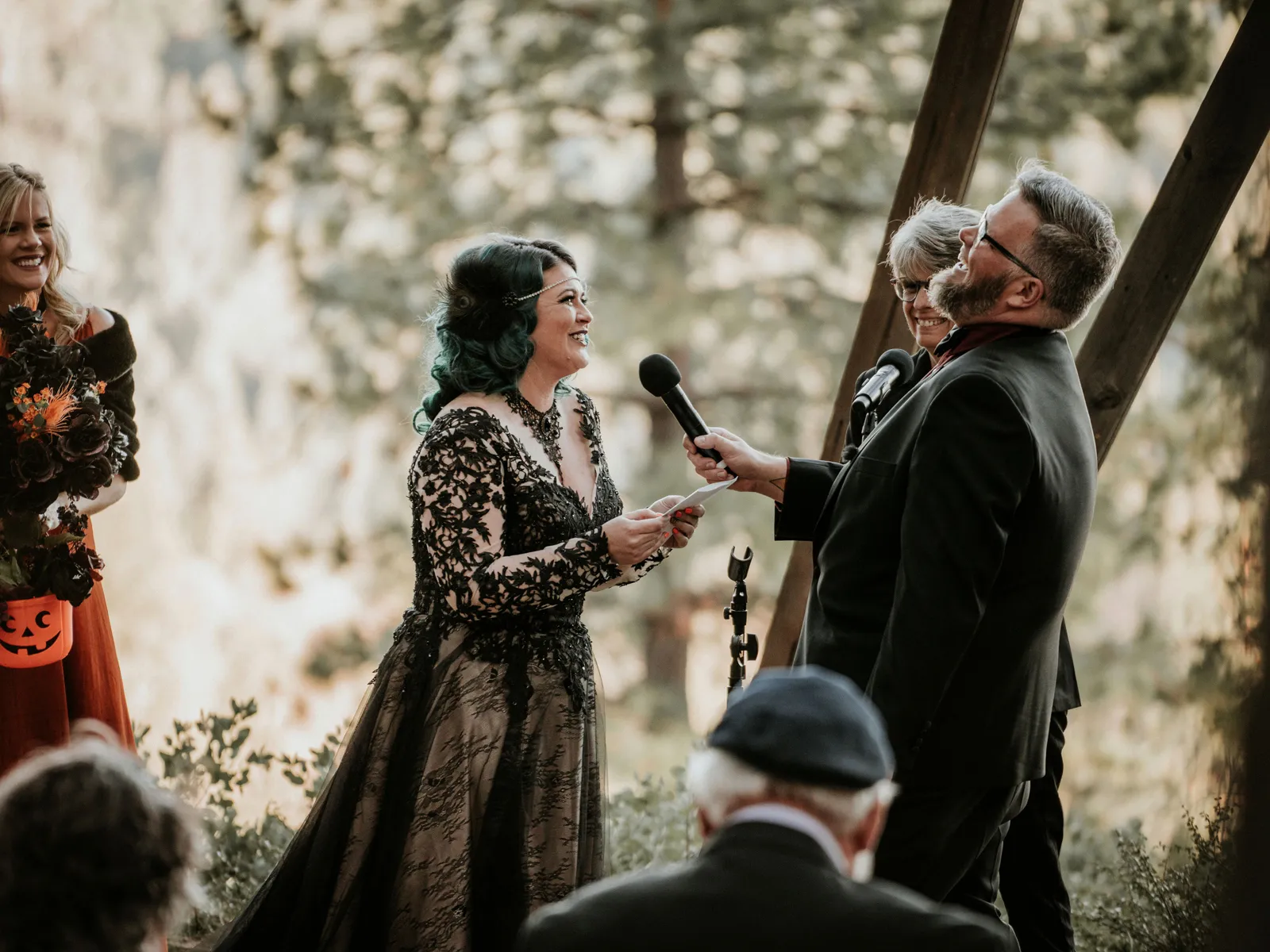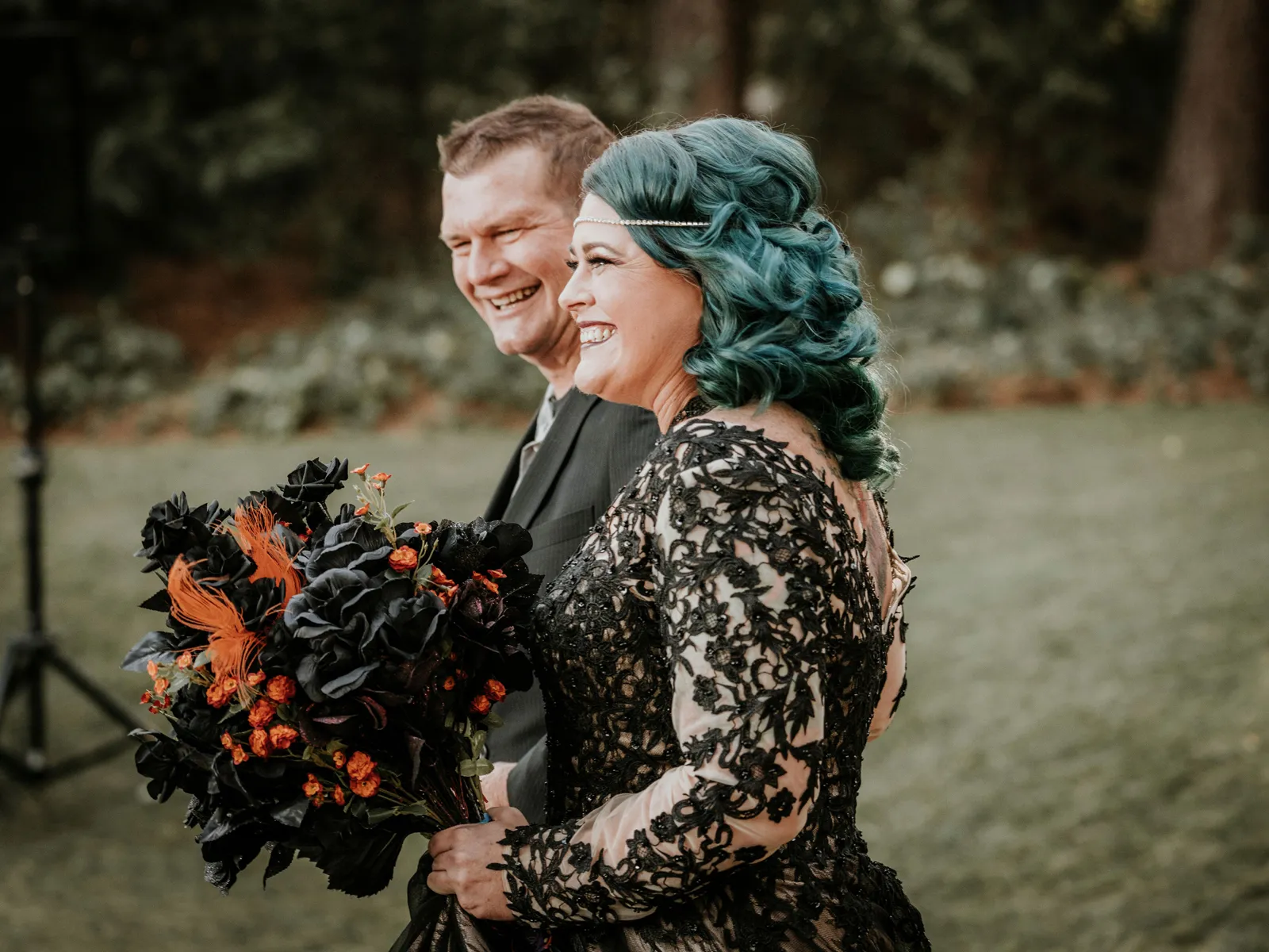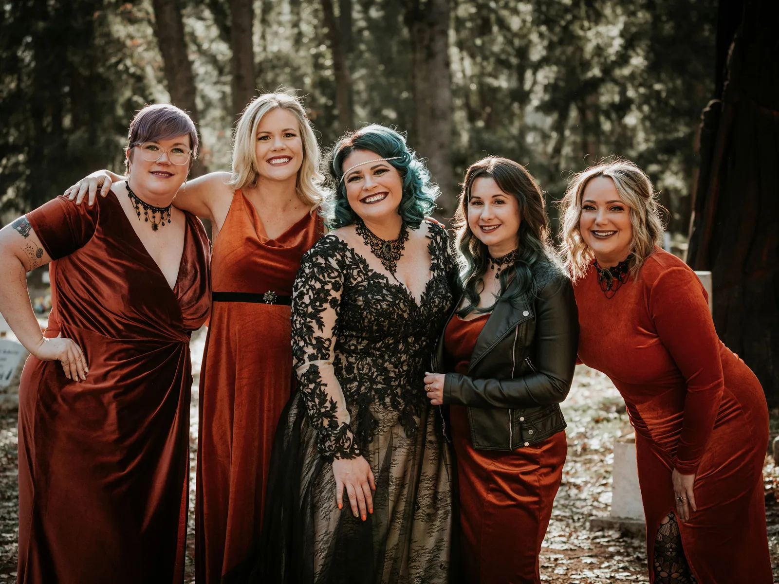 Eric and I met online dating during COVID! We had a lunch date the one week where restaurants in Sacramento opened up before re-closing with another spike. We fell for one another fast, moved in together fast, bought a farm together, booked a wedding venue before he proposed and had a blast the entire way. We fell in love with each other’s quirks, (BIG) laughs, and our shared love for Halloween and all things spooky! It wasn’t a tough choice to know that we wanted a Halloween themed wedding! It was so fun to plan and we went with the theme ‘Til Death Do Us Party’!