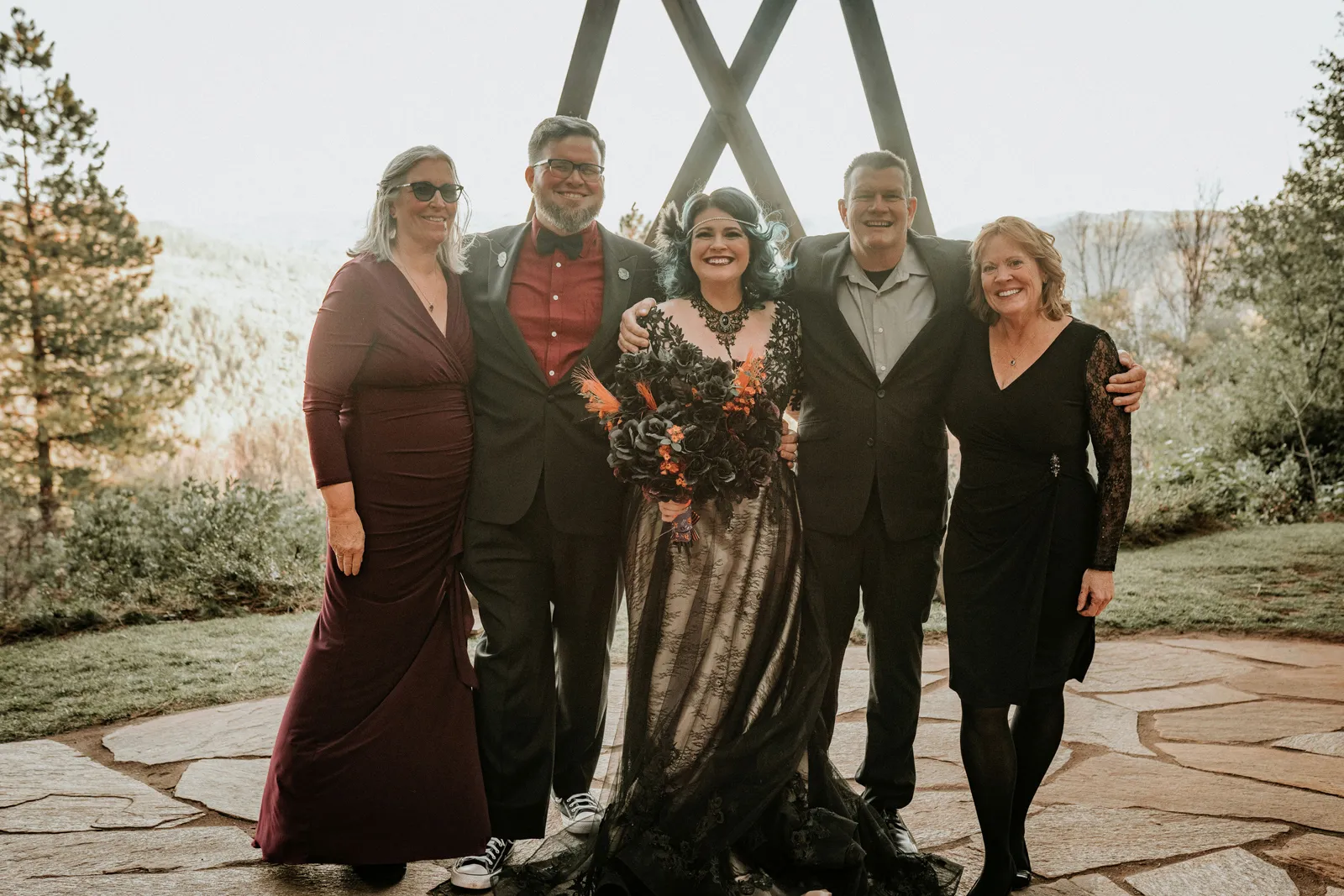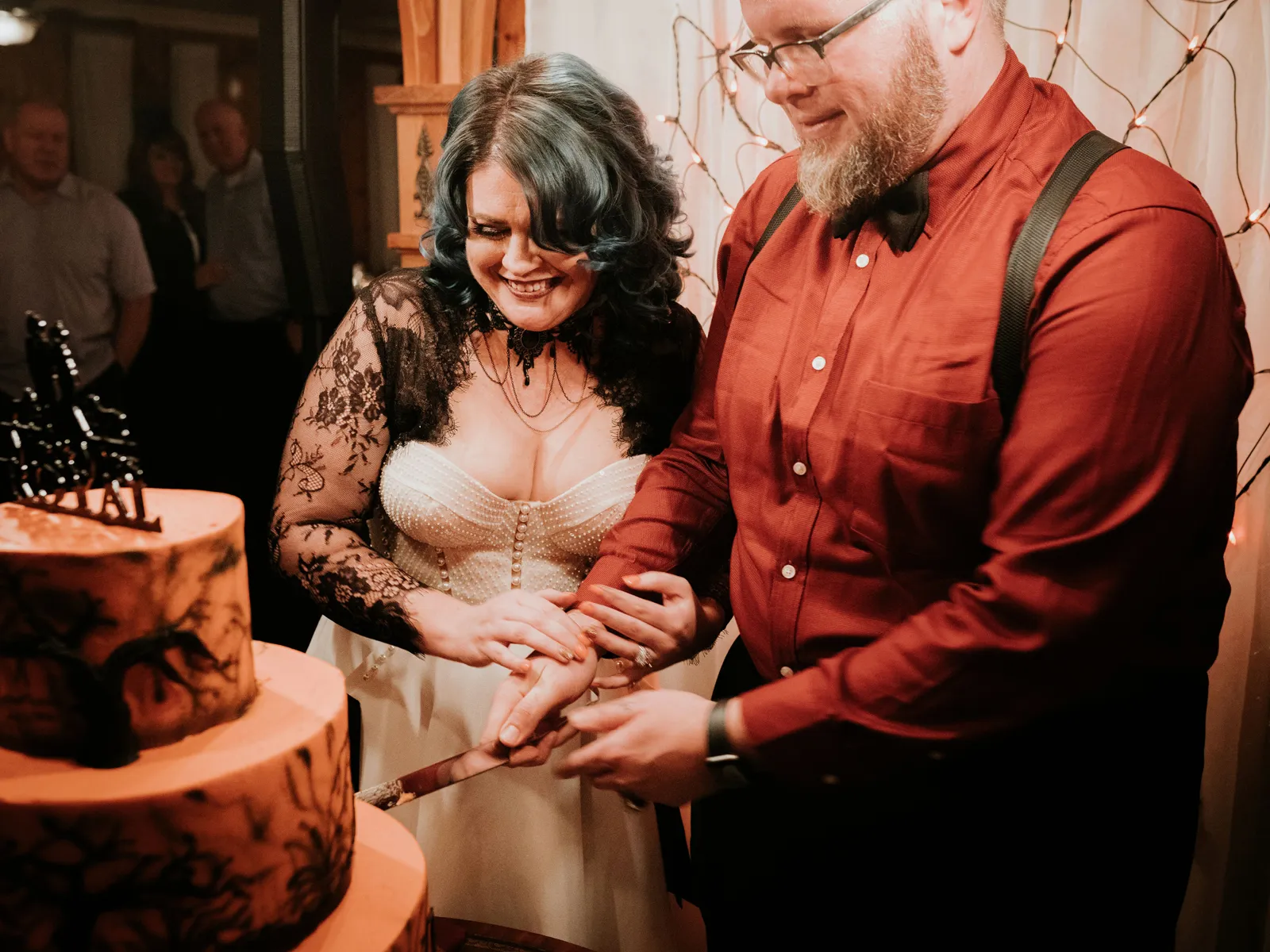 Happy Real Weddings Wednesday, everybody! Today, we’ve got a wedding that’s just to-die-for (literally!). We’re celebrating Lisa + Eric’s beautiful and unique ‘Til’ Death Do Us Party!’ ceremony, complete with skeletons, black lace gowns (courtesy of The Bridal Box), and more. Happy Wednesday, and happy reading!