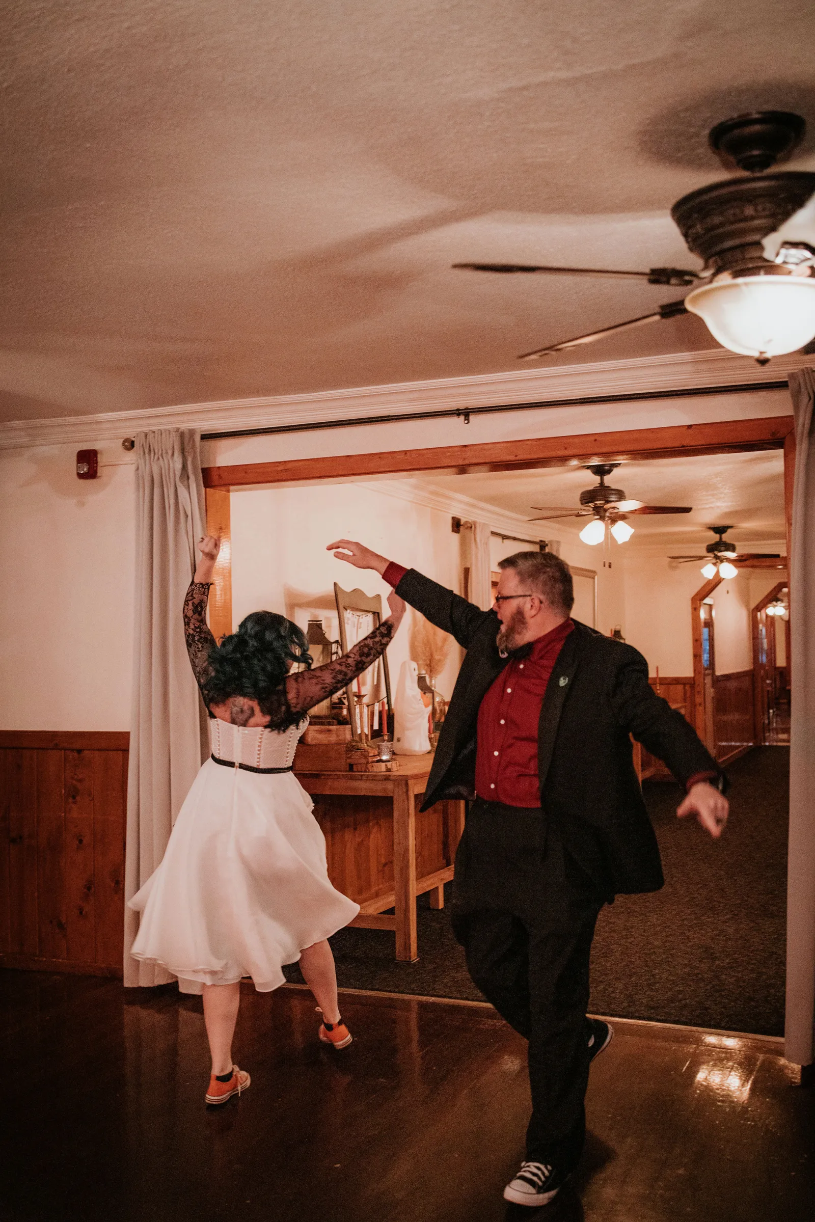 We both felt like our favorite part was the ceremony. The ‘F’ bombs in the vows! We are big fans of adult language and when my husband made sure to include it, I loved every minute! It made it so special, and surprising and US! We each had some BIG laughs during the other’s vows. Having loved ones prepare and officiate the wedding made it extra special. We also choreographed a dance with each other (in our living room!). Neither of us can dance or had any experience, so we watched a lot of YouTube and tried to make it our own. It was really fun to get to execute it the day of! However, making the dance and practicing each night for the last month was one of our favorite wedding “chore”!