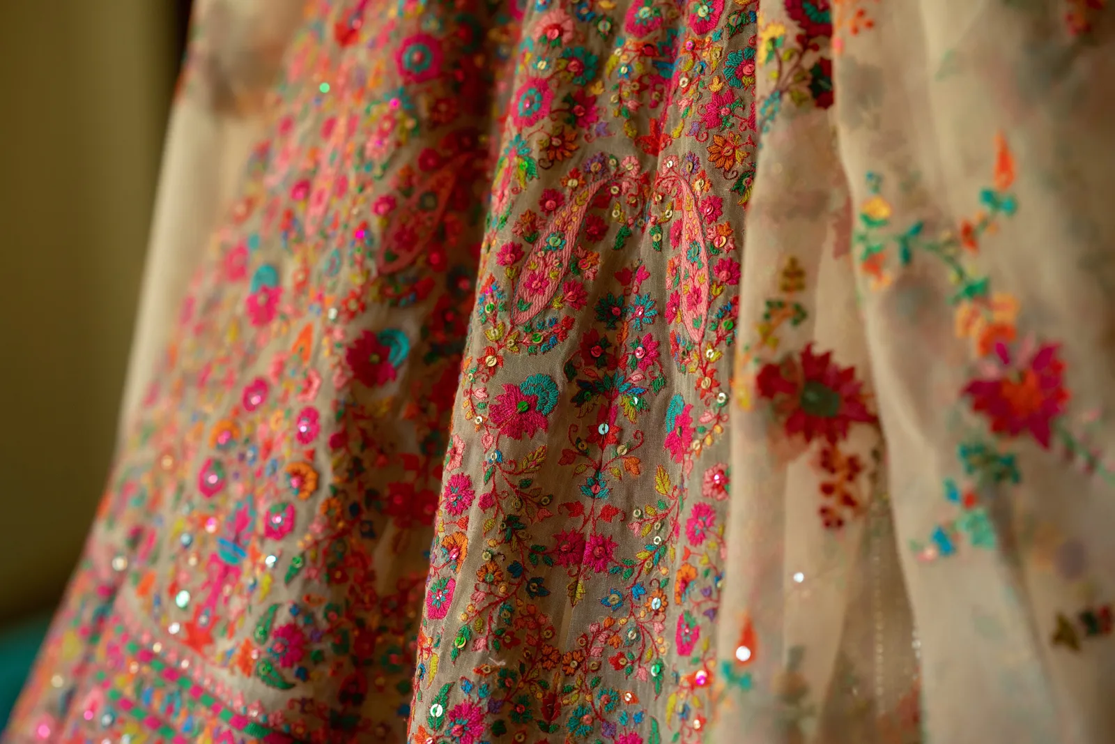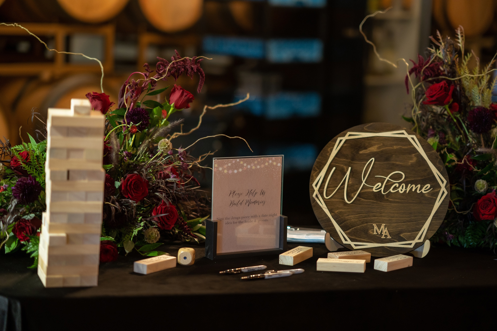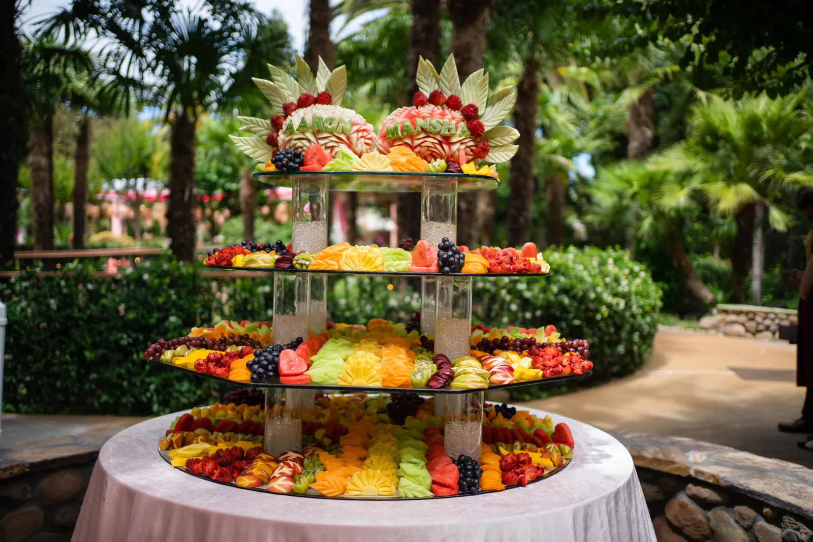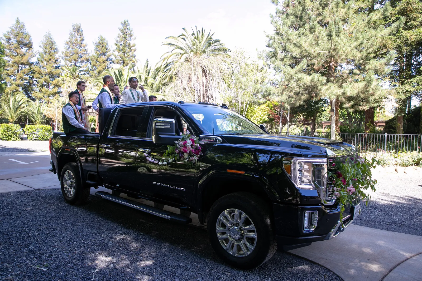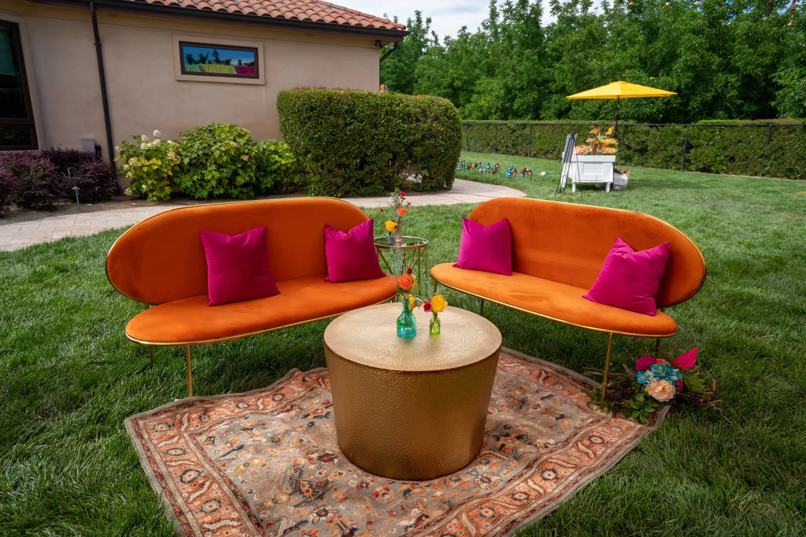 We met six years ago while working at the same consulting company. We talked briefly, but did not think much of it (little did we know…). A few months later, we found ourselves sitting next to each other at yet another work event. We hit it off and spent the majority of the evening talking to each other as opposed to paying attention to the event. Over the next few years, our friendship evolved into a relationship. Together, we navigated learning about each other’s cultures, switching jobs, and moving to new cities. One Saturday afternoon in February 2021, my parents and I were walking to the Ferry Building in San Francisco to meet a family friend when I felt a tap on the back of my shoulder. I turned around and was met with a huge bouquet of two dozen red roses. Aaron peaked his head out from behind the roses and handed me the bouquet. As that was happening, my parents stepped away and secretly turned on their cameras to start recording. In front of the magnificent Bay Bridge and beautiful San Francisco Bay, Aaron got down on one knee and asked me to marry him. I answered: Yes, of course! After the proposal, the two of us got dinner at an Italian restaurant in North Beach, San Francisco. We still enjoy going to that restaurant to relive those special moments. We got married in my hometown: Chico, CA. Since we had many out-of-town guests, this turned into somewhat of a destination wedding. The inspiration behind the wedding was modern traditionalism. We wanted each day to feel distinct and modern yet preserve the beautiful traditions they were based on. We also wanted the wedding to reflect the fusion of two cultures – Indian and American, Hindu and Jewish, etc. For that reason, we planned one completely Western event (the Cocktail), one completely Indian event (the Sangeet), and one fusion event (the Wedding). We also had a small pre-wedding mehndi (henna) event on the day most of our guests started arriving in town and a small haldi ceremony (pre-wedding blessing) event the morning of the wedding. The theme of the Cocktail was rustic glam. Set at a local winery, the decor was dark and moody with deep red florals (to match my outfit) interspersed with dried grass and wine barrels lit up by a custom neon sign with our wedding hashtag on it. We also had a welcome table with jumbo Jenga blocks for guests to write fun date night ideas on before they entered the venue. For the Sangeet event, our vendors transformed my family’s backyard into a colorful bazaar with a custom structure draped with vivid pink, orange, yellow, and green fabric accented by hanging Jaipuri umbrellas. We also had colorful lounge furniture for guests to rest on after getting mehndi (henna) applied or while snacking on Indian street food, tables decorated with bazaar-inspired centerpieces (Indian tea kettles, chai cups, etc.), a photo booth station with an Indian taxi prop, and a ‘Bangles & Baubles’ favor table with traditional jewelry, bangles, and purses for guests to enjoy. In the months leading up to the wedding, we sourced each of these party favors from India and individually wrapped them in colorful bags. They were a huge hit with our guests (so much so that we did not have any leftovers after the Sangeet event was over)! The inspiration behind the wedding decor was a modern English garden (like Indian Bridgerton). Contrasting the beautiful greenery at our venue, The Palms in Chico, CA, the decor in the outdoor space was an ombre pink color theme from our welcome gate draped in ombre fuschia to cream fabric to the strings of fuschia, pink, blush, and cream flowers hanging from the tree tops to the roof of the ceremony space (a beautiful gazebo) decorated in rows of flowers. We also had about 100 custom-made bamboo cane lanterns hanging from the trees throughout the outdoor space. At night, these lanterns provided stunning ambient lighting. Our favor table contained hundreds of custom candles created by a local candle company in gold tins with stickers containing our name and monogram on them. The decor in the reception hall indoors was meant to contrast the outdoor space with a cream, white, and gold color theme. The decor consisted of a custom grand chandelier with hanging florals, mirrors, and lights, oversized floral centerpieces with gold vases on all tables, and a grand white dance floor with our wedding monogram on it. This is the same monogram that we used on our digital save the dates and invites as well as on our hotel welcome bags. The neon sign with our wedding hashtag accented the wall behind the head table while the main bar had custom bar signs with our signature drinks on them: ‘Let the Fun Be-gin’ White Linen (hers) and ‘Whiskey Business’ Old Fashioned (his).