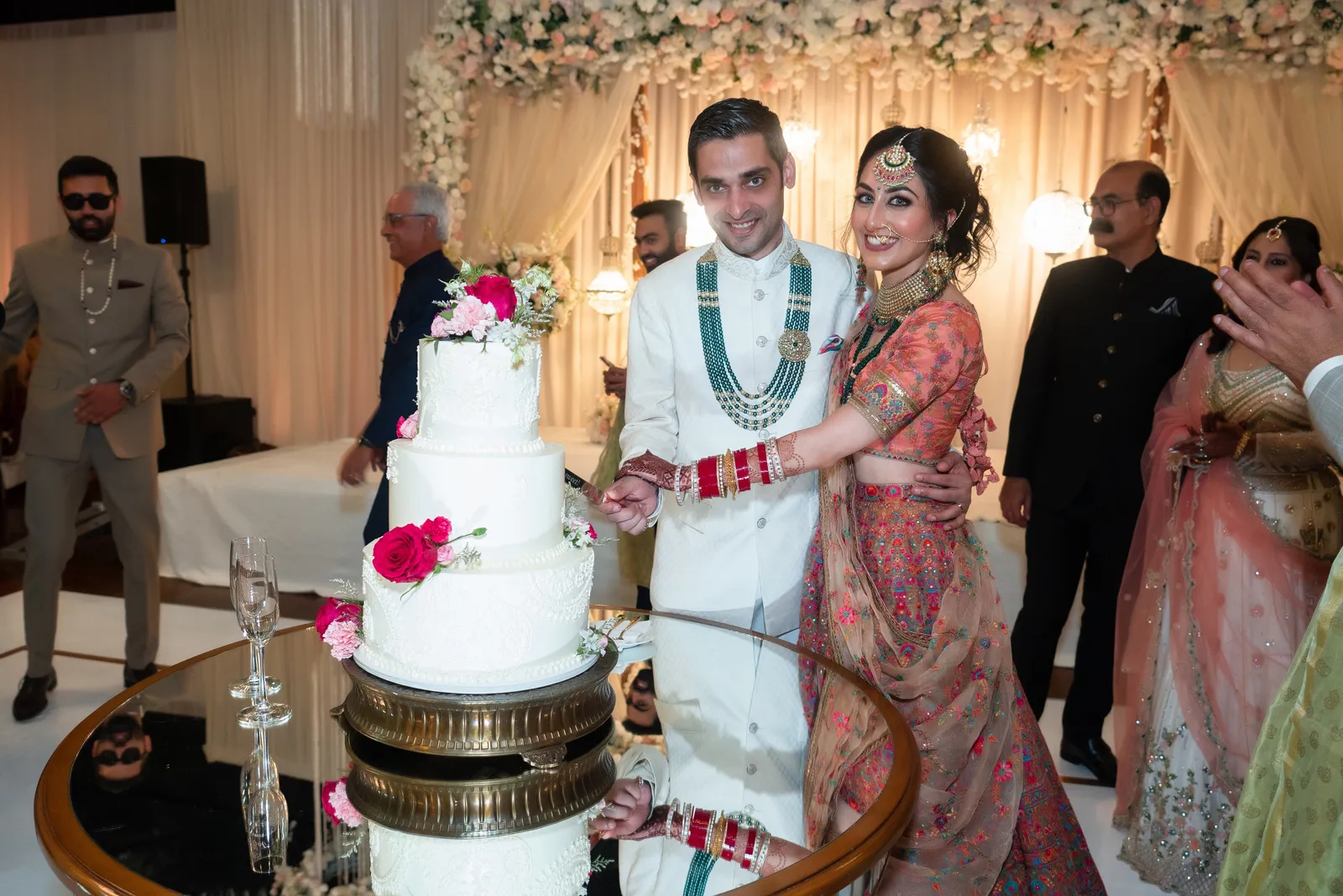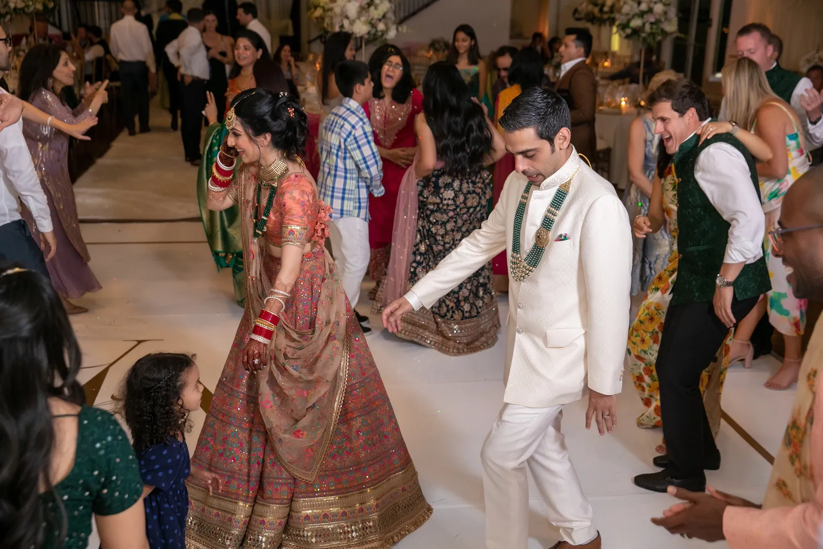 Good afternoon, everyone, and happy Real Weddings Wednesday! We have a very special treat for you all today as we celebrate Mansha and Aaron’s stunning, multi-day wedding. With beautifully incorporated details and traditions from both cultures, expect vibrant colors; intimate pre-wedding ceremonies, jaw-dropping saris, gowns and suits (and pantsuits!), amazing floral arrangements — courtesy of Strelitzia Flower Company along with classy, timeless rentals from We Do Designs! This is one gorgeous love story you won’t want to miss. Happy Wednesday, and happy reading!
