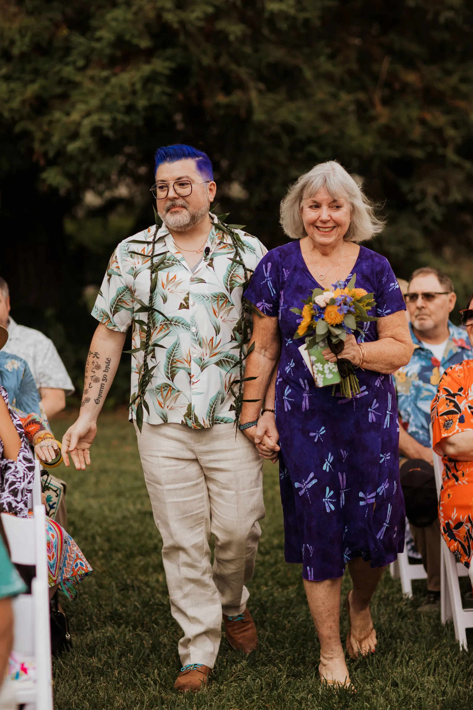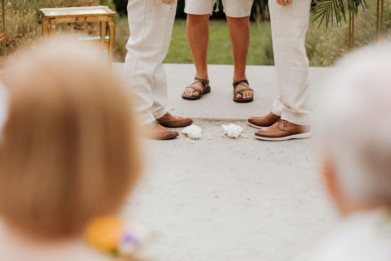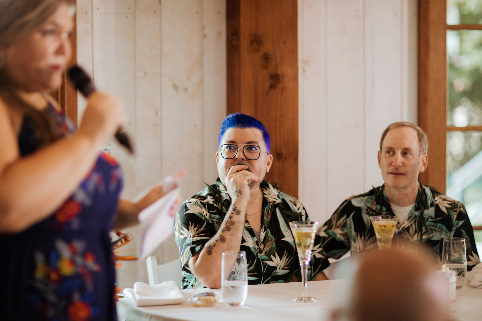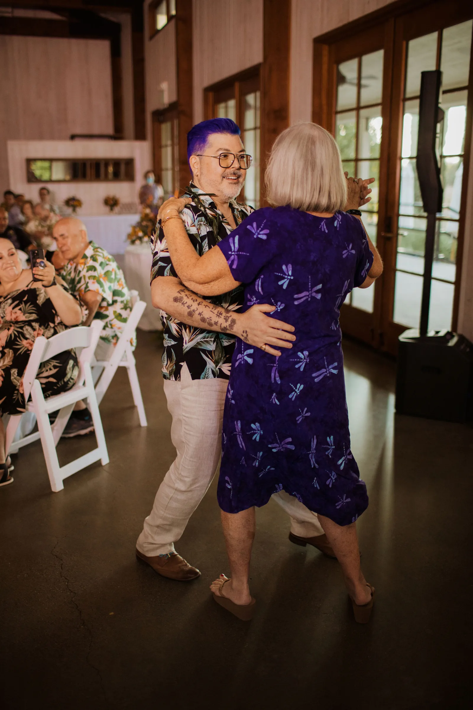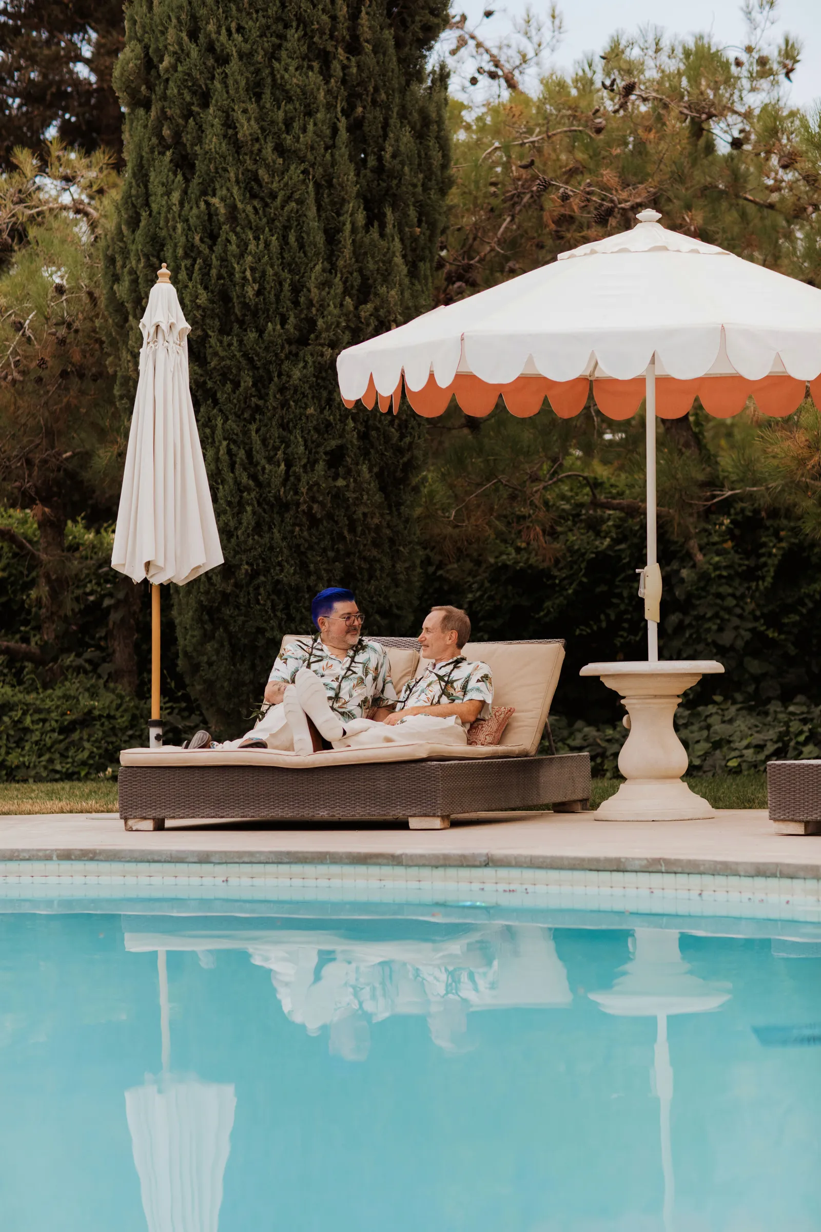 Greg and I (Mark) met through an app; our first date was dinner and Star Wars: The Last Jedi. We dated for a year and moved in together almost a year after we met. Greg proposed to [me] using a Lego to hold the ring. After another year, we started planning for the wedding, looking for locations first, then getting recommendations for vendors from the location we chose and from friends and acquaintances.