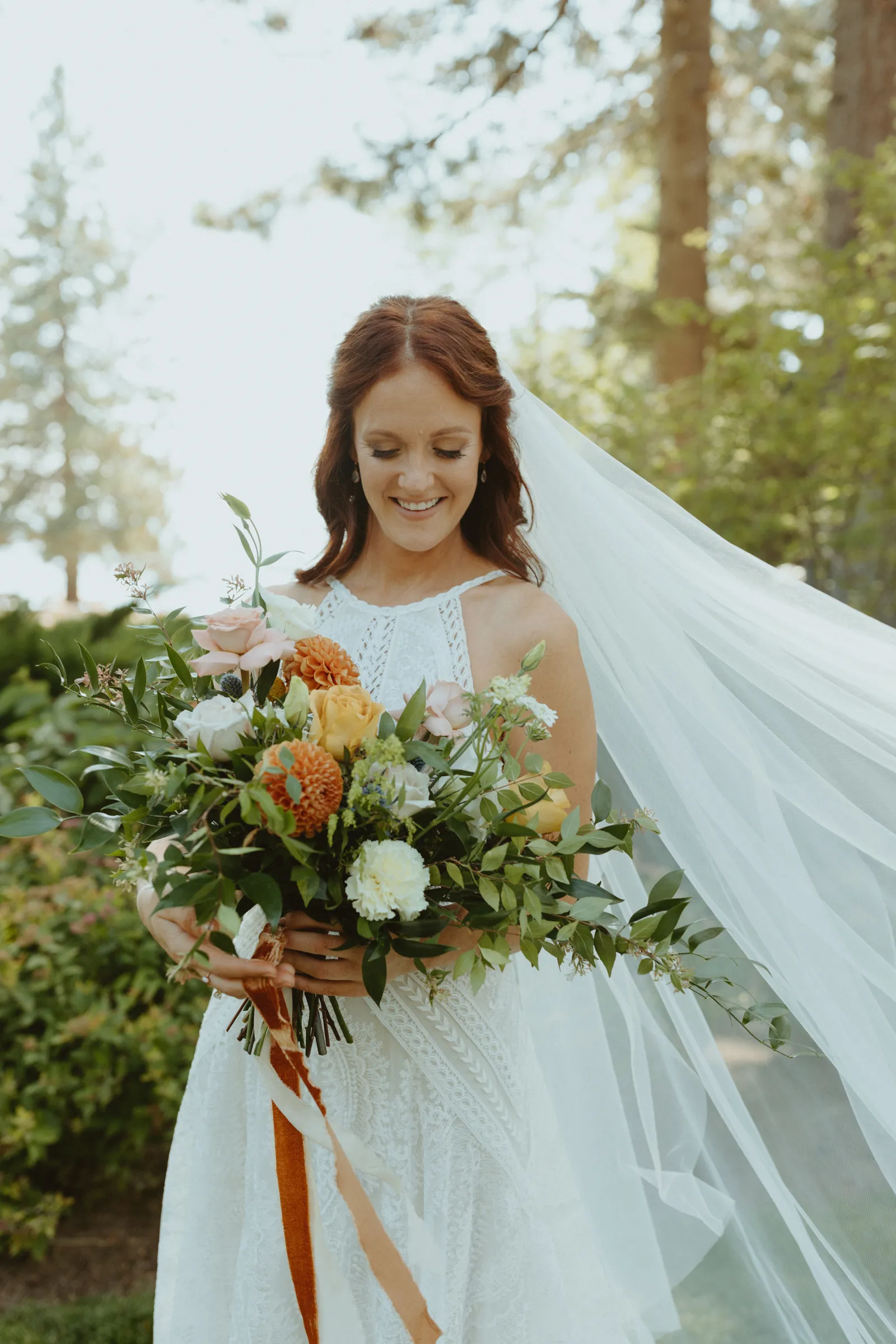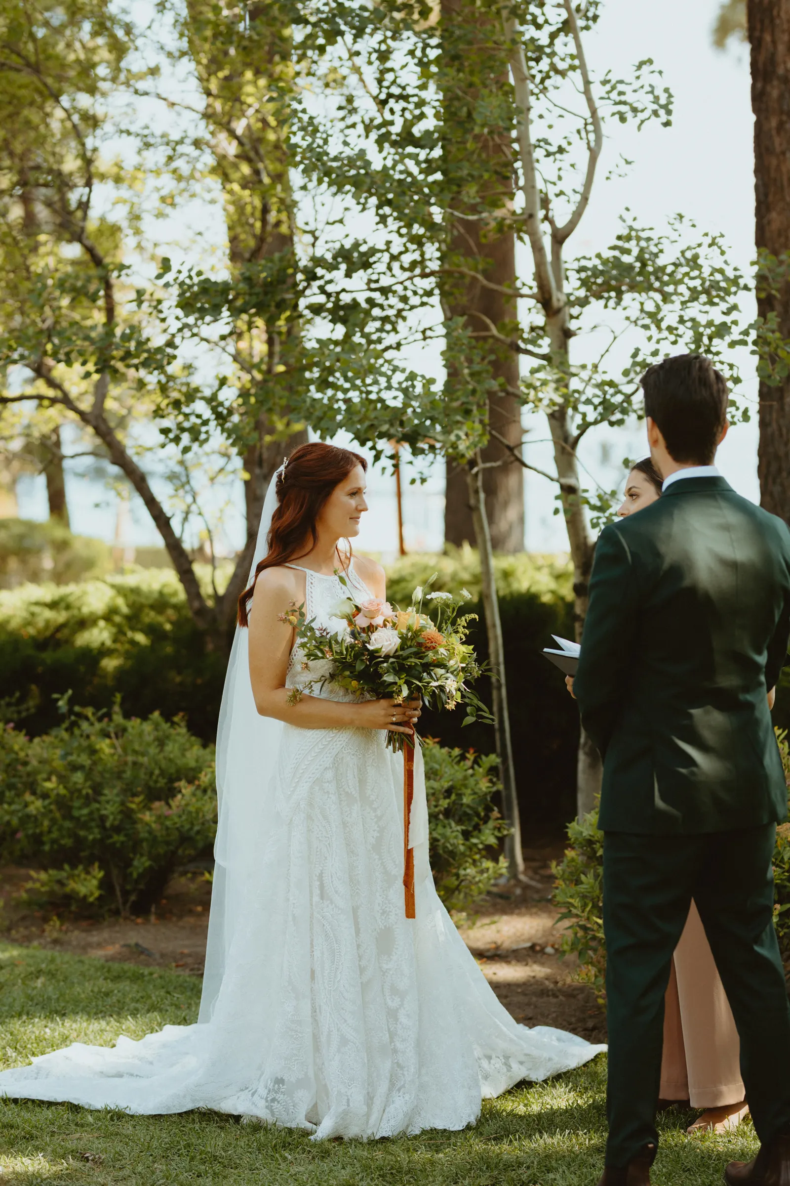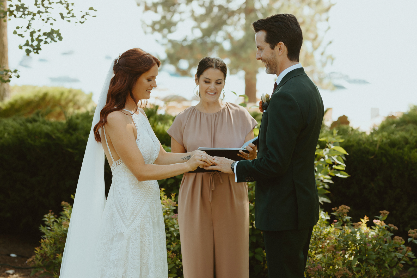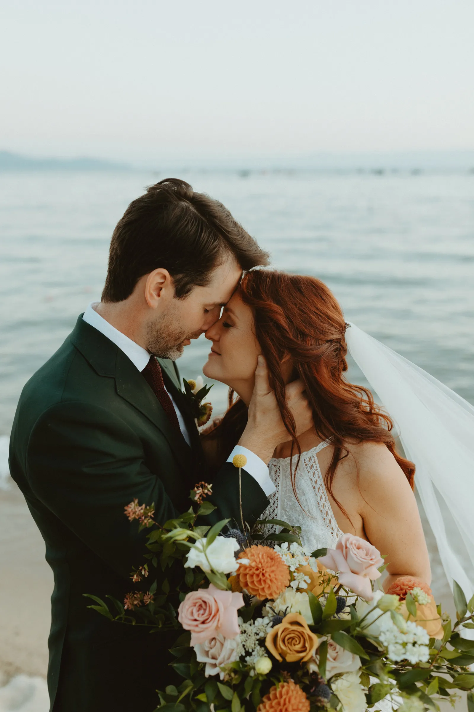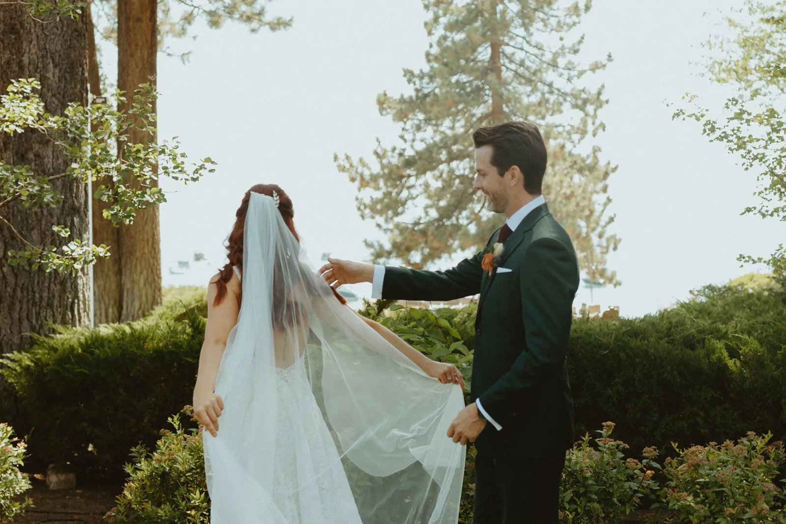 Good afternoon, everyone. It’s Wednesday — you know what that means. Happy Real Weddings Wednesday! Today, we’re celebrating Marla and Tom’s beautiful outdoor ceremony set at the beautiful Lake Tahoe. We’re talking gorgeous flower arrangements, jaw-dropping beach photos, and a larger-than-life surprise, (keep scrolling to find out what it is)! Happy Wednesday, and happy reading!