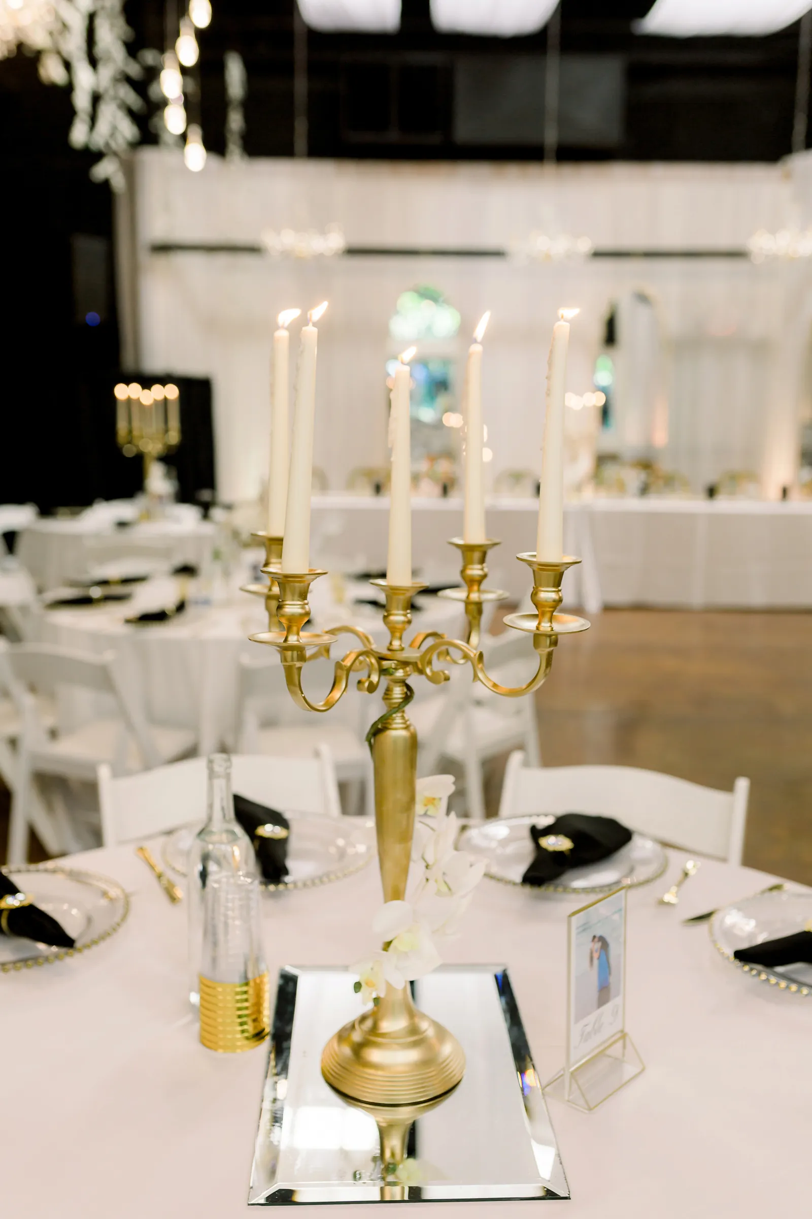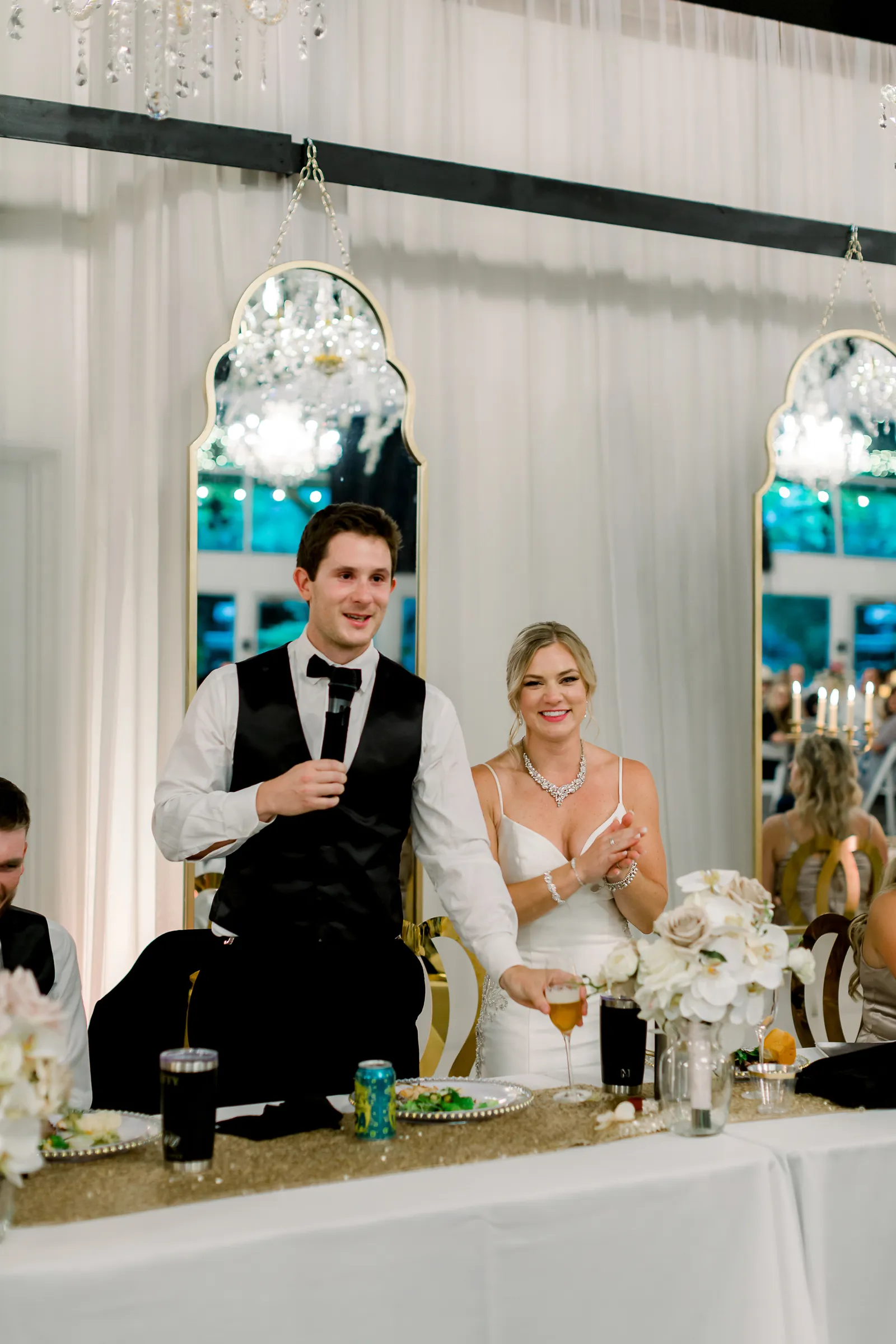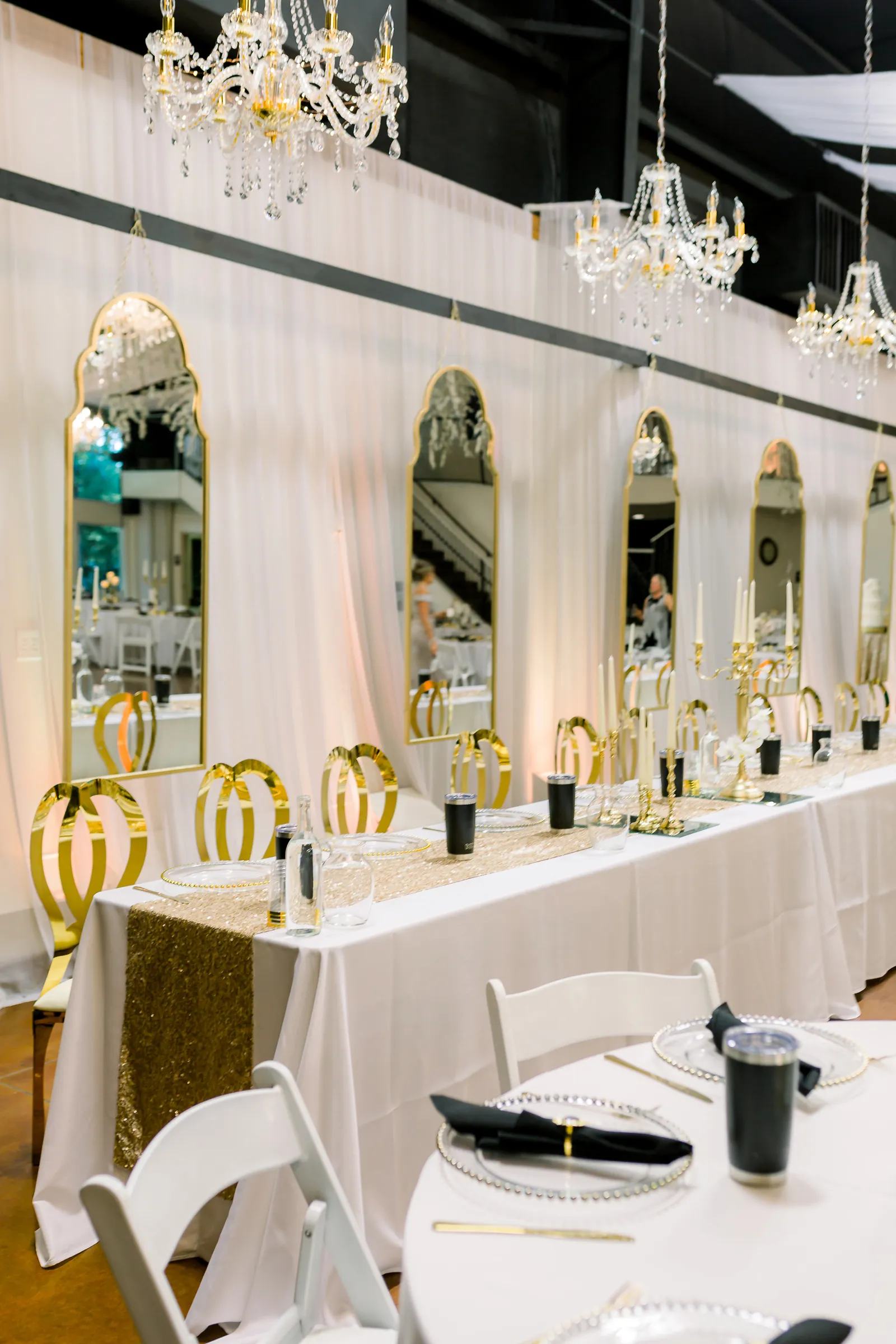 We are high school sweethearts. We dated for almost 10 years before getting engaged. We love to travel! The wedding theme was inspired by our trip to Europe; old times, whimsical elegance that can be found there, British gardens, [and the] Palace Versailles Hall of Mirrors.