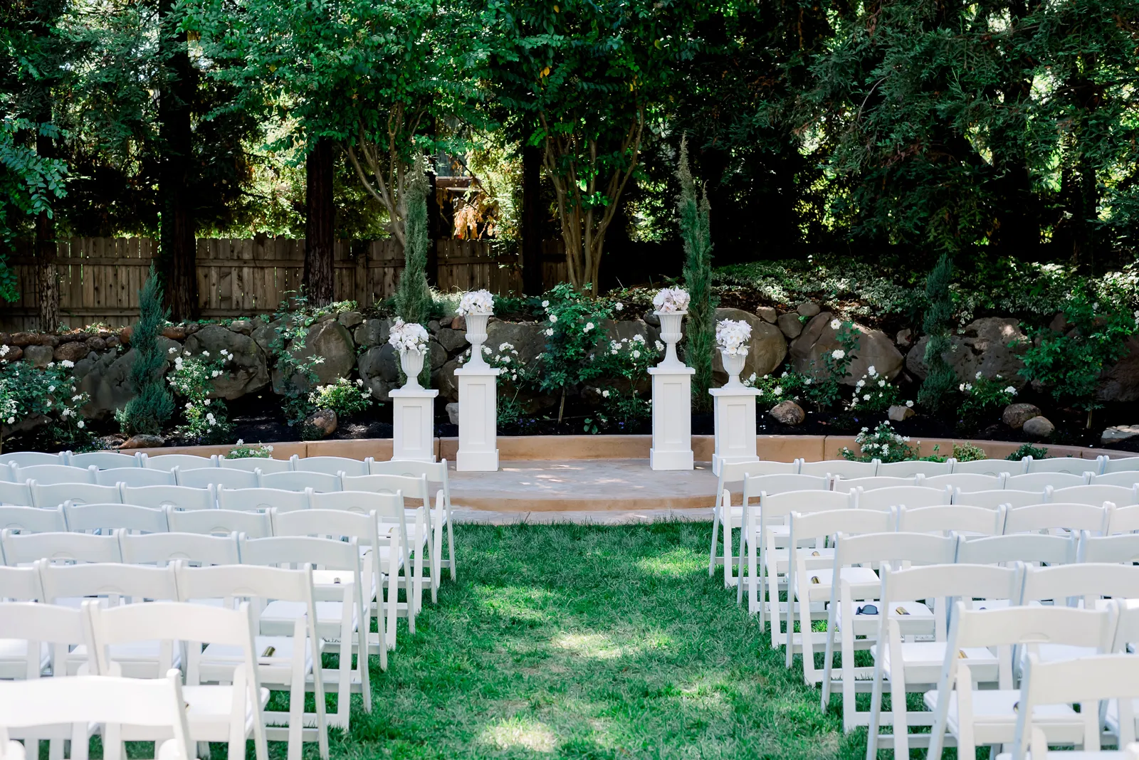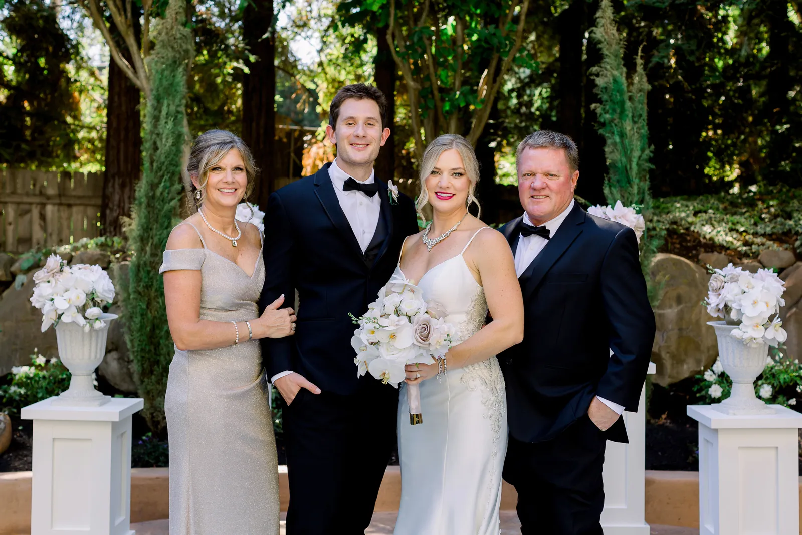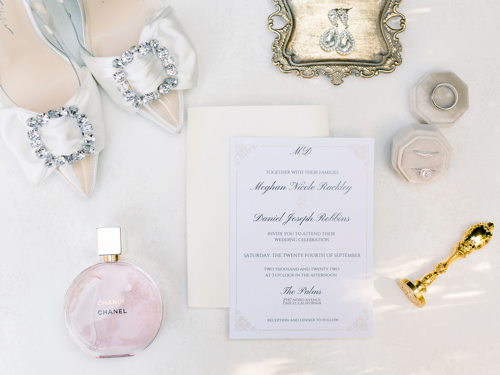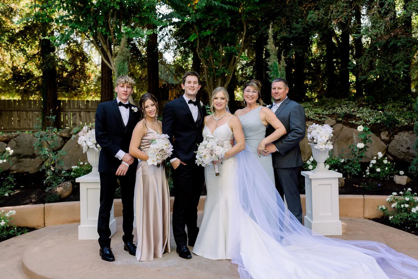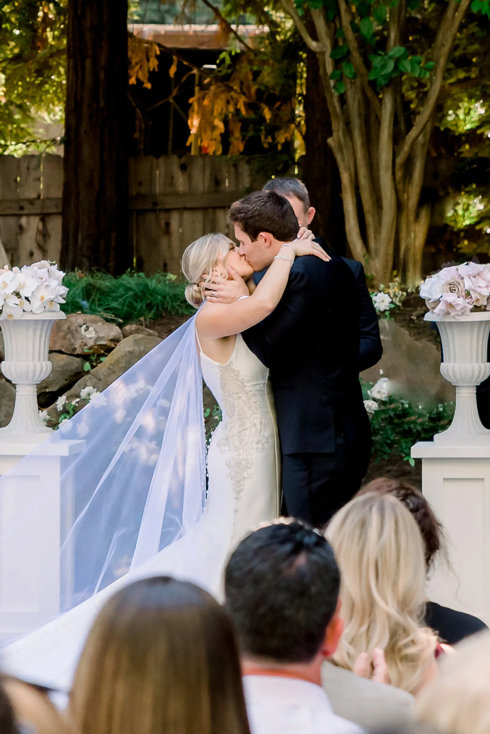 There were three things [that were] very important to my husband that we agreed to at the start of wedding planning. 1. Our dog Bella had to be involved. 2. The venue had to be climate controlled. 3.) He wanted a party! Including all of these items made the day perfect! Our sweet girl walked down the aisle with her own floral collar and pearl leash, and we got incredible photos with her that are so special. It was hot (as any summer in Northern California is) so the indoor reception with AC was brilliant. We did a first look, private vows, and bridal party pictures before the ceremony to expedite the timeline. The short ceremony started at 3:30, all extended family photos were complete by 4:15, and dinner was done by six, leaving the rest of the night for the party! Daniel never left the dance floor and we had so many people share it [with]. [It] was the most fun wedding they had been to in years!