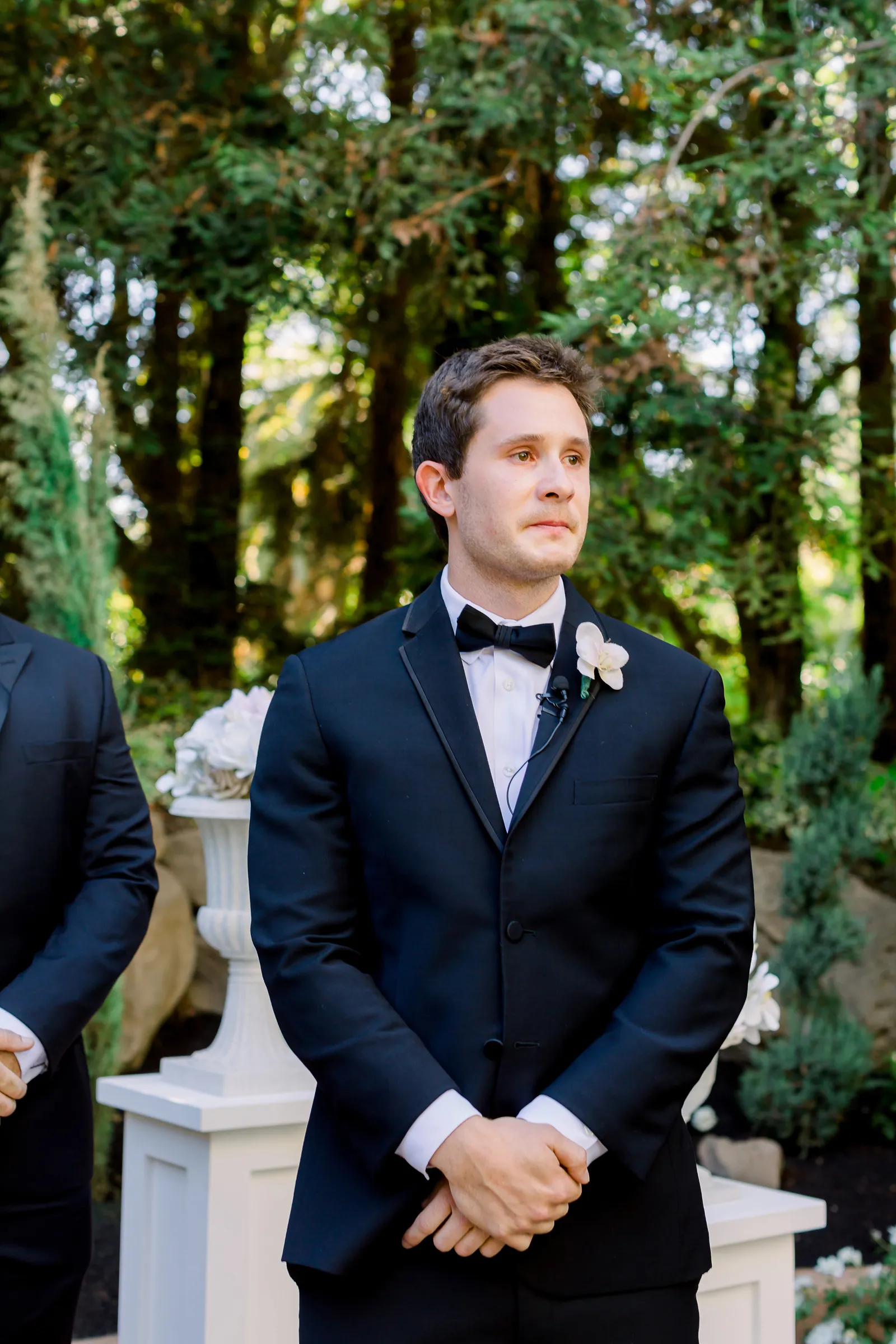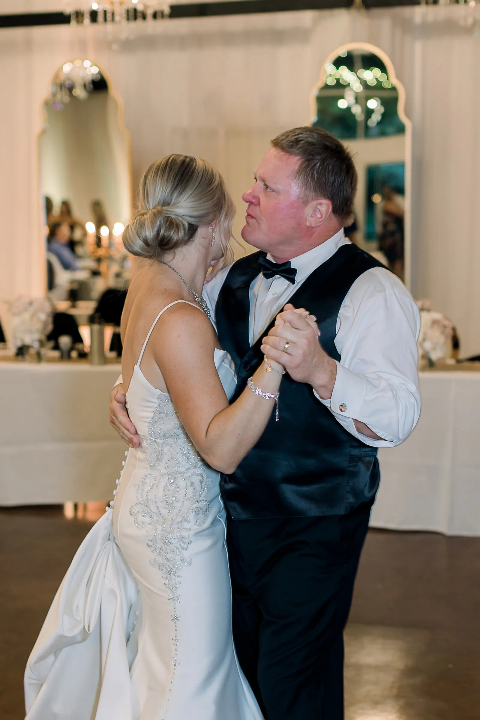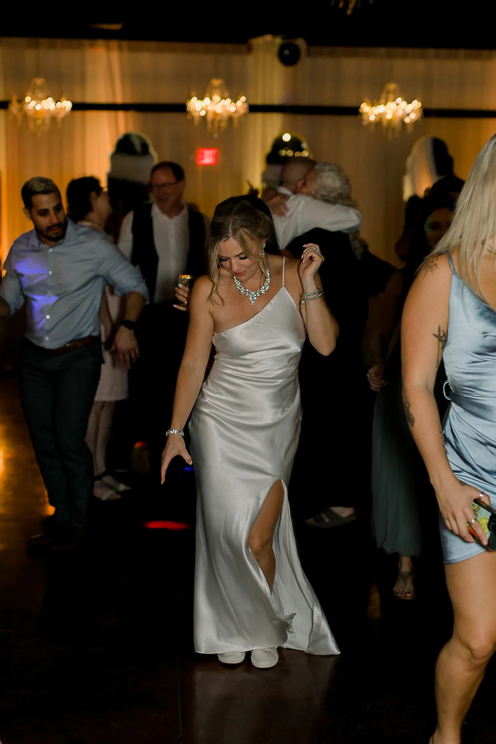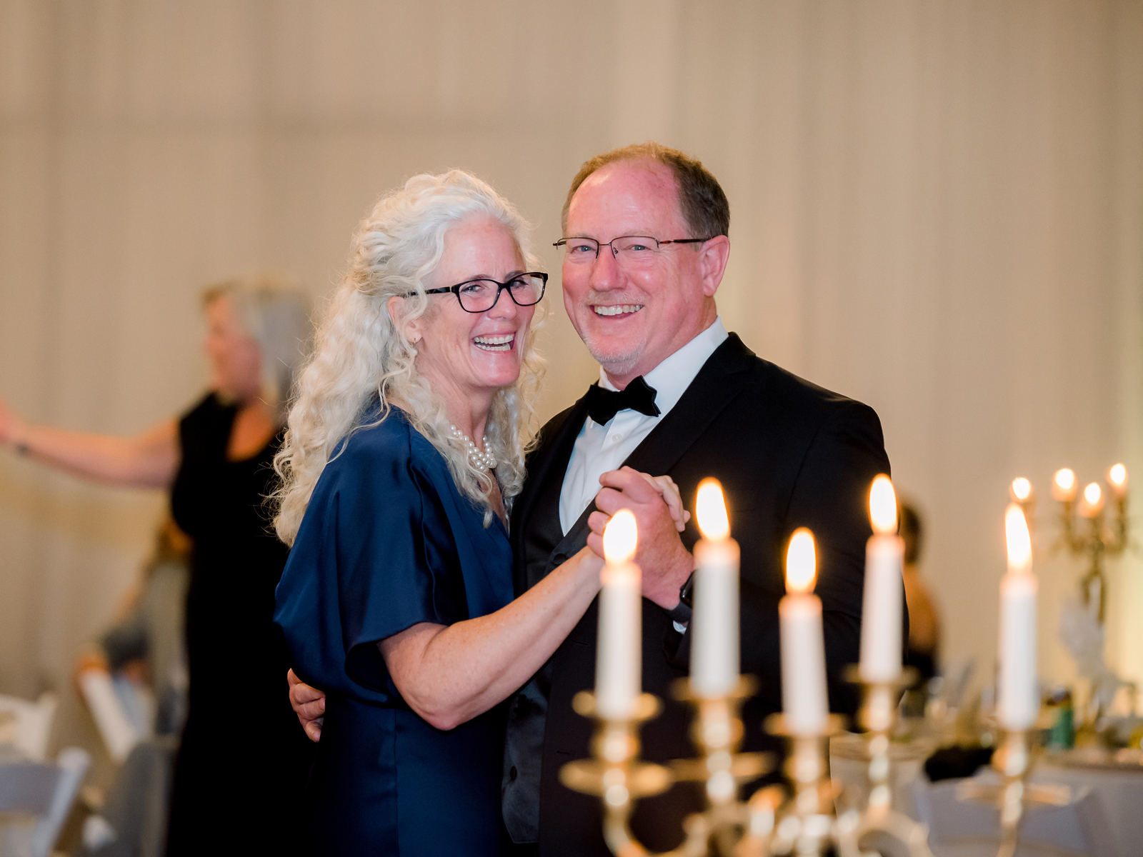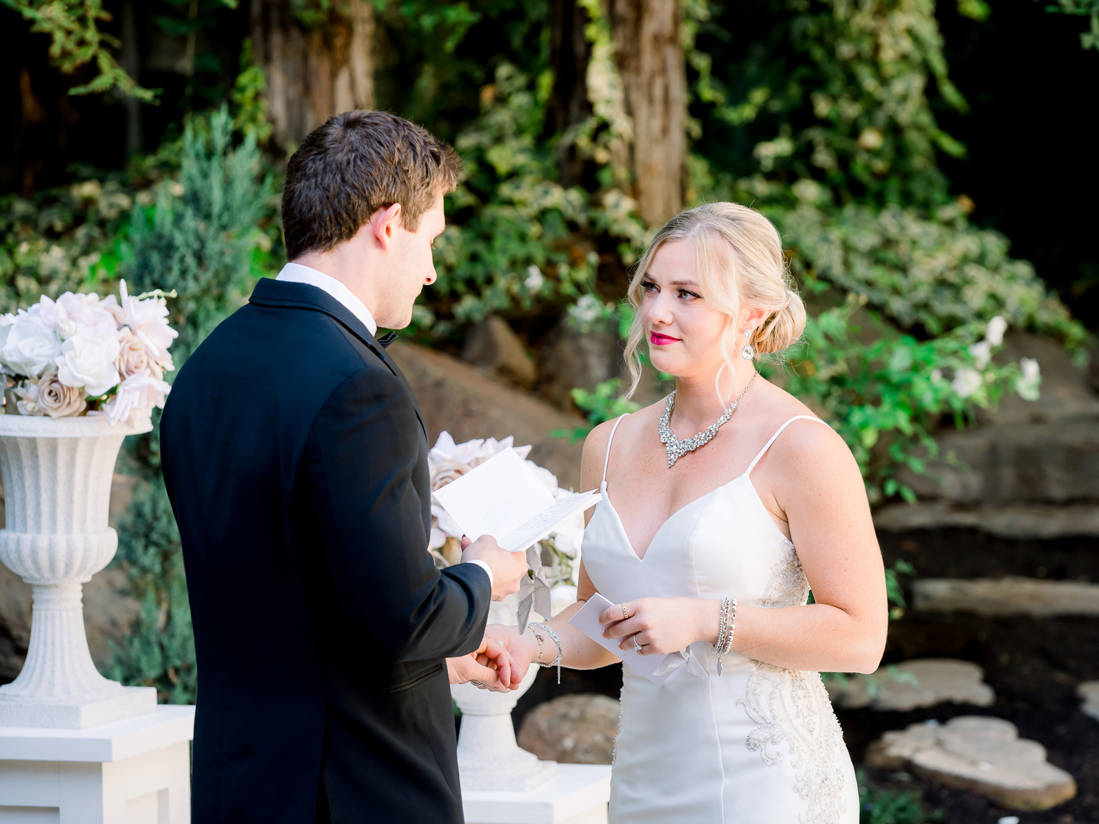 There were three things [that were] very important to my husband that we agreed to at the start of wedding planning. 1. Our dog Bella had to be involved. 2. The venue had to be climate controlled. 3.) He wanted a party! Including all of these items made the day perfect! Our sweet girl walked down the aisle with her own floral collar and pearl leash, and we got incredible photos with her that are so special. It was hot (as any summer in Northern California is) so the indoor reception with AC was brilliant. We did a first look, private vows, and bridal party pictures before the ceremony to expedite the timeline. The short ceremony started at 3:30, all extended family photos were complete by 4:15, and dinner was done by six, leaving the rest of the night for the party! Daniel never left the dance floor and we had so many people share it [with]. [It] was the most fun wedding they had been to in years!