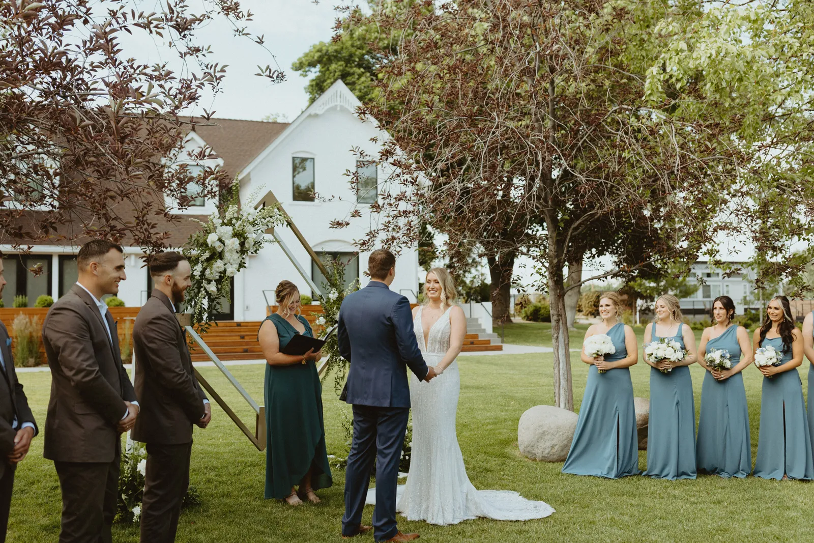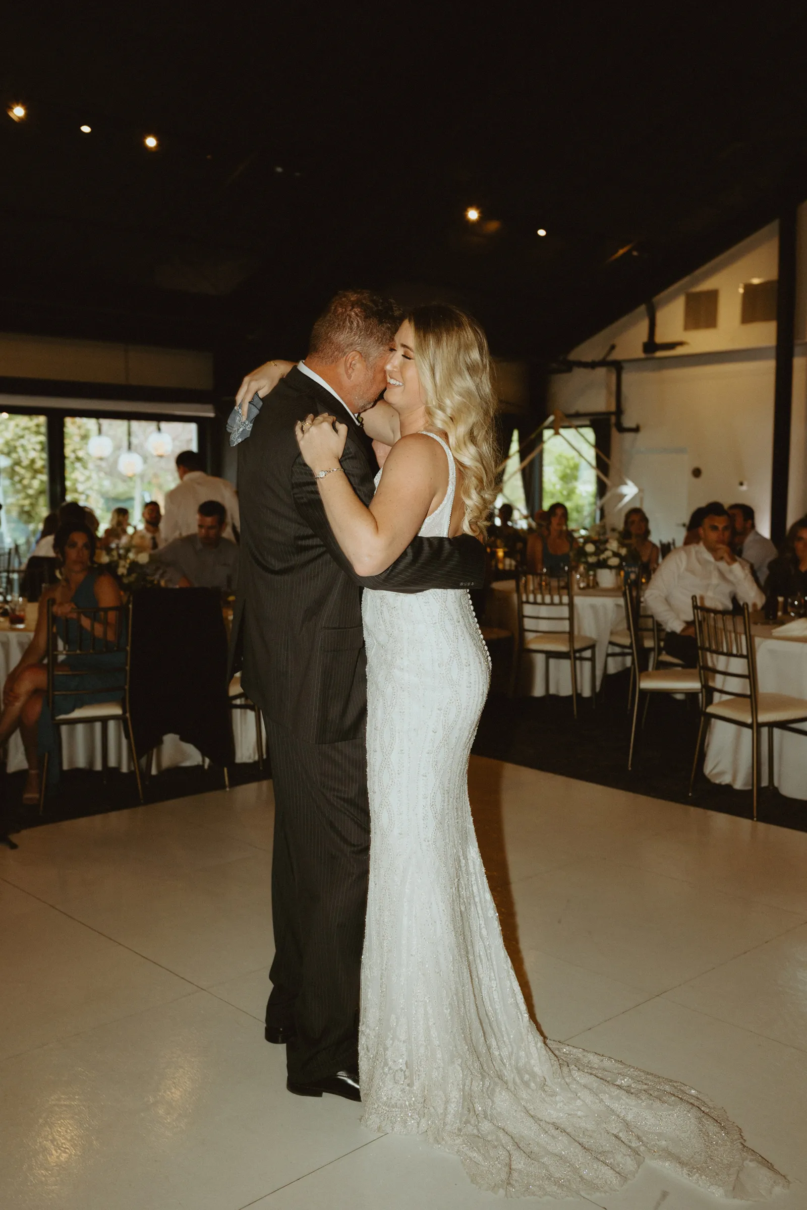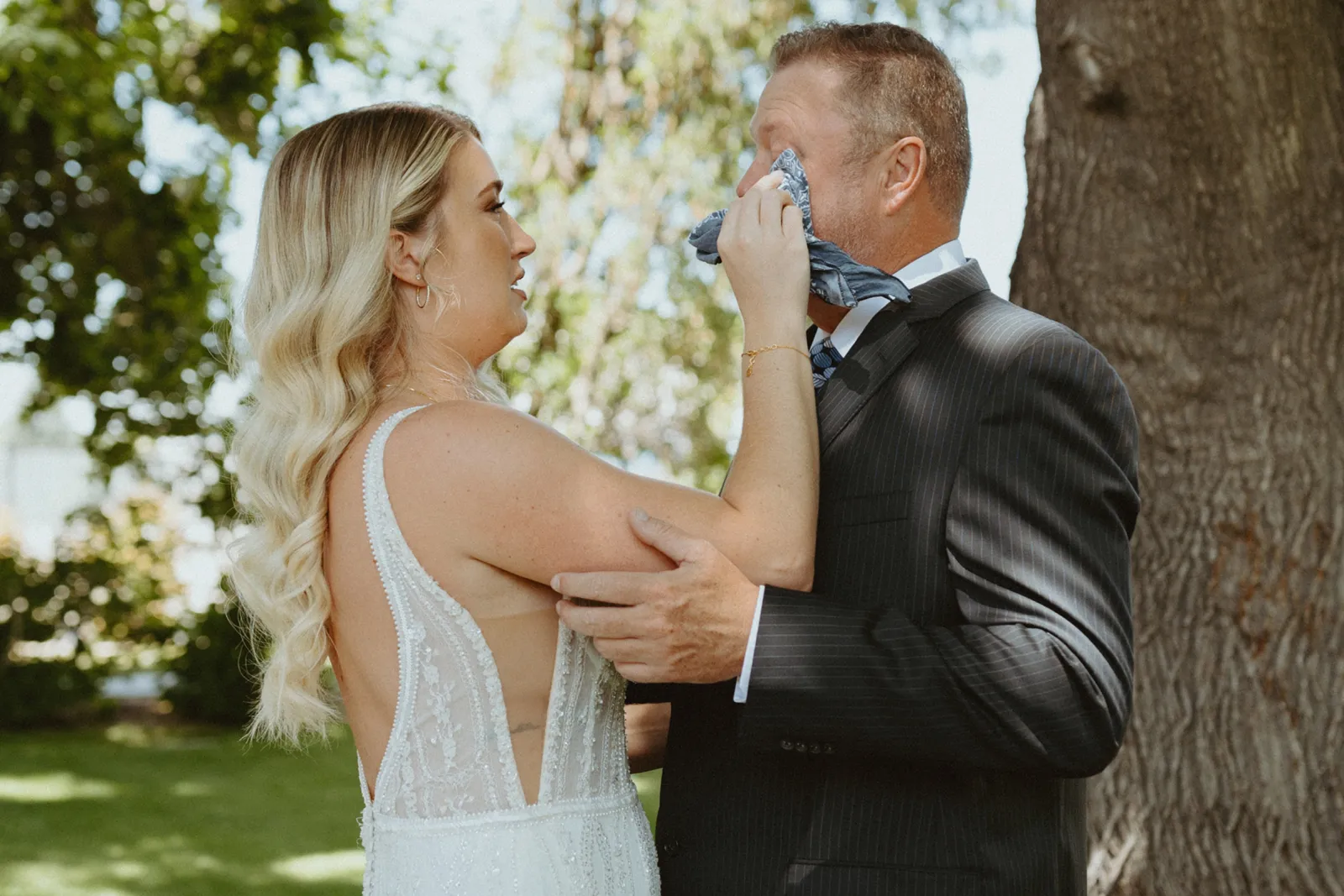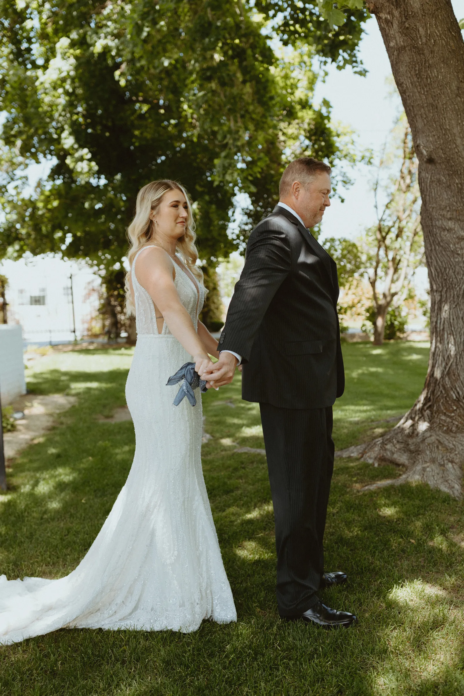 I (Morgan) did a first look with my dad that is a core memory forever. It was so sweet and to have that private moment meant the world to my dad and me. Thinking about this moment brings me to tears every time! The officiant was our friend who was with us when we got engaged. Seemed like the perfect option to marry us!