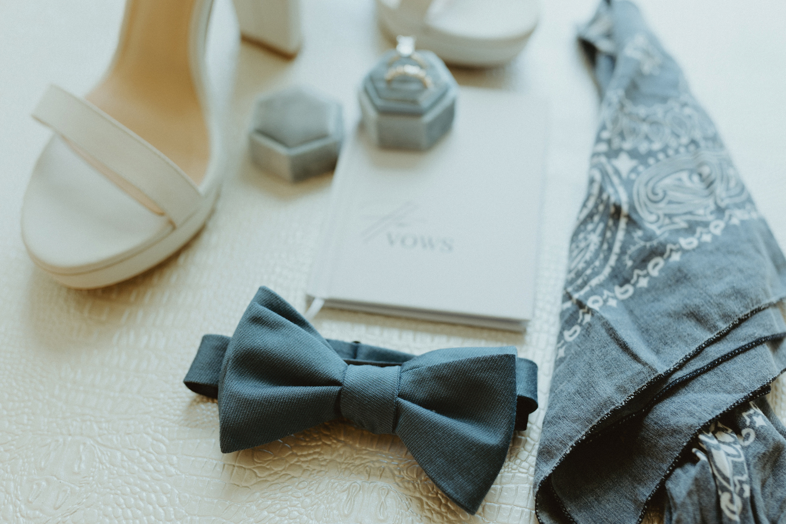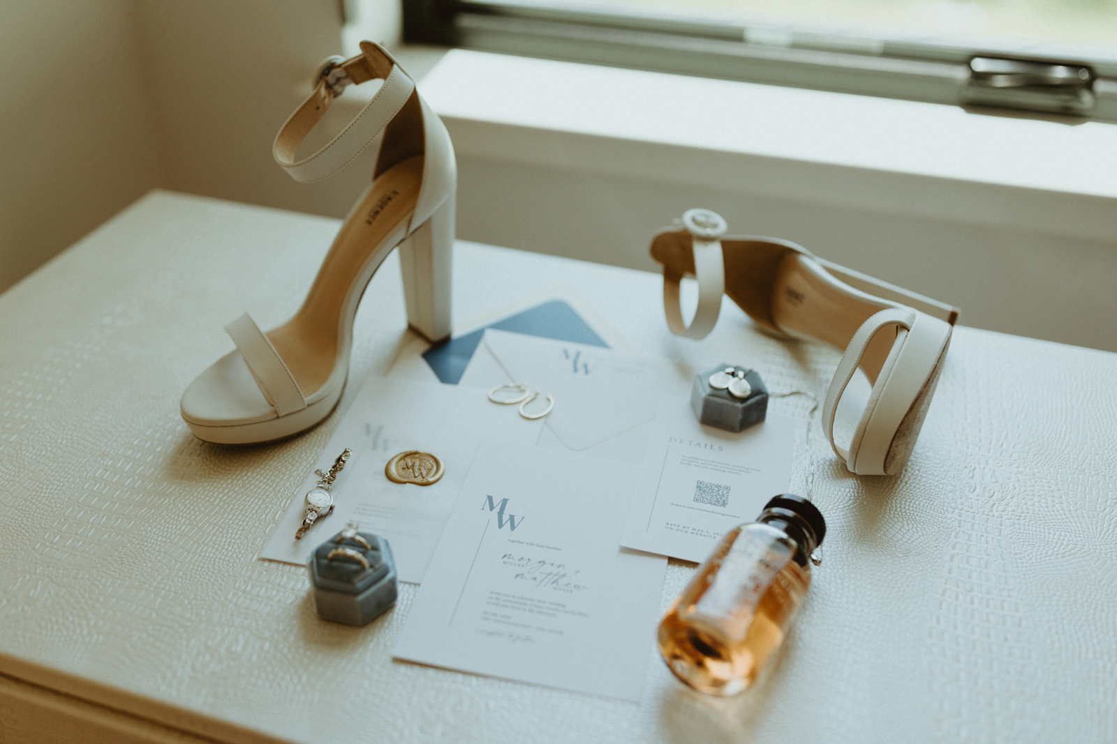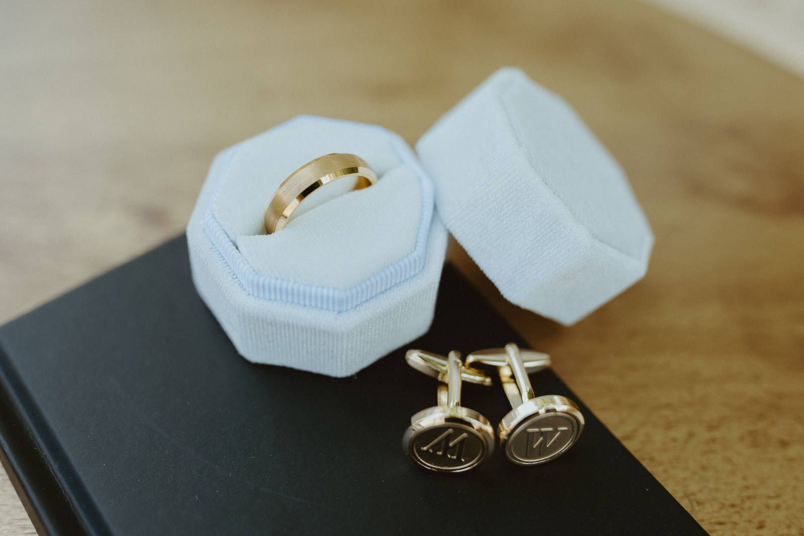 Budget. It is hard to understand the cost of planning a wedding, especially when you aren’t planning gatherings of hundreds of people regularly. Two things helped us when budgeting our wedding. Number one, where is the money coming from. This helps you understand what is actually available. The next thing that helped us stay within our budget was getting multiple quotes from vendors. For example, for food, we asked three local caterers for pricing. Then asked a few questions about customization and how to work in our budget. (The key is to ask all the vendors for the exact same thing, so that you are comparing apples to apples.) That helped us narrow down the team to work with. To assist tracking your budget, you and your fiancé need to prioritize what is important on your day. If you both love to dance, then music/DJ needs to be at the top of your list. If florals are going to be your focal point and no other décor will be used, look into a florist first. For me and my groom, location, food and beverage were important to us. So those vendors were booked first and were able to take up more budget because they were our focal points. Everything else will elevate the evening. Another topic that seems to always come up: the first look. Do it, you will not regret it! For our first look, I did not wear my veil or bring my flowers. This made walking down the aisle equally as special because those details were new. The first look is emotional and probably the last time you’ll be alone together until you go to bed. Plus, we were not excited about sharing our personal vows in front of our family and guests. Our first look is even more special because we exchanged our vows then, making it super intimate. Definitely a core memory! Something simple to elevate the day is to have personal details around. Whether this is a wedding logo that is used on signage and stationery to photos of you and your fiancé around the room.