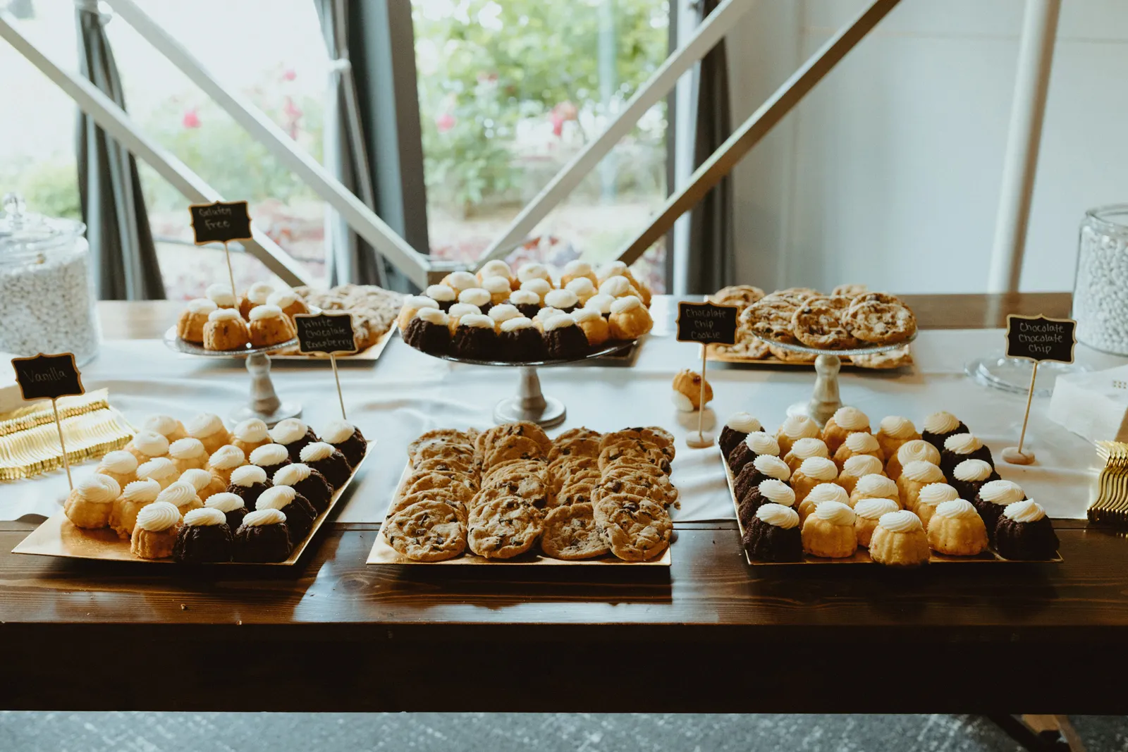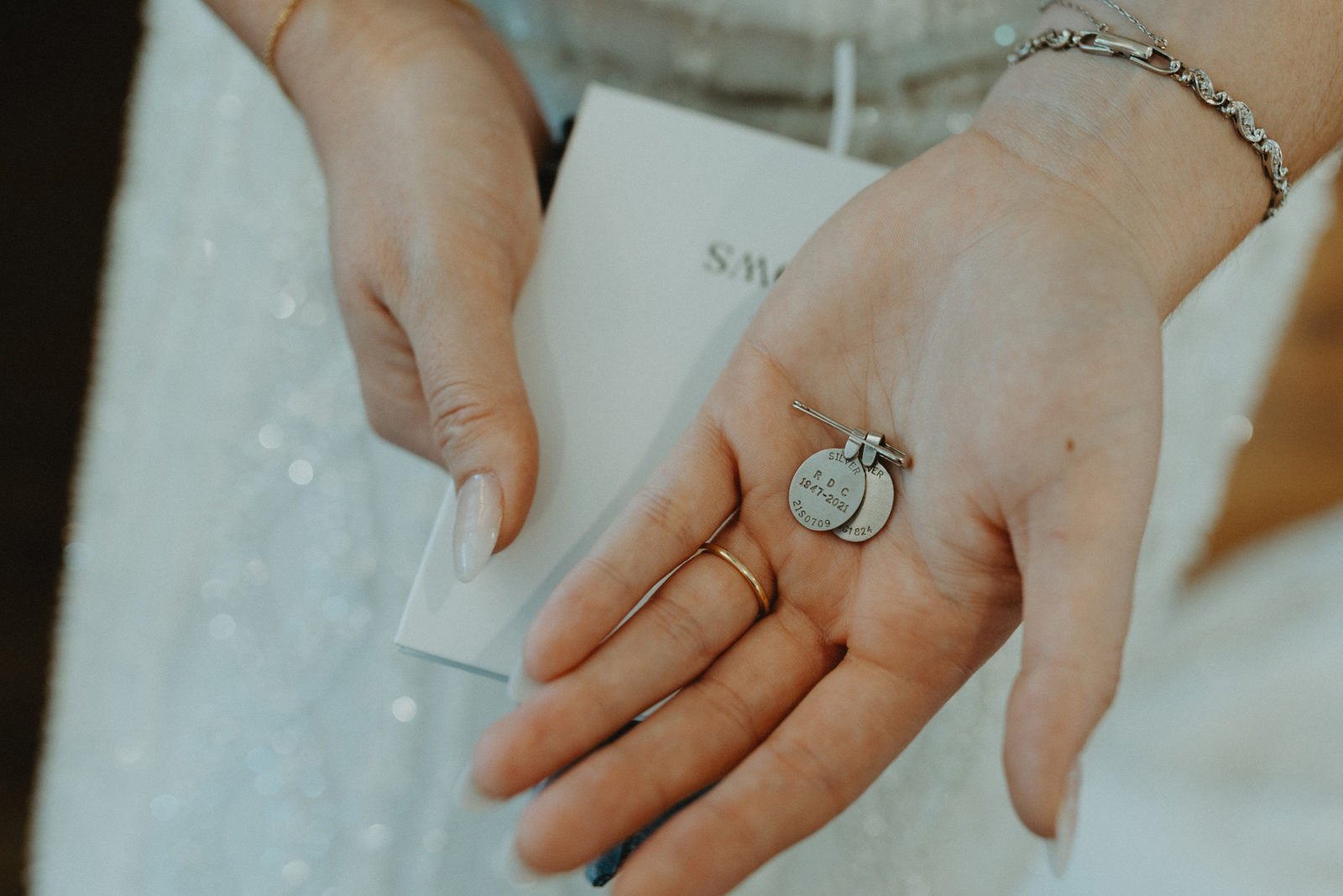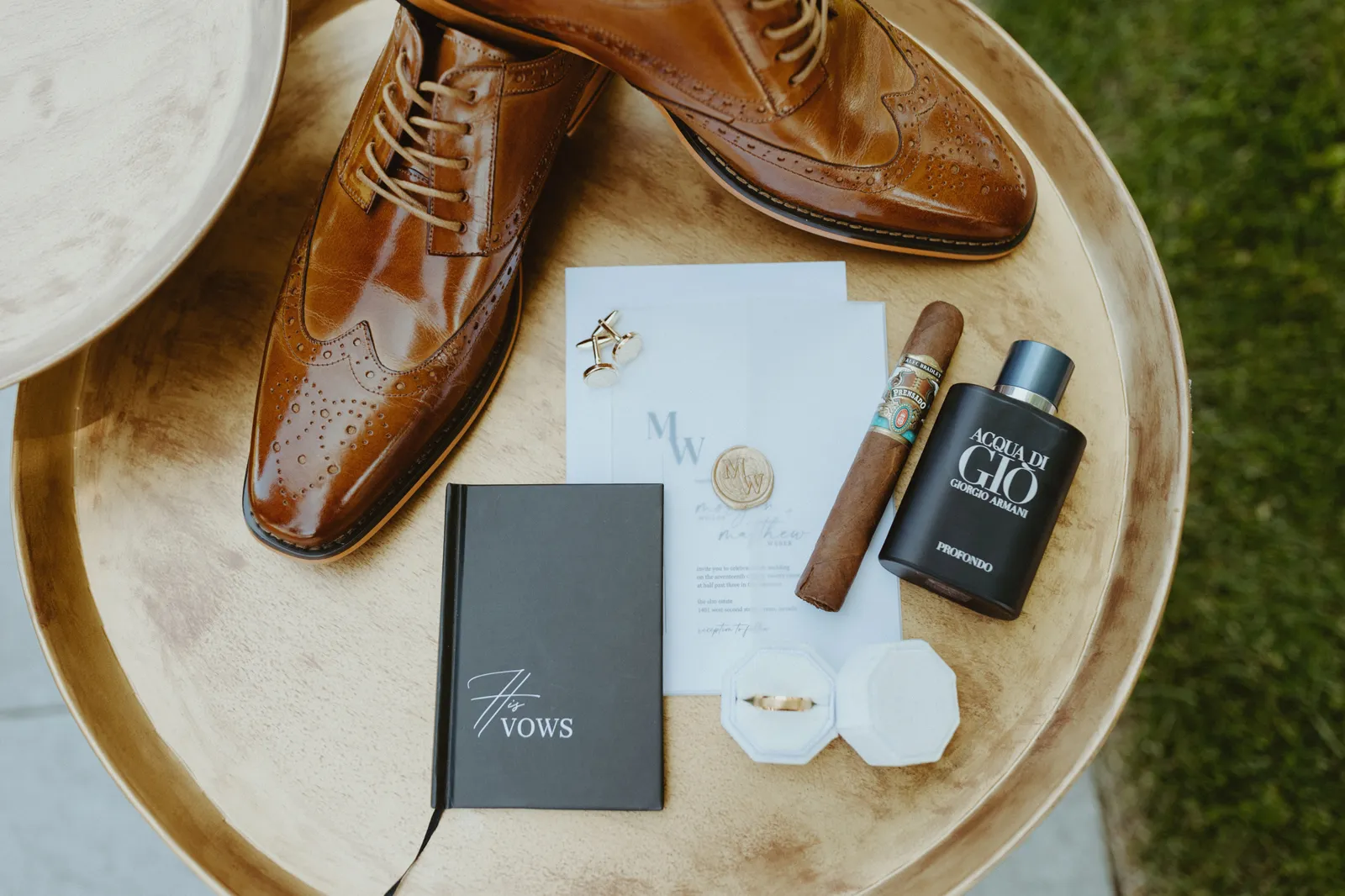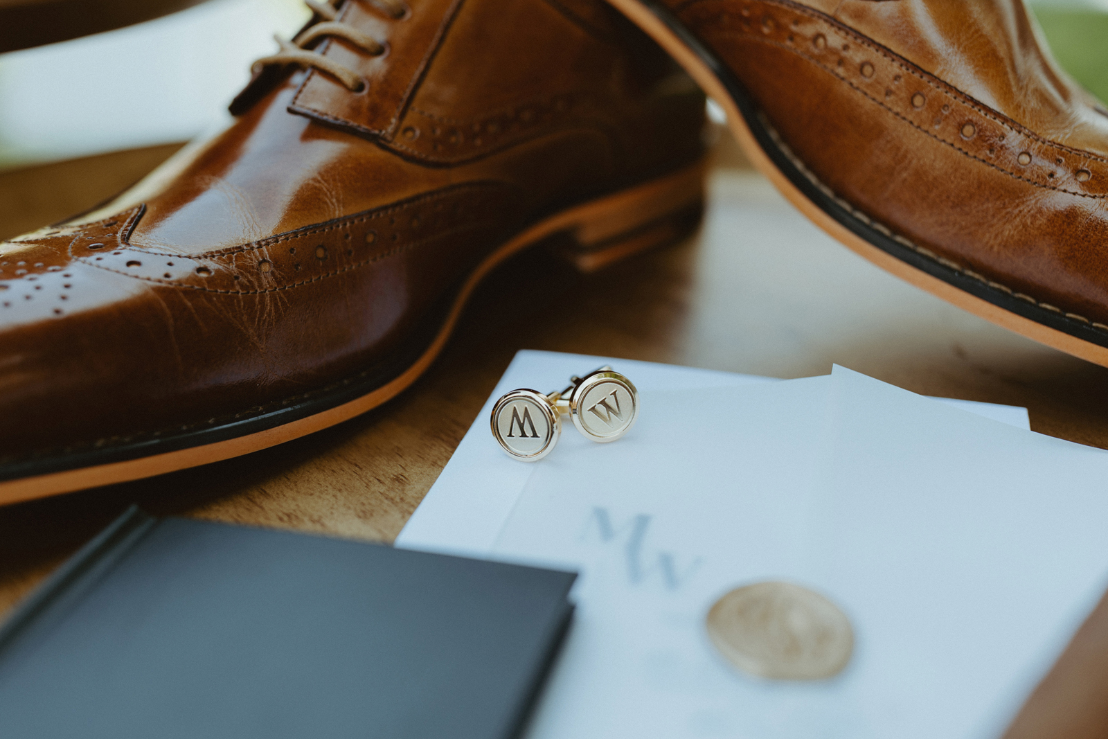 Budget. It is hard to understand the cost of planning a wedding, especially when you aren’t planning gatherings of hundreds of people regularly. Two things helped us when budgeting our wedding. Number one, where is the money coming from. This helps you understand what is actually available. The next thing that helped us stay within our budget was getting multiple quotes from vendors. For example, for food, we asked three local caterers for pricing. Then asked a few questions about customization and how to work in our budget. (The key is to ask all the vendors for the exact same thing, so that you are comparing apples to apples.) That helped us narrow down the team to work with. To assist tracking your budget, you and your fiancé need to prioritize what is important on your day. If you both love to dance, then music/DJ needs to be at the top of your list. If florals are going to be your focal point and no other décor will be used, look into a florist first. For me and my groom, location, food and beverage were important to us. So those vendors were booked first and were able to take up more budget because they were our focal points. Everything else will elevate the evening. Another topic that seems to always come up: the first look. Do it, you will not regret it! For our first look, I did not wear my veil or bring my flowers. This made walking down the aisle equally as special because those details were new. The first look is emotional and probably the last time you’ll be alone together until you go to bed. Plus, we were not excited about sharing our personal vows in front of our family and guests. Our first look is even more special because we exchanged our vows then, making it super intimate. Definitely a core memory! Something simple to elevate the day is to have personal details around. Whether this is a wedding logo that is used on signage and stationery to photos of you and your fiancé around the room.