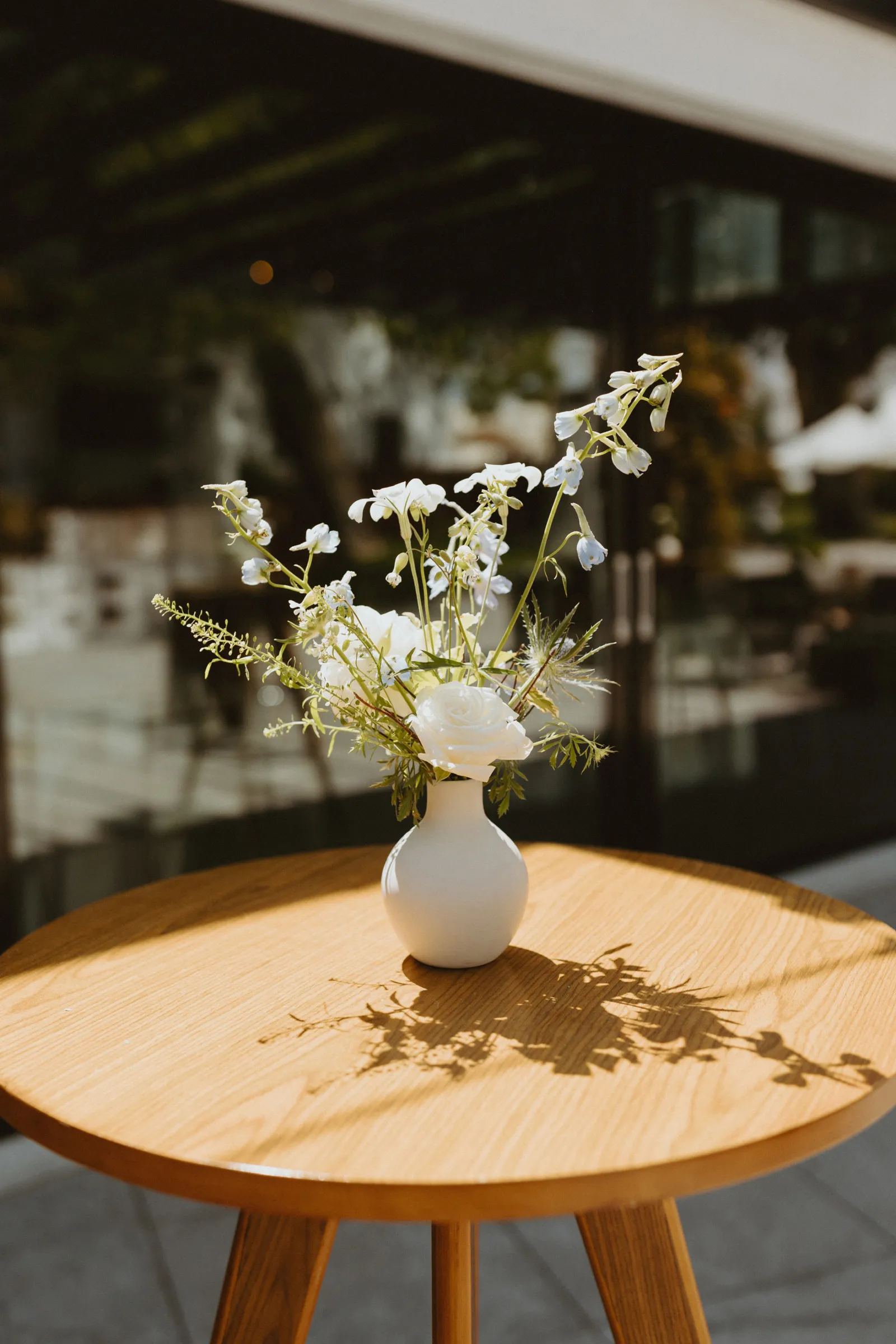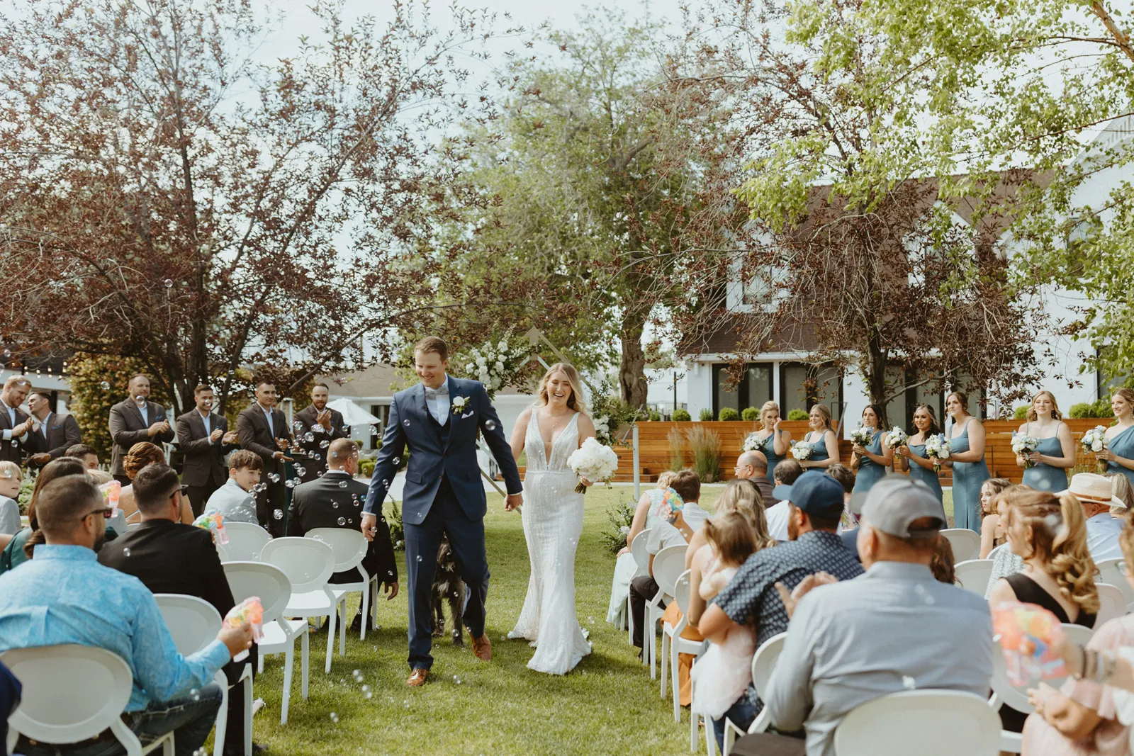 We met in October of 2018 at a Halloween party. So, me (Morgan) being outgoing and assertive, I started to spark conversation with Matt. He was very short and sounded uninterested, so I gave up and went on to hang out with my girlfriends. By the time I was ready to leave, one of my girlfriends told me to go get his number. I walked up to Matt and said I’m leaving, and he said “Okay, bye”. Me (Morgan, being assertive) said, “Are you going to ask for my number?” So, Matt did ask for my number, and the rest is history. Fast forward to 2022, while building our home, we would go to our construction site to take progress photos each month. In May, when we went to take our monthly progress photo in front of the house, Matt had some friends tag along to check out our framed new home. While they took our progress photo, Matt got down on one knee and asked me to marry him!Wedding planning started right away! We already had a booked trip the weekend after getting engaged so when we got home I asked Matt if he wanted to go check out The Elm Estate’s Engaged Open House. He said yes, and we went straight from the airport. This is where we met Emma and Peter Paul. The best two humans we’ve met in a long time. Walking around The Elm Estate, we fell in love with the venue and booked the next day. After securing a venue, wedding date, and a photo and video team, we tracked our budget and looked into the larger vendors like the caterer and florals. My goal was to book our vendors before the holidays, mainly to avoid cost increases that typically come at the end/beginning of the year. We both wanted a great party. Our focus was on the vibe, food and music. Since The Elm Estate is so gorgeous on it’s own we did not have to bring in rentals to enhance the venue. The Elm Estate already matched our theme and aesthetics, which helped our budget! Once we were under 100 days from our wedding, we implemented weekly wedding dates. This was so fun and super helpful to be on the same page. We would go to our favorite restaurant or cook at home. For two hours we would have uninterrupted wedding planning conversations. Asking each other what was important on that day to implement or add things with remaining budget money. This was the best thing to do because it got us both so excited for our wedding!
