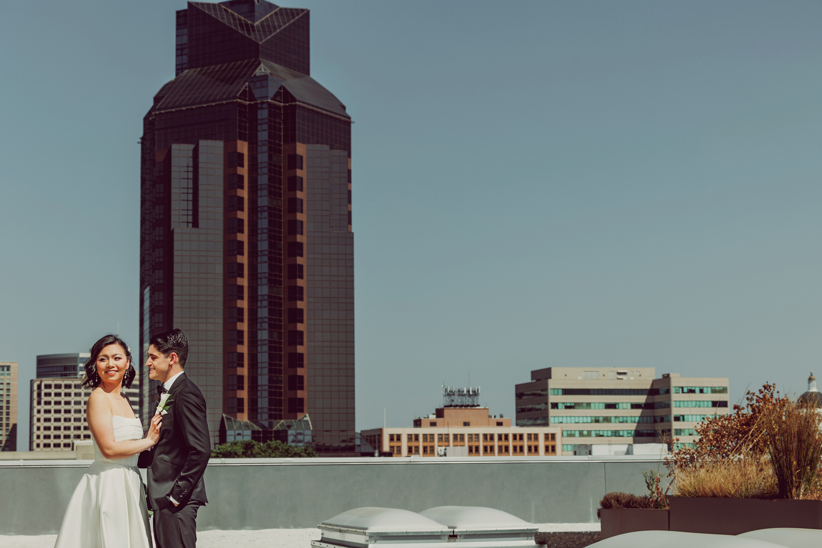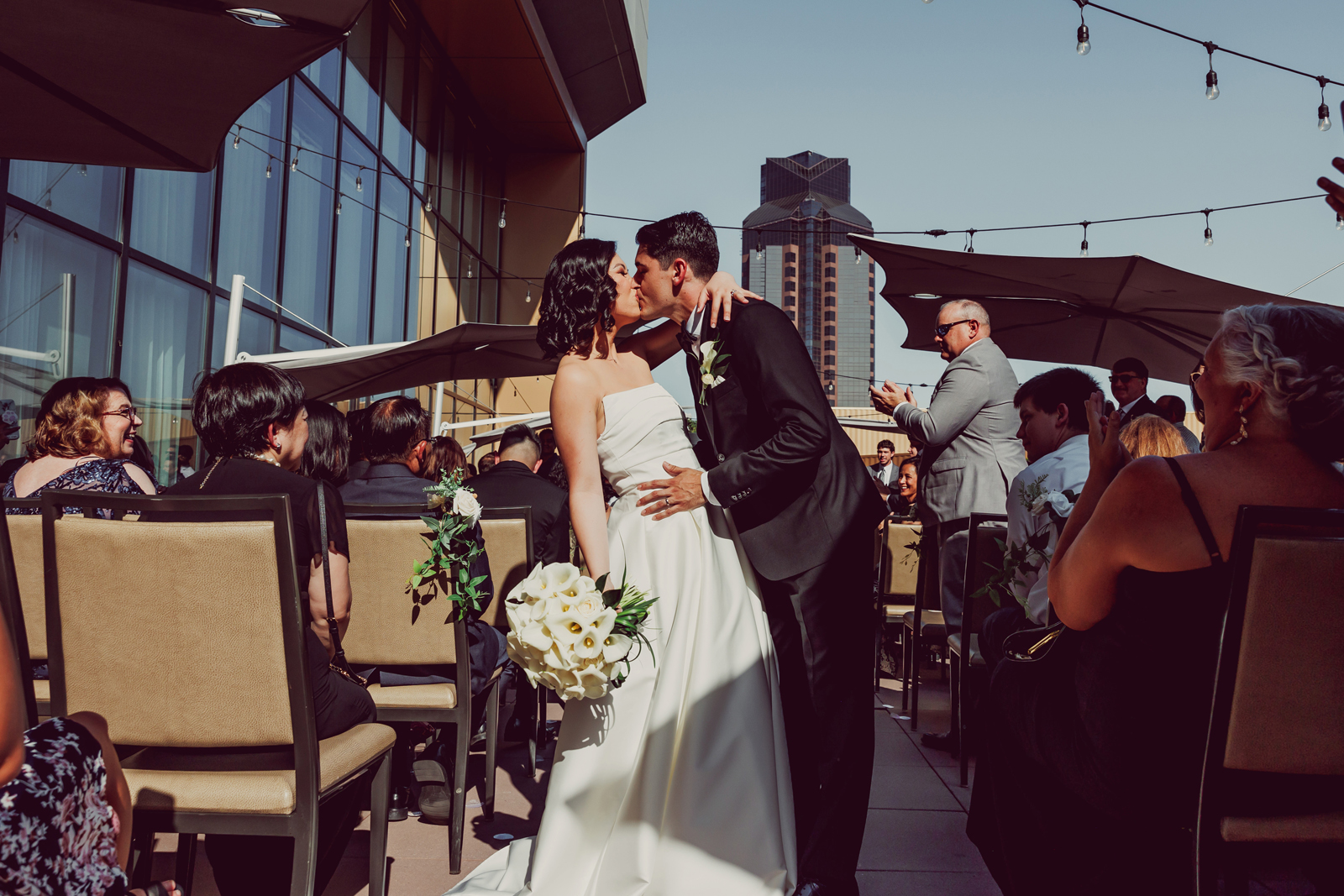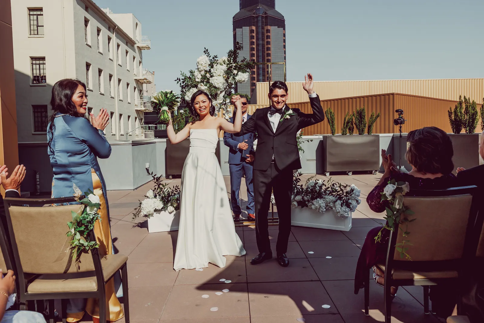 Happy Real Weddings Wednesday, everybody! Today, we’re celebrating NyNy + James gorgeous Kimpton Sawyer Hotel wedding, complete with a rooftop ceremony! Expect full and elegant florals, beautiful cultural touches, and stunning photos from the talented Dee & Kris Photography.