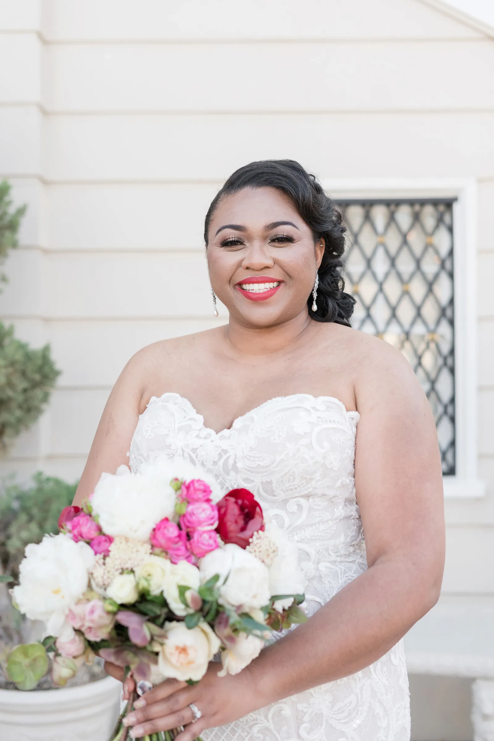 My husband and I met at a church Halloween party and became friends after continually running into each other at church events. Things turned romantic and we became a couple two years after meeting. He initially proposed to me (without a ring I might add) while vacationing in Japan, so I thought he was joking. After we came back from our trip, however, he officially proposed to me (with the ring he picked out, which was ready once we got back) on our date night in Benicia, CA at the waterfront on June 15, 2019.