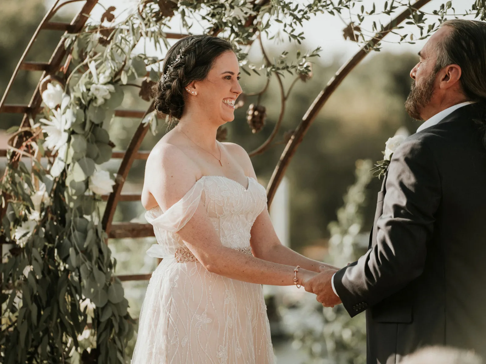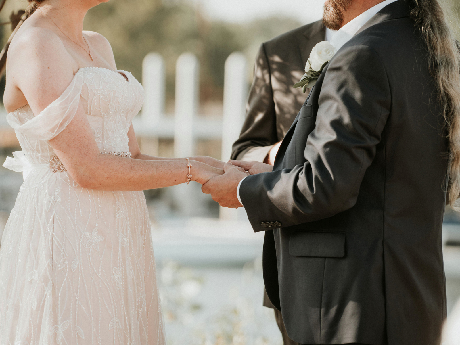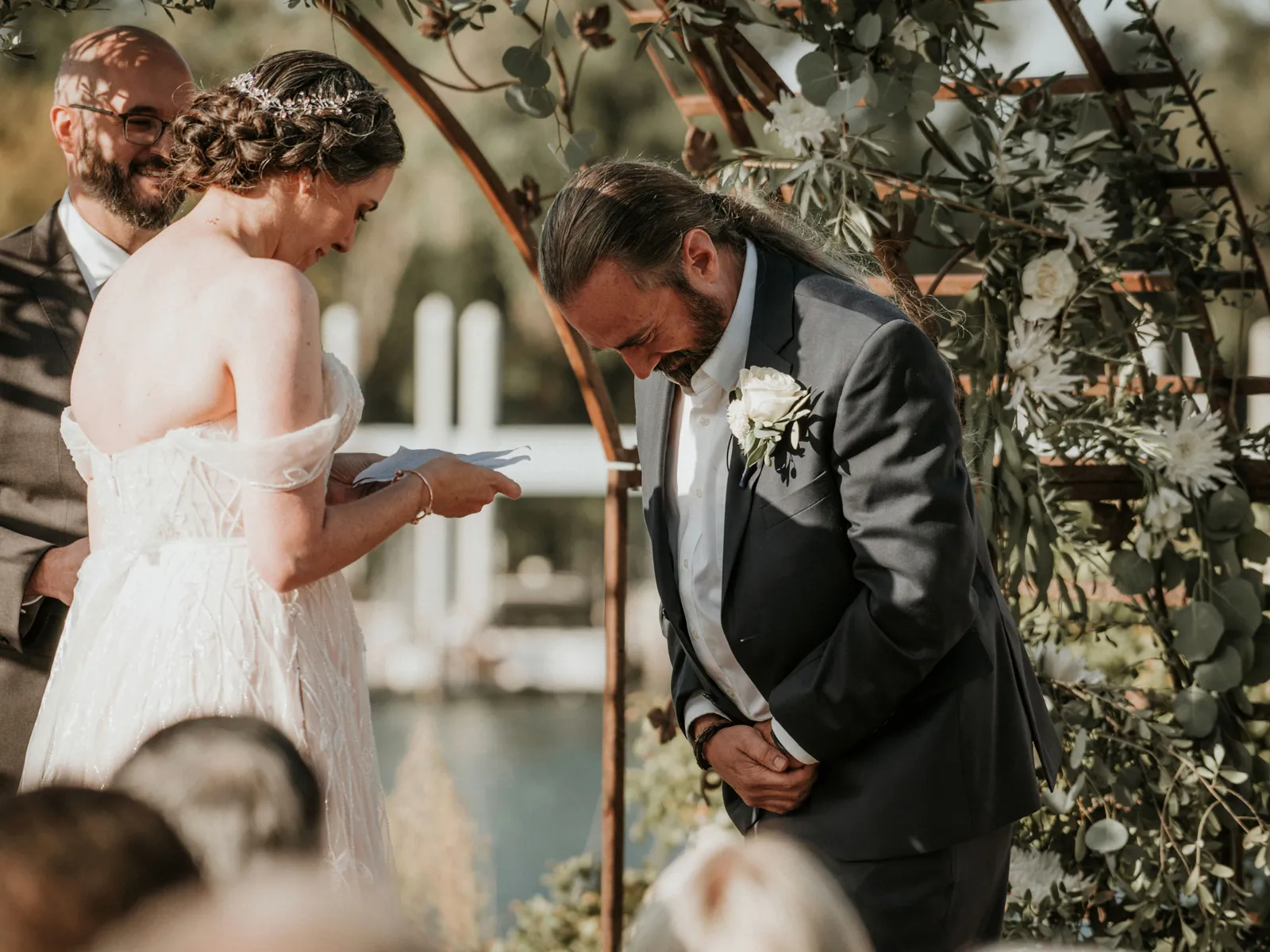 Jeff enjoyed watching me walk down the aisle and seeing me in my dress. I enjoyed seeing him at the end of the aisle, too. The one tradition we wanted to honor was not seeing each other before the ceremony.