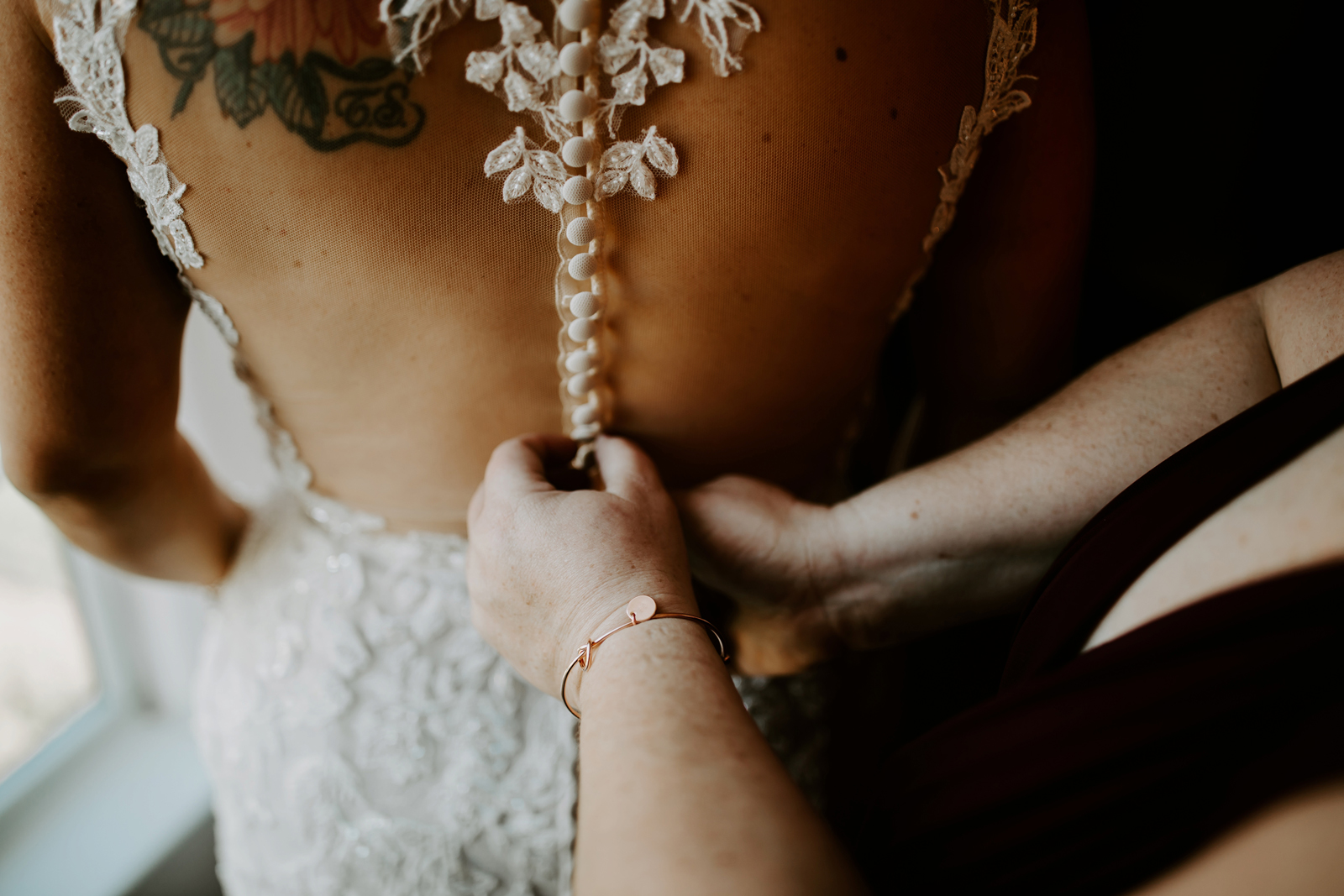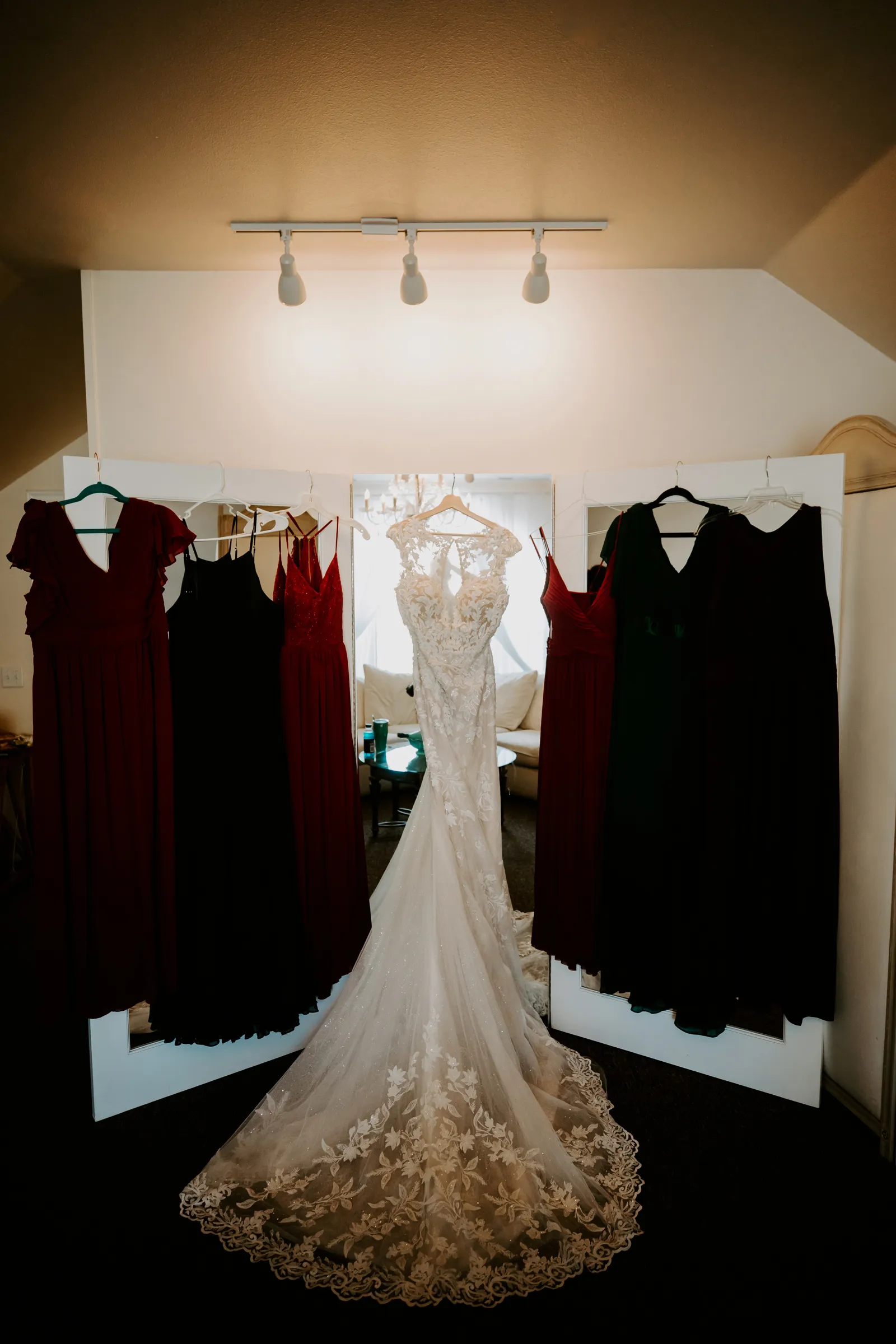 I gave my bridesmaids a color scheme for their dresses and allowed them to pick their own. In hindsight, I would have assigned colors to everyone because the aesthetic wasn’t exactly what I had envisioned. I would still allow them to pick out their own dresses because it was very low stress and allowed everyone to find something within a budget they were comfortable with.