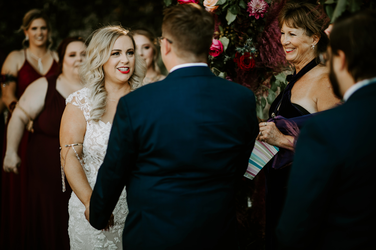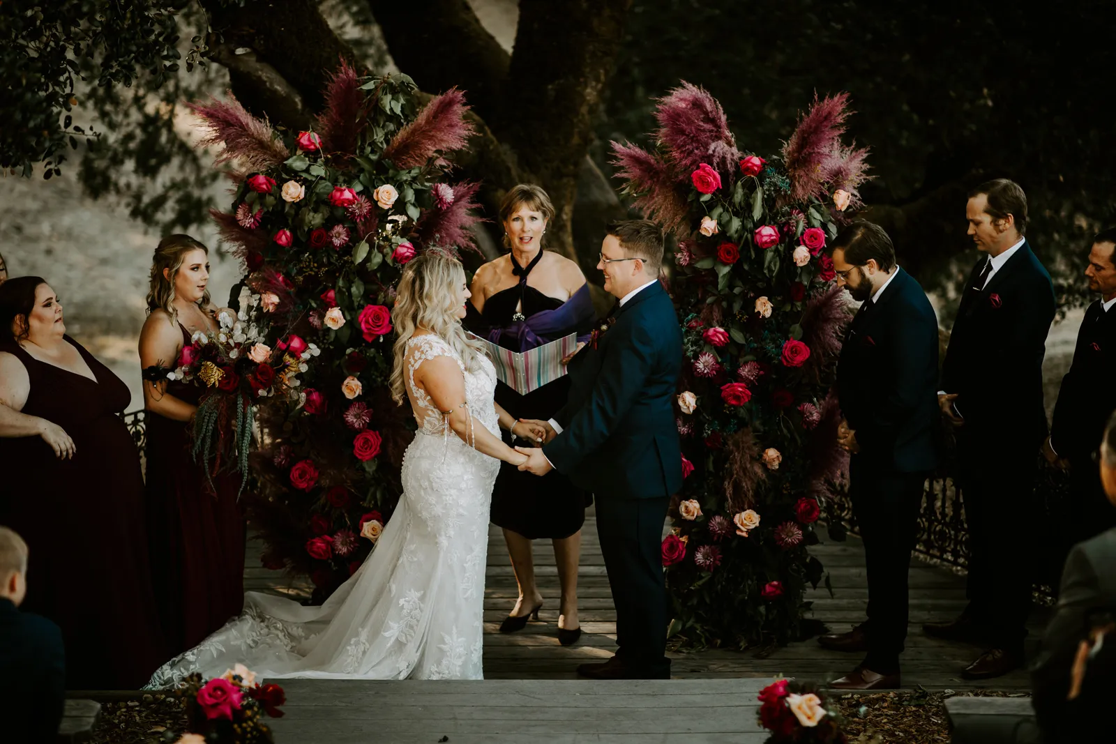 Happy Real Weddings Wednesday, everybody! We’ve got a beautiful wedding full of rich floral arrangements (think maroon, pale white and fuchsia!), along with fun Star Wars and Disney accents! Scroll below to see all the beauty and fun that is Renee and Chris’s wedding. Happy Wednesday, and happy reading!