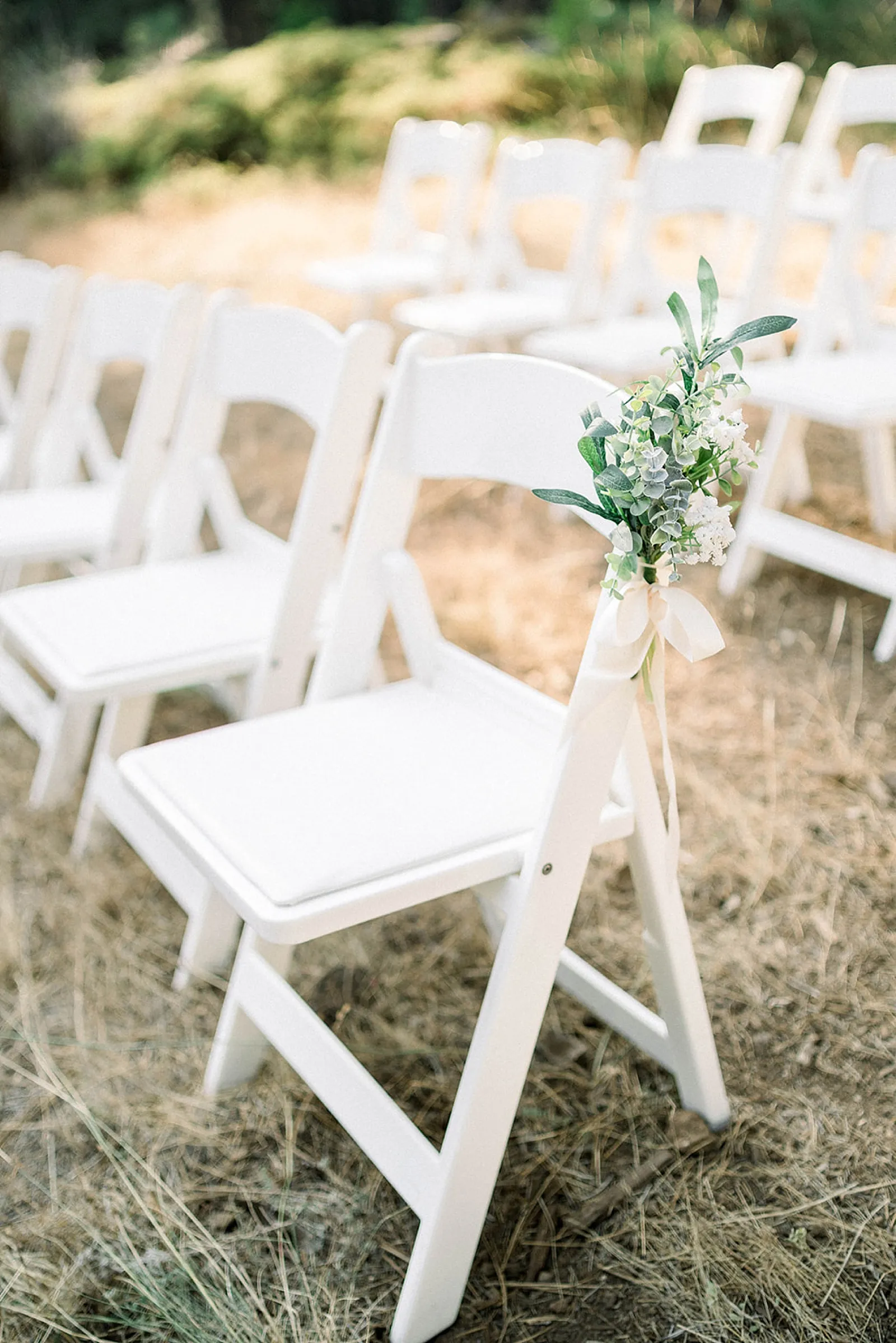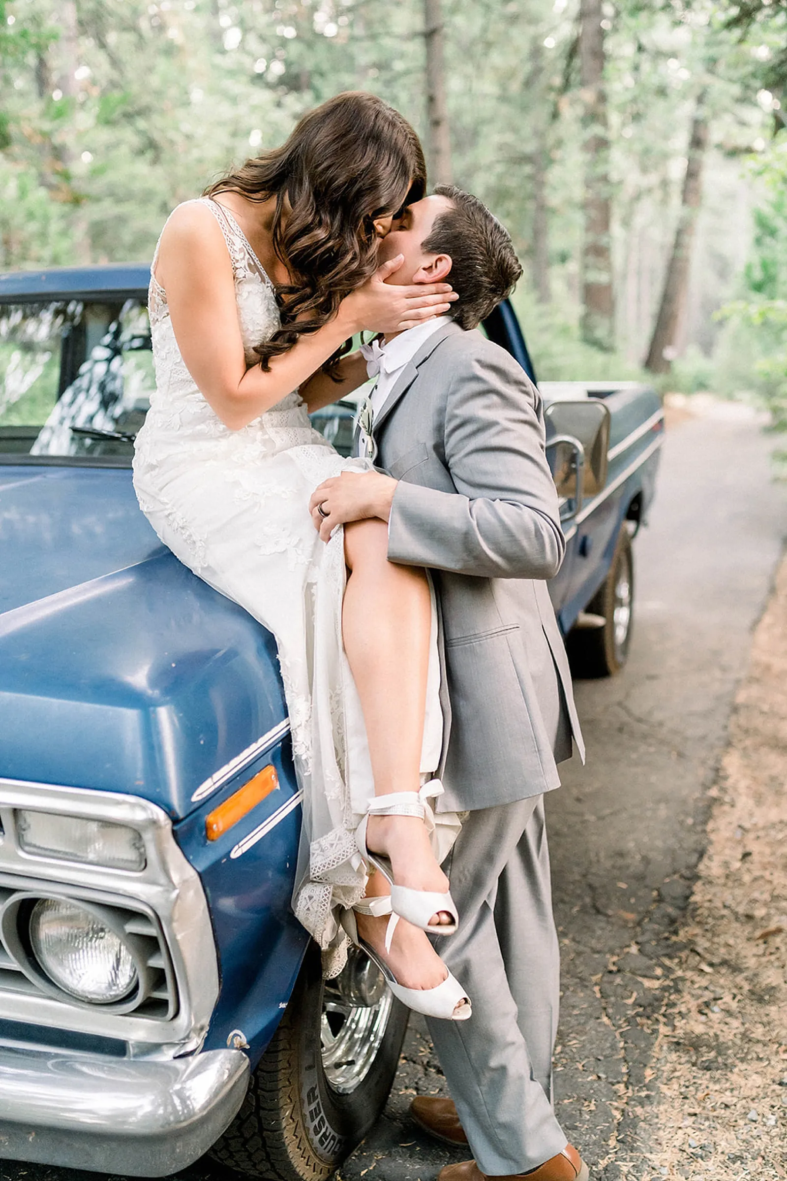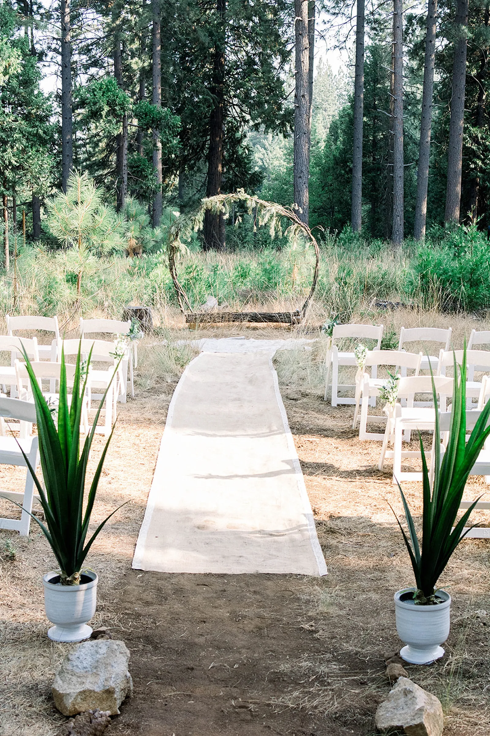 What was the best part of your day? All of it! The wedding was originally going to be a golf course, then at Bear Valley, the a local ski resort, and literally three days before the wedding there were major fires that prevented us from having it there. We ended up creating a romantic, intimate, magical ceremony in a meadow walking distance from Cory’s childhood home. Cory created the walkway, lined with pinecones from the meadow, and an arbor made from surrounding foliage and branches. It was special because we created it but also the natural beauty of the location spoke on its own.