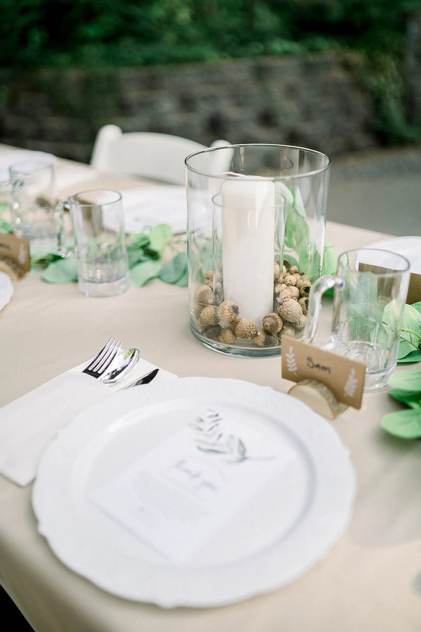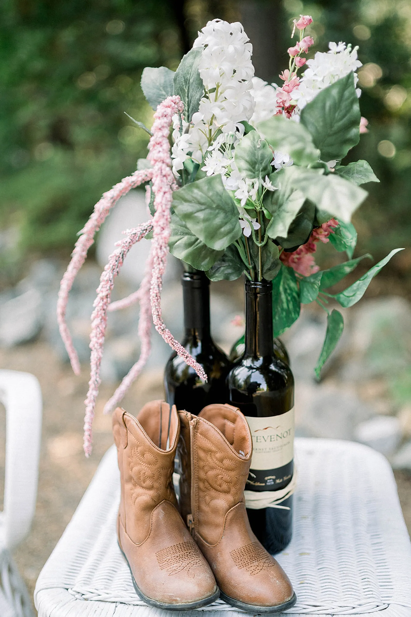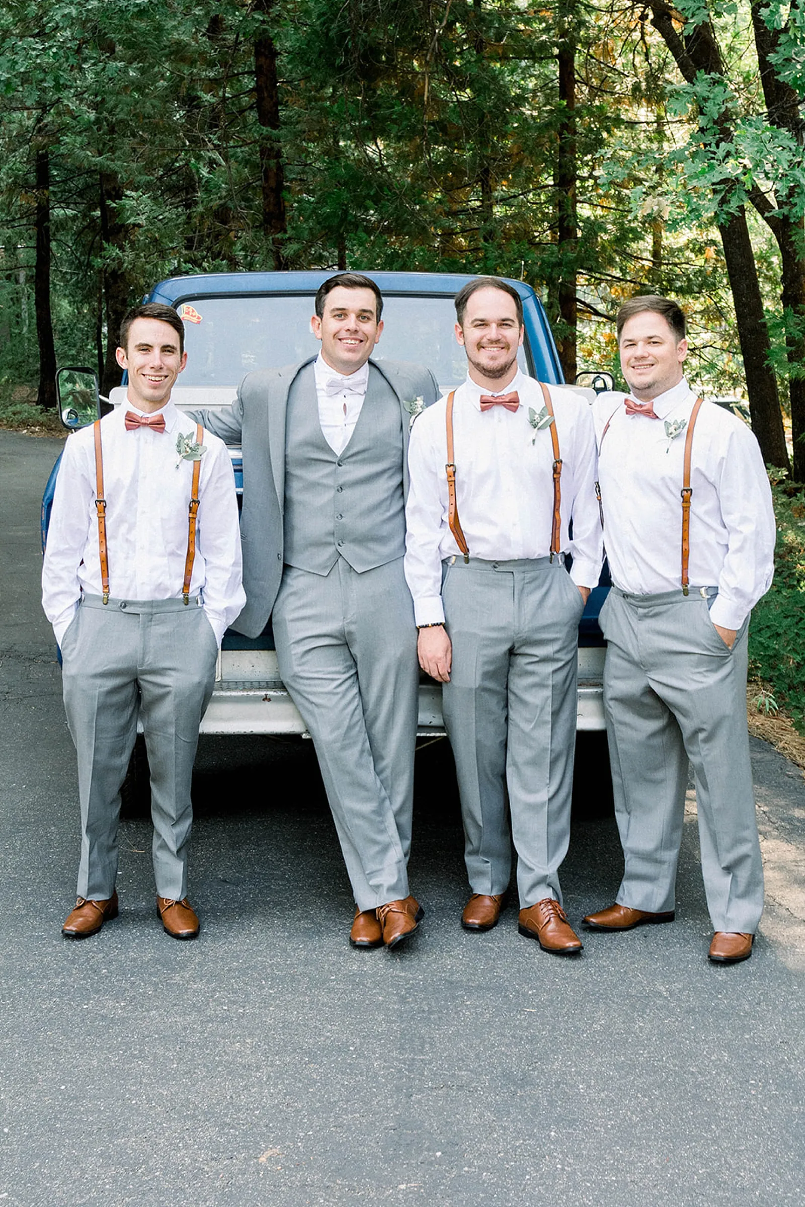 What was the best part of your day? All of it! The wedding was originally going to be a golf course, then at Bear Valley, the a local ski resort, and literally three days before the wedding there were major fires that prevented us from having it there. We ended up creating a romantic, intimate, magical ceremony in a meadow walking distance from Cory’s childhood home. Cory created the walkway, lined with pinecones from the meadow, and an arbor made from surrounding foliage and branches. It was special because we created it but also the natural beauty of the location spoke on its own.