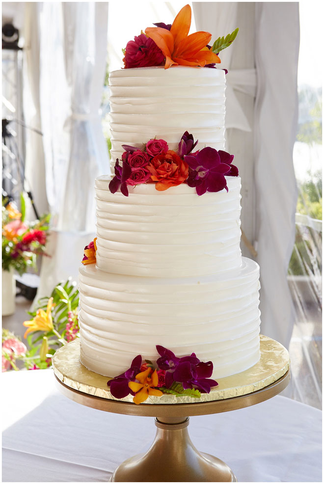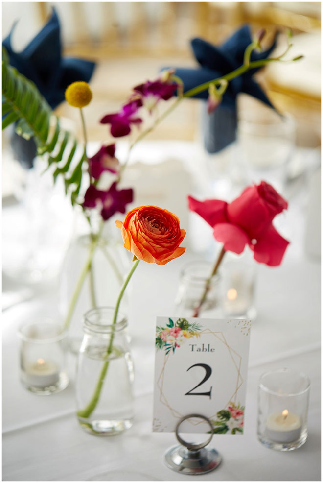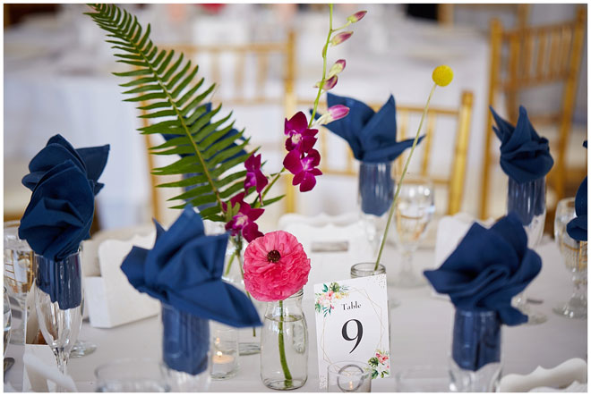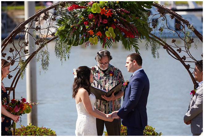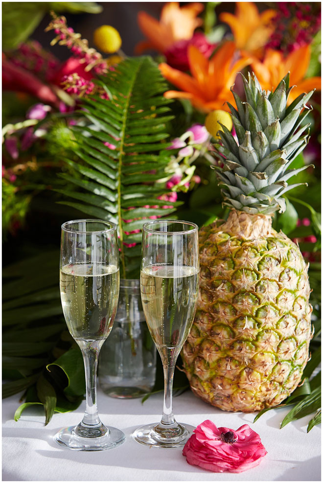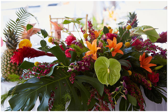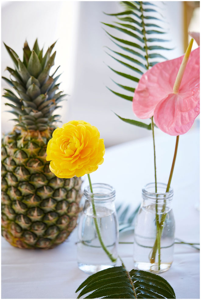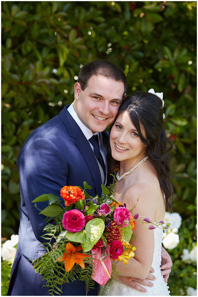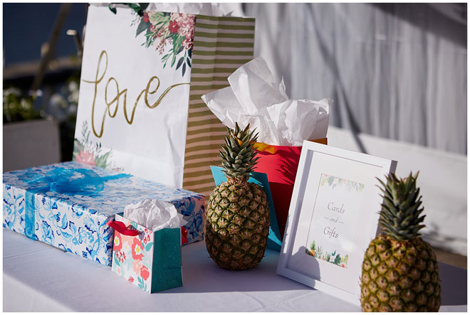 Tell us a little about you and your beloved: Chris and I met at our first job out of college. There was a group of us that all started around the same time who became friends and that’s how we got to know each other. We dated for four and a half years before he proposed to me on Waikiki Beach, one of our favorite vacation spots. I knew that I wanted an outdoor wedding so it was pretty easy to narrow down locations to check out, and being big fans of Hawaii, we made it more of a tropical feel. 364 days later and we tied the knot!