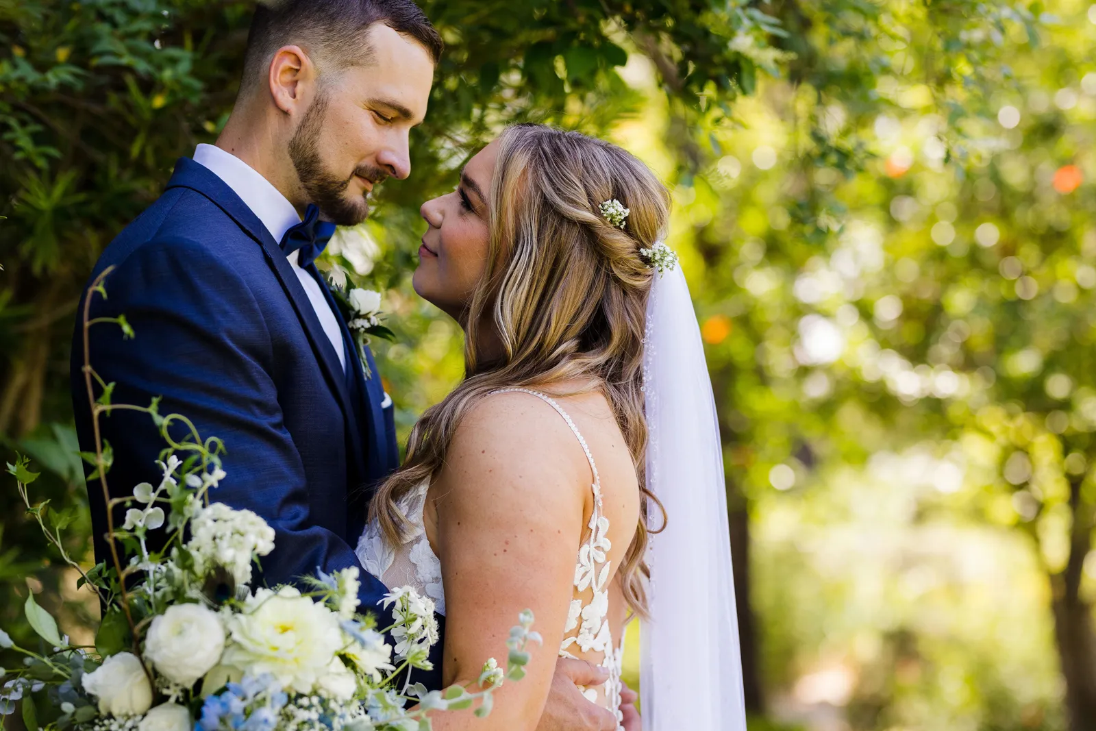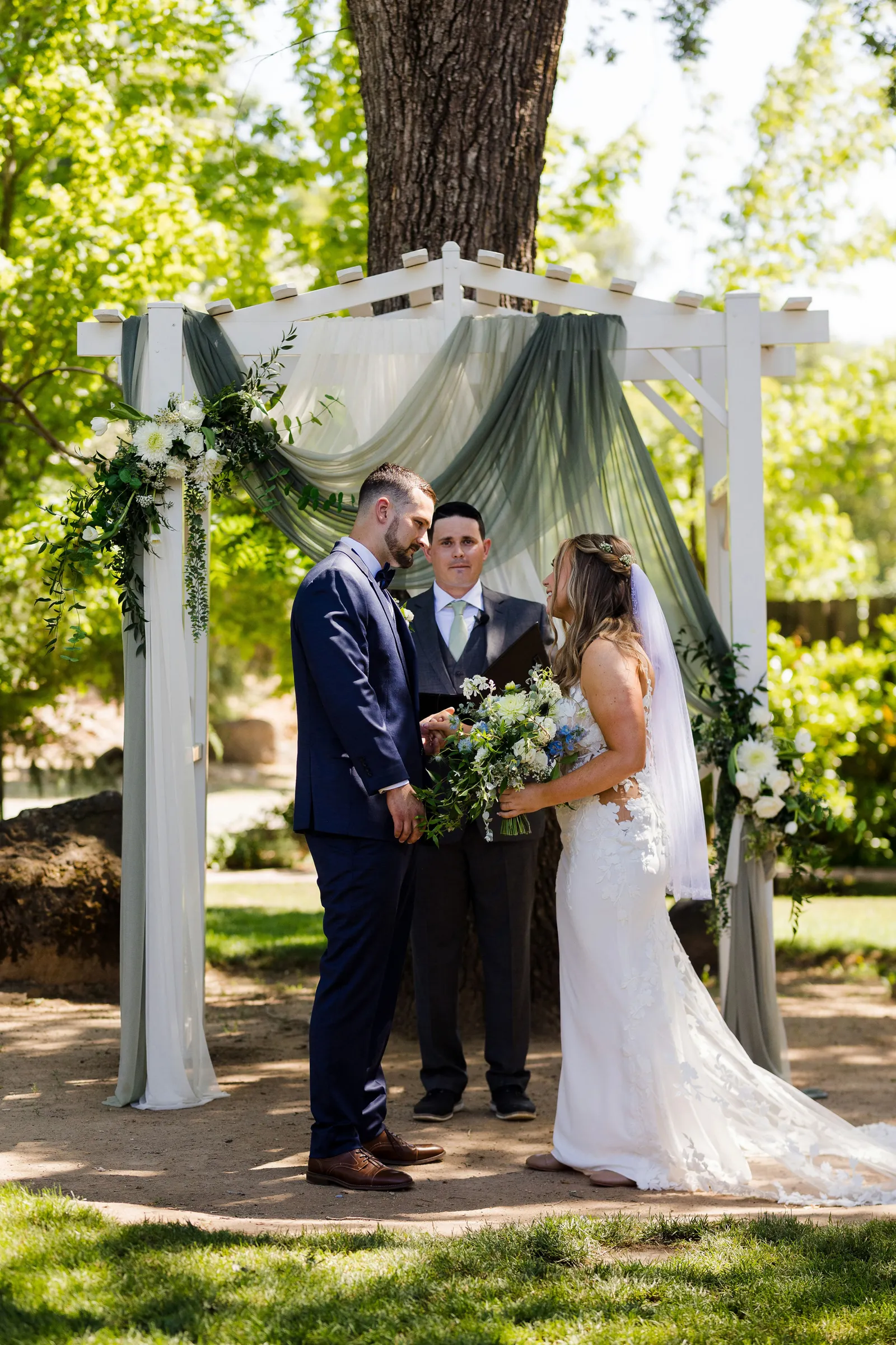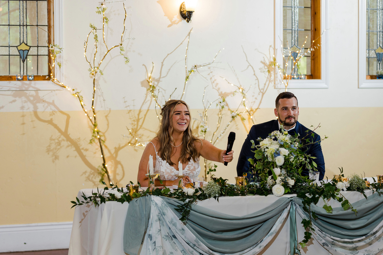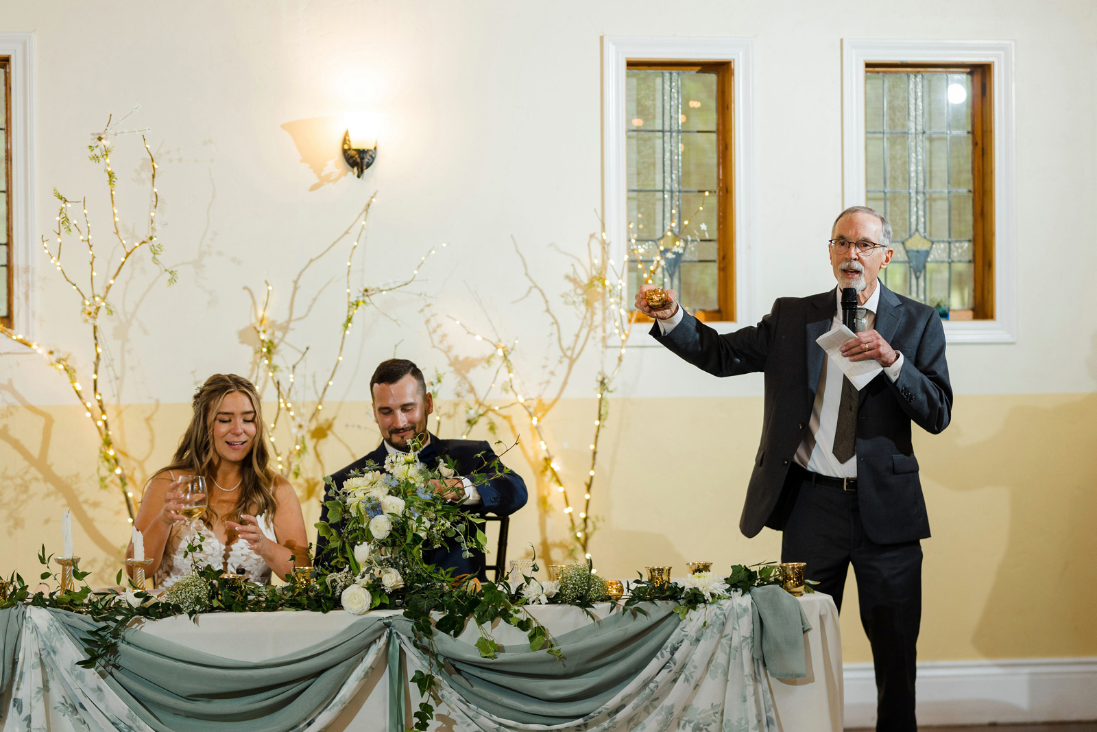 We took our portraits right after the first look (had to touch up my makeup of course) and this allowed us to be able to enjoy cocktail hour with our guests. Also brides, if you are having small details that matter or even big details that matter give the people who are decorating and setting up a binder to “bride-splain” in painful detail. I took images from Amazon of my small details and printed them on paper to show exactly where something goes, when it goes out, how many of the sort, etc… we did not have a bridal party at all, just vendors doing the hard work, and then you don’t have to answer questions while you should be relaxing. Also, have a small clutch at your sweetheart table so you can touch up lipstick, perfume, etc… and drink tons of fluids the week before. Hydration is best overtime — not the day of.