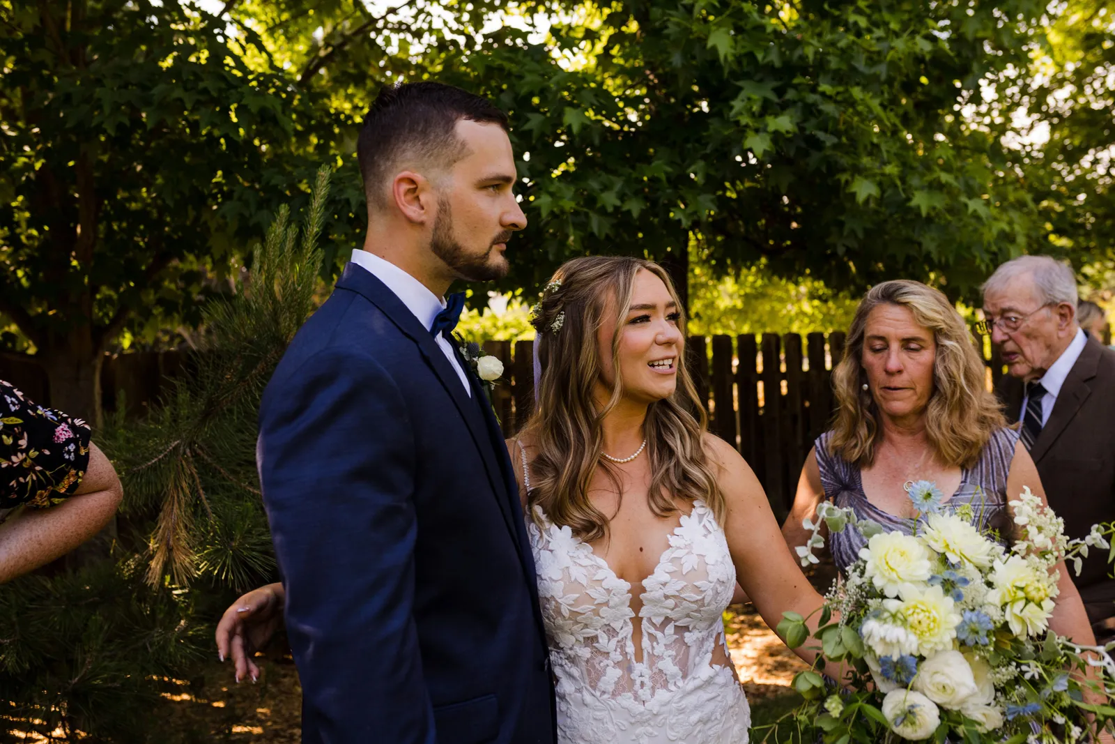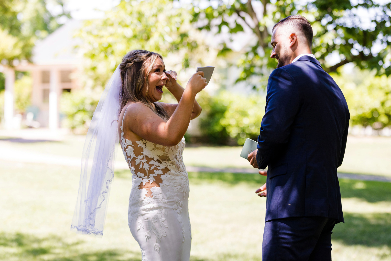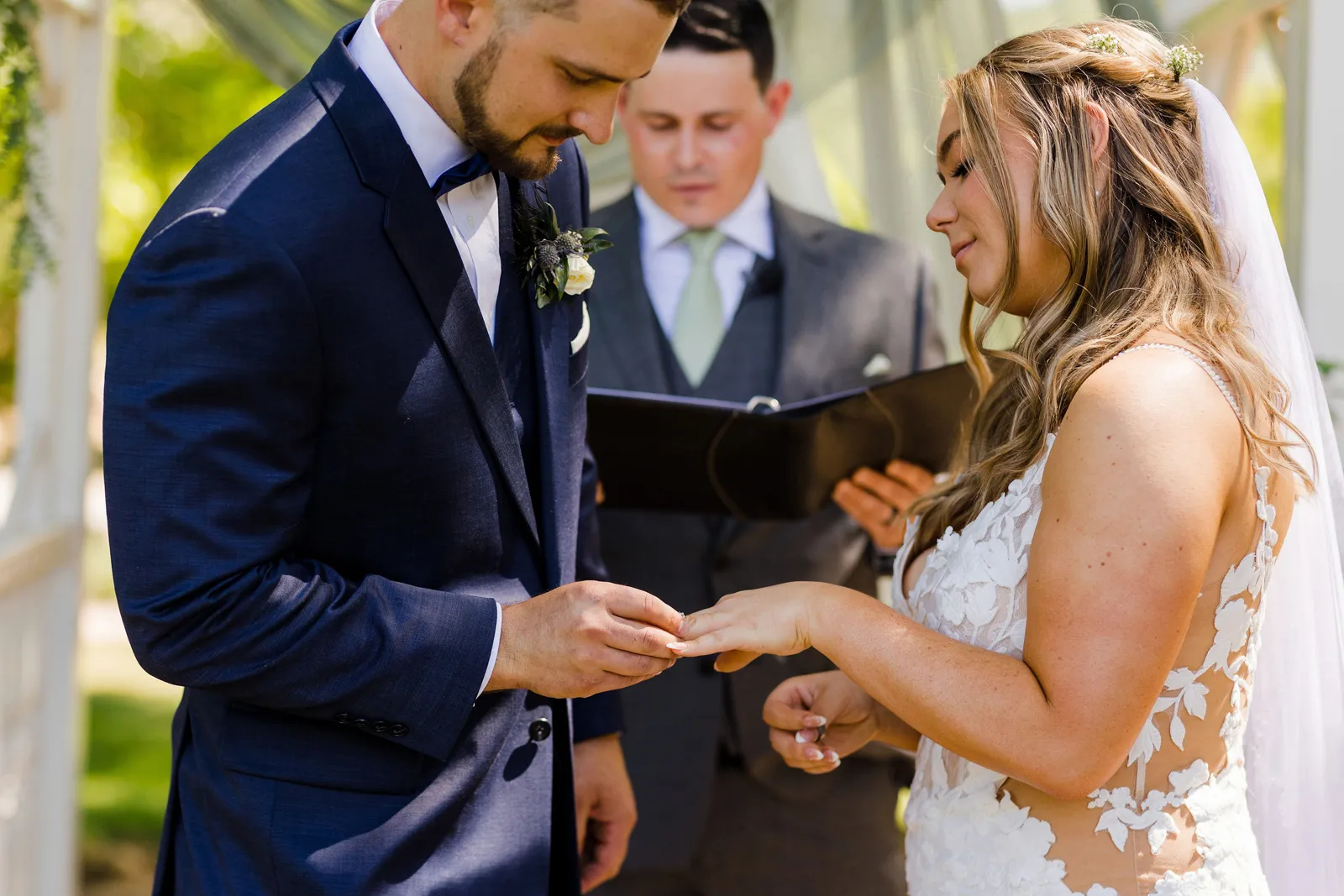 We took our portraits right after the first look (had to touch up my makeup of course) and this allowed us to be able to enjoy cocktail hour with our guests. Also brides, if you are having small details that matter or even big details that matter give the people who are decorating and setting up a binder to “bride-splain” in painful detail. I took images from Amazon of my small details and printed them on paper to show exactly where something goes, when it goes out, how many of the sort, etc… we did not have a bridal party at all, just vendors doing the hard work, and then you don’t have to answer questions while you should be relaxing. Also, have a small clutch at your sweetheart table so you can touch up lipstick, perfume, etc… and drink tons of fluids the week before. Hydration is best overtime — not the day of.