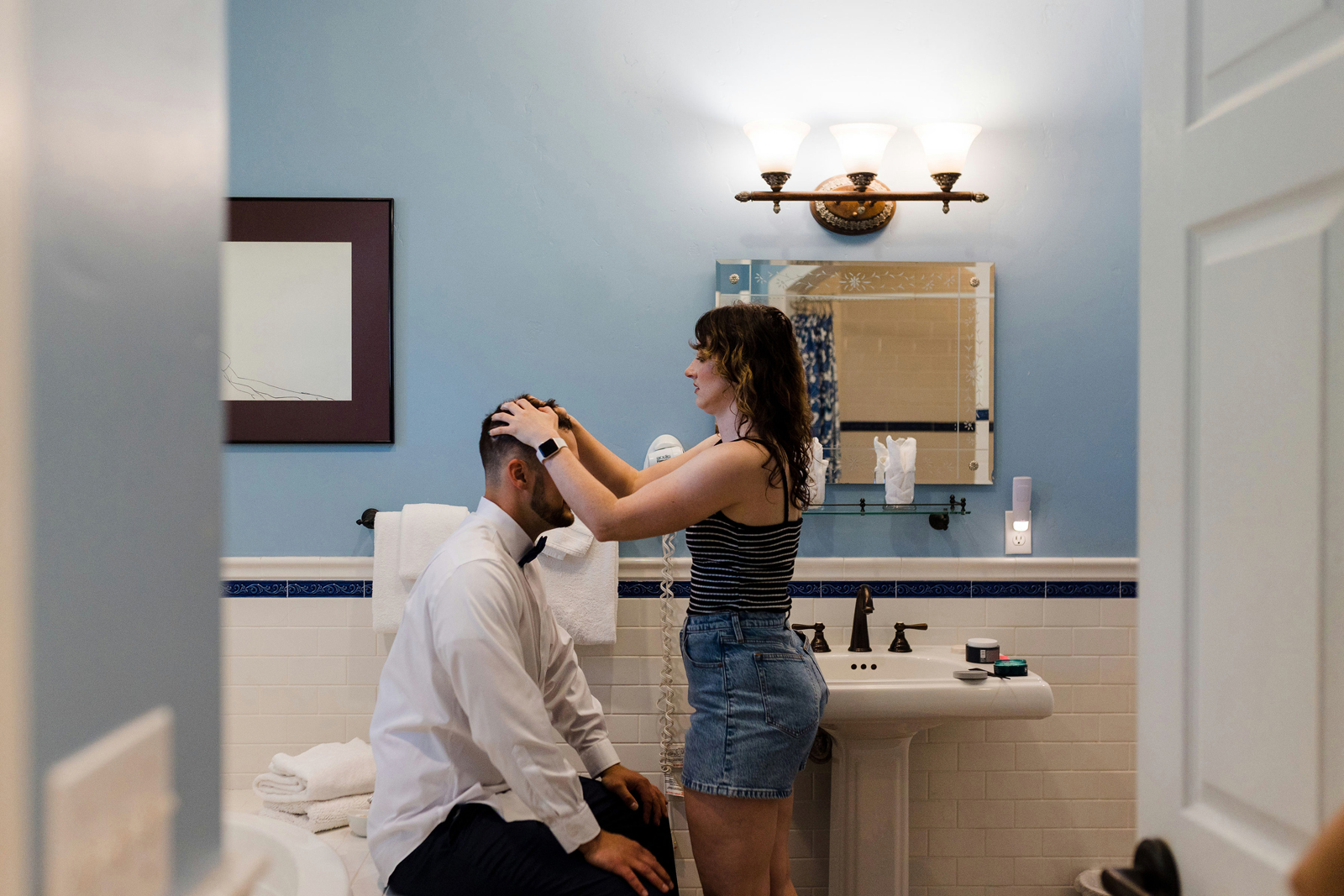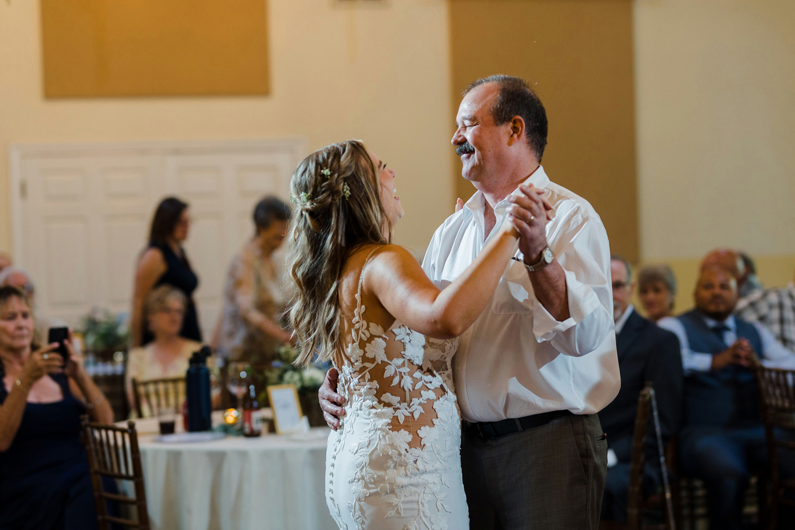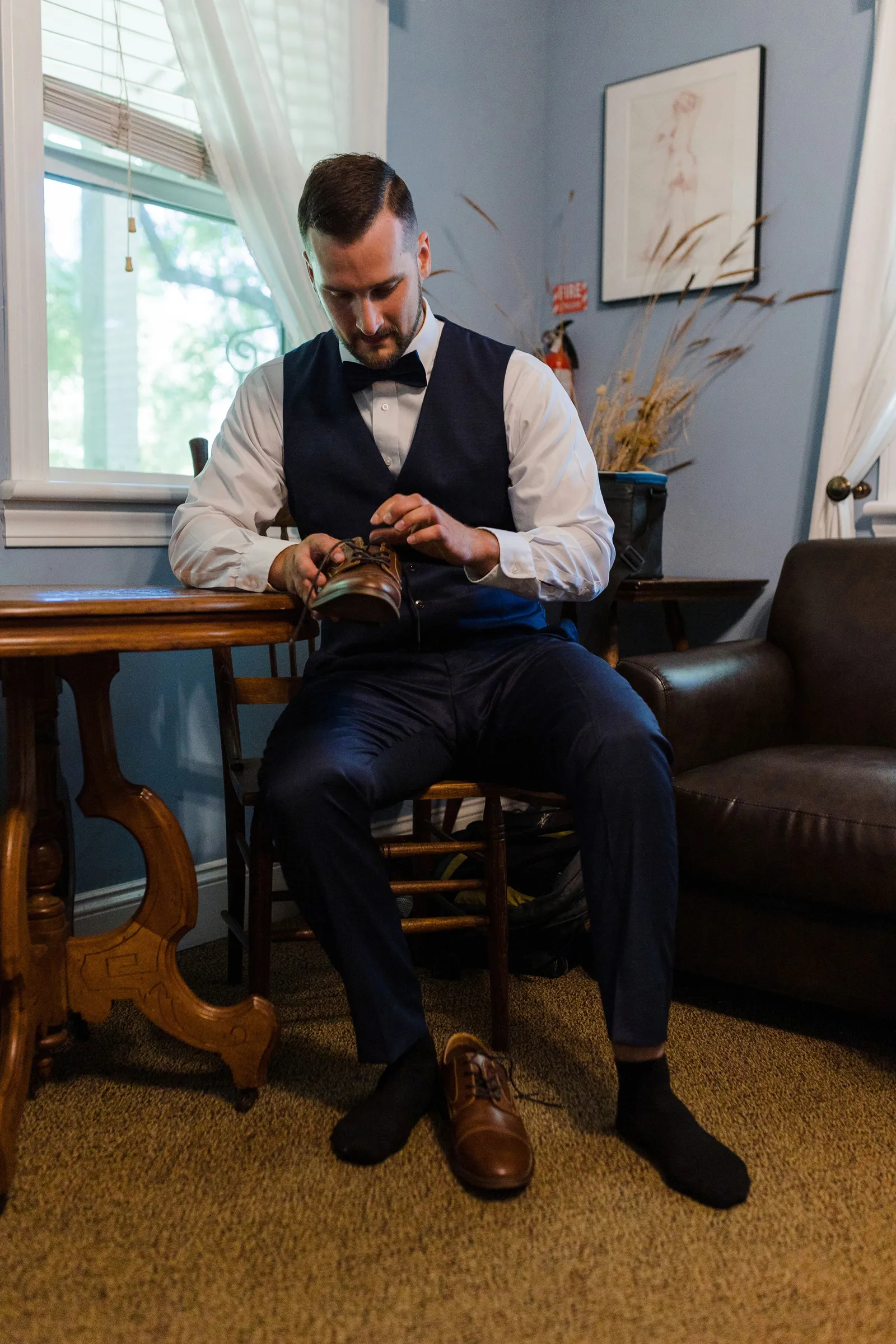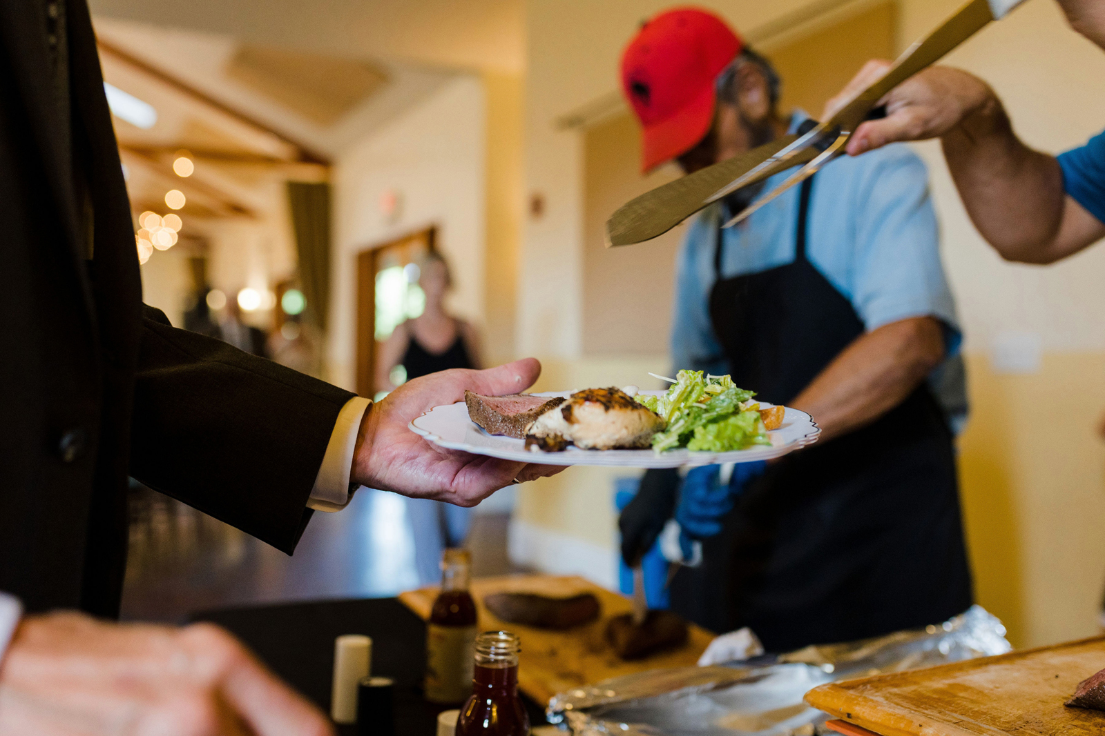 We took our portraits right after the first look (had to touch up my makeup of course) and this allowed us to be able to enjoy cocktail hour with our guests. Also brides, if you are having small details that matter or even big details that matter give the people who are decorating and setting up a binder to “bride-splain” in painful detail. I took images from Amazon of my small details and printed them on paper to show exactly where something goes, when it goes out, how many of the sort, etc… we did not have a bridal party at all, just vendors doing the hard work, and then you don’t have to answer questions while you should be relaxing. Also, have a small clutch at your sweetheart table so you can touch up lipstick, perfume, etc… and drink tons of fluids the week before. Hydration is best overtime — not the day of.