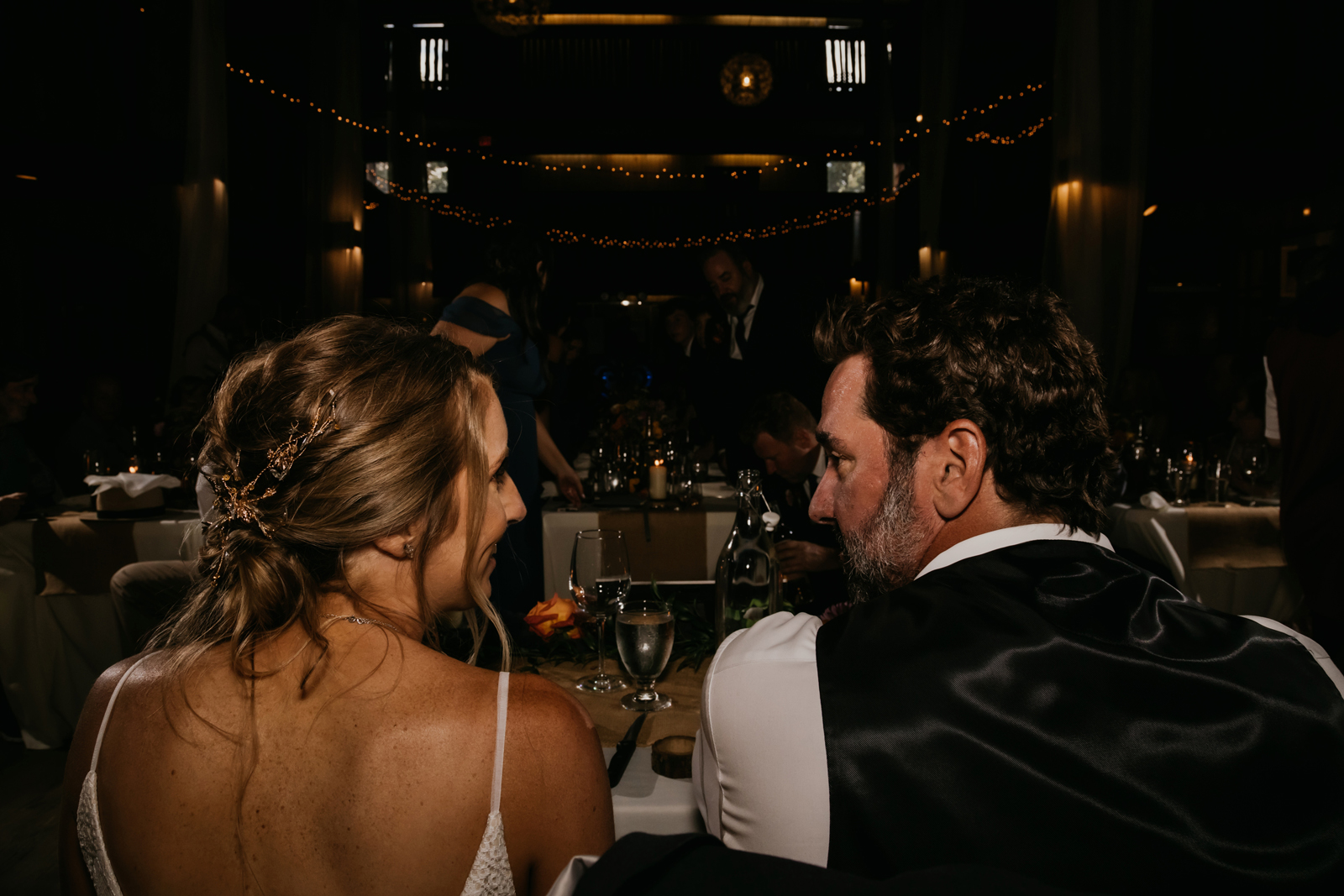 Aside from the breakfast burrito that the Best Man brought me in the Bridal Suite that morning while sipping on mimosas and having hair and makeup done? My husband would say seeing me trembling like a leaf. I’m the strong one, he doesn’t see me so vulnerable and it struck a chord with him. I feel like it was when we were at dinner, and we were seated at the head table. I could look up and over our closest friends and family from all across the country, from all periods of our lives enjoying each other’s company and having a grand time.