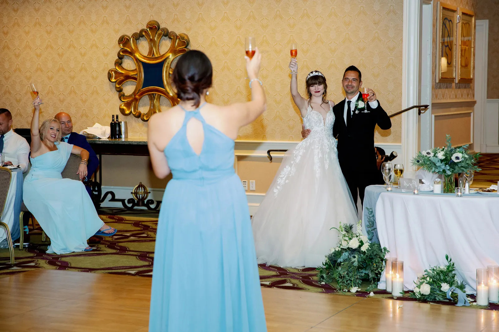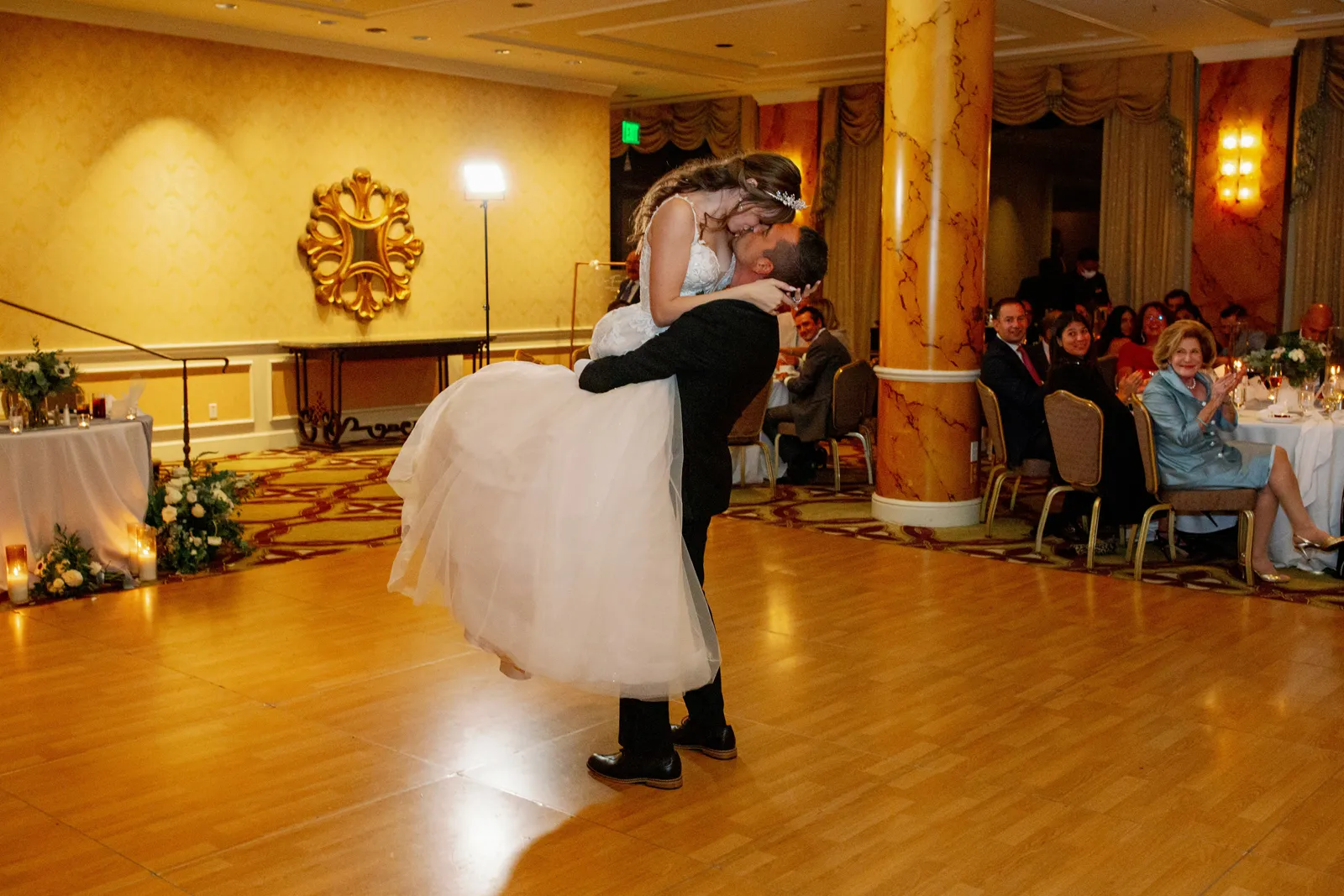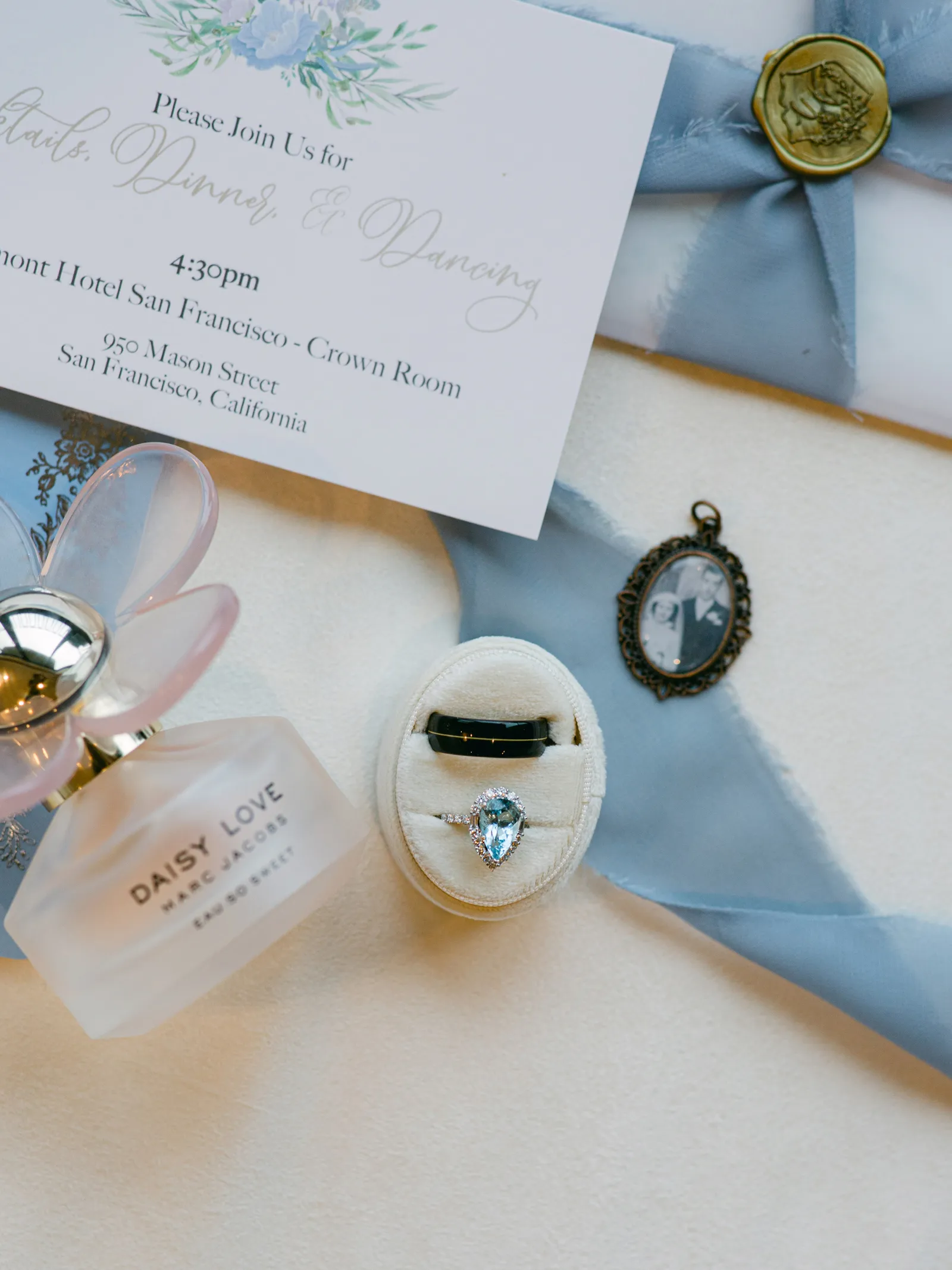 Our wedding day is something that our guests to this day still talk about for one specific reason. For the entirety of our day, San Francisco experienced a massive rain and wind storm that caused the most torrential downpour that no one was expecting! It was recorded as San Francisco’s 4th wettest day in its history. There are plenty of articles about it online. Luckily, both of our venues were indoors so we didn’t have to plan around the storm. The fact that it wasn’t raining the day prior and was perfectly sunny the day after made it that much more unbelievable. But that made it so much more special to us. If they say having rain on your wedding day is good luck, then we have all the luck in the world since we got a whole storm! Our wedding was completely full of intentional [and] sentimental details as well. My groom wore a photo charm on his boutonniere of his late father, and I wore a photo charm of my late great grandparents around my bouquet. I wore my late great-grandma’s peignoir as my getting ready outfit, my two little brothers were my Men of Honor, I had my dad walk me halfway down the aisle where then my mom joined us and they both got to walk me the rest of the way down. My groom’s wonderful mother gave a beautiful speech at the reception, and I surprised my mom with a mother-daughter dance after my father-daughter dance.
