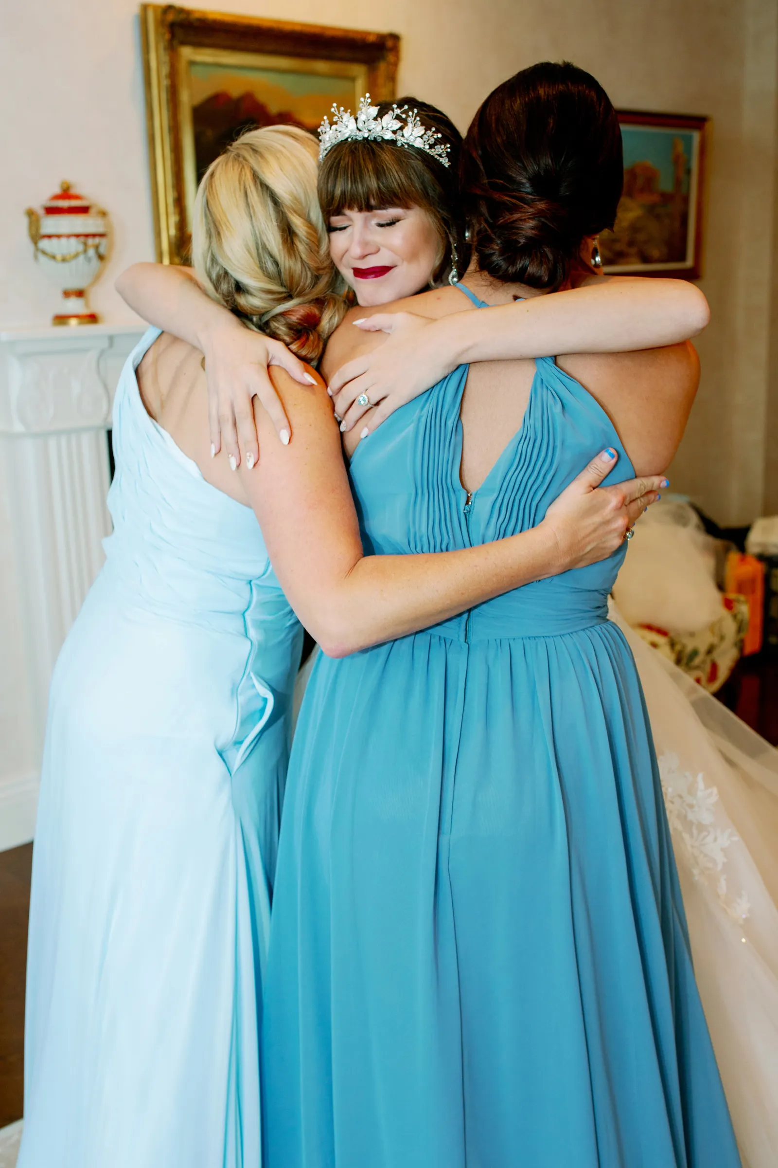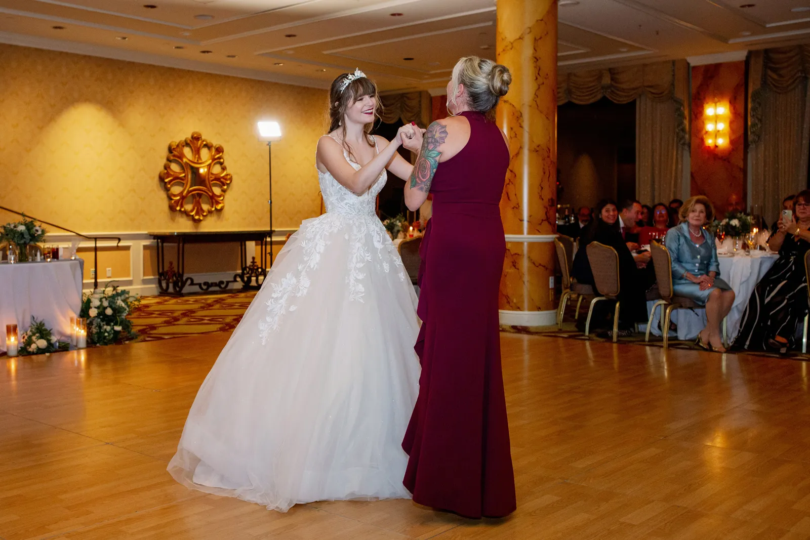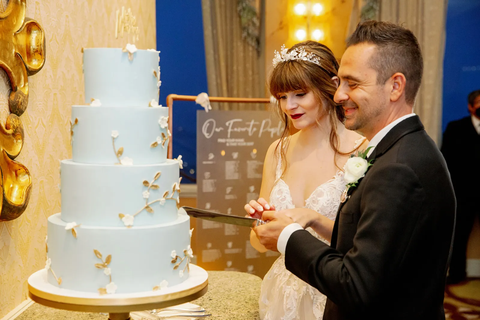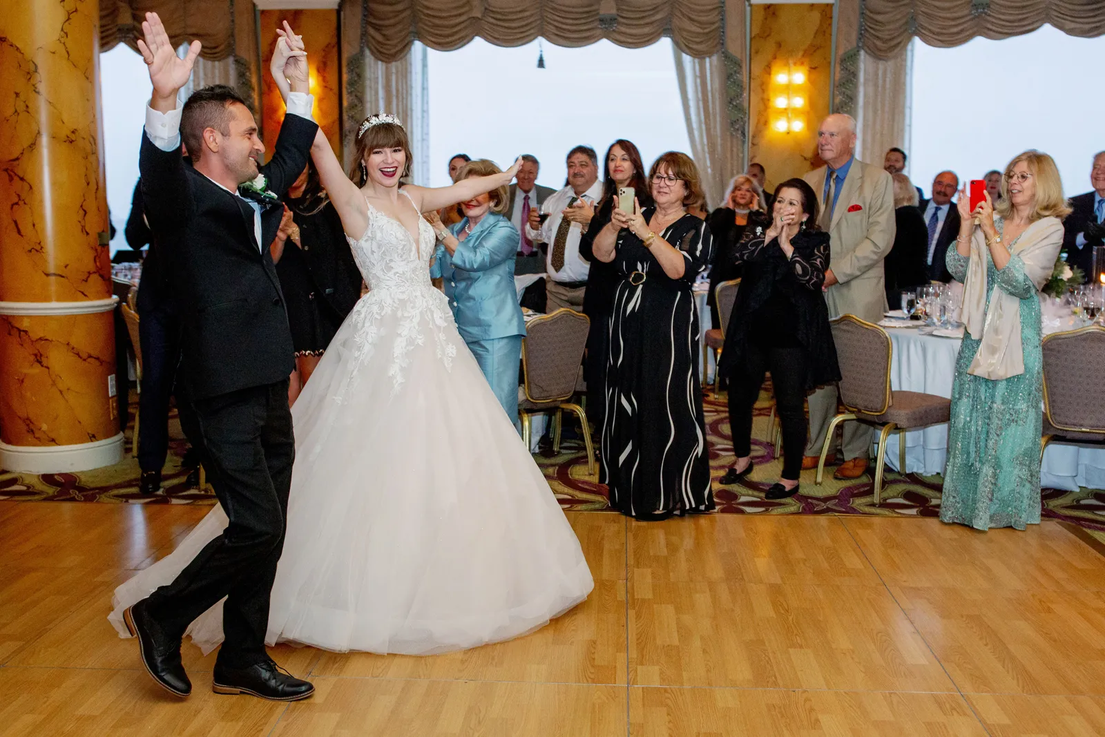 Our wedding day is something that our guests to this day still talk about for one specific reason. For the entirety of our day, San Francisco experienced a massive rain and wind storm that caused the most torrential downpour that no one was expecting! It was recorded as San Francisco’s 4th wettest day in its history. There are plenty of articles about it online. Luckily, both of our venues were indoors so we didn’t have to plan around the storm. The fact that it wasn’t raining the day prior and was perfectly sunny the day after made it that much more unbelievable. But that made it so much more special to us. If they say having rain on your wedding day is good luck, then we have all the luck in the world since we got a whole storm! Our wedding was completely full of intentional [and] sentimental details as well. My groom wore a photo charm on his boutonniere of his late father, and I wore a photo charm of my late great grandparents around my bouquet. I wore my late great-grandma’s peignoir as my getting ready outfit, my two little brothers were my Men of Honor, I had my dad walk me halfway down the aisle where then my mom joined us and they both got to walk me the rest of the way down. My groom’s wonderful mother gave a beautiful speech at the reception, and I surprised my mom with a mother-daughter dance after my father-daughter dance.