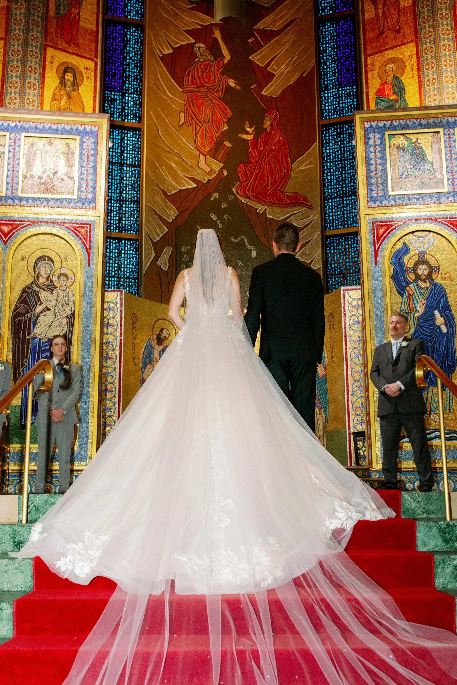 It’s Real Weddings Wednesdays everyone! From beautiful, stained glass windows to the bride’s romantic, open-back wedding gown from De La Rosa’s Bridal & Tuxedos, this wedding is sure to inspire you in more ways than one. So grab your reading glasses, take a break from planning, and tune in for Taylor + Chris’s jaw dropping, one-of-a-kind Cathedral wedding in San Fransisco!