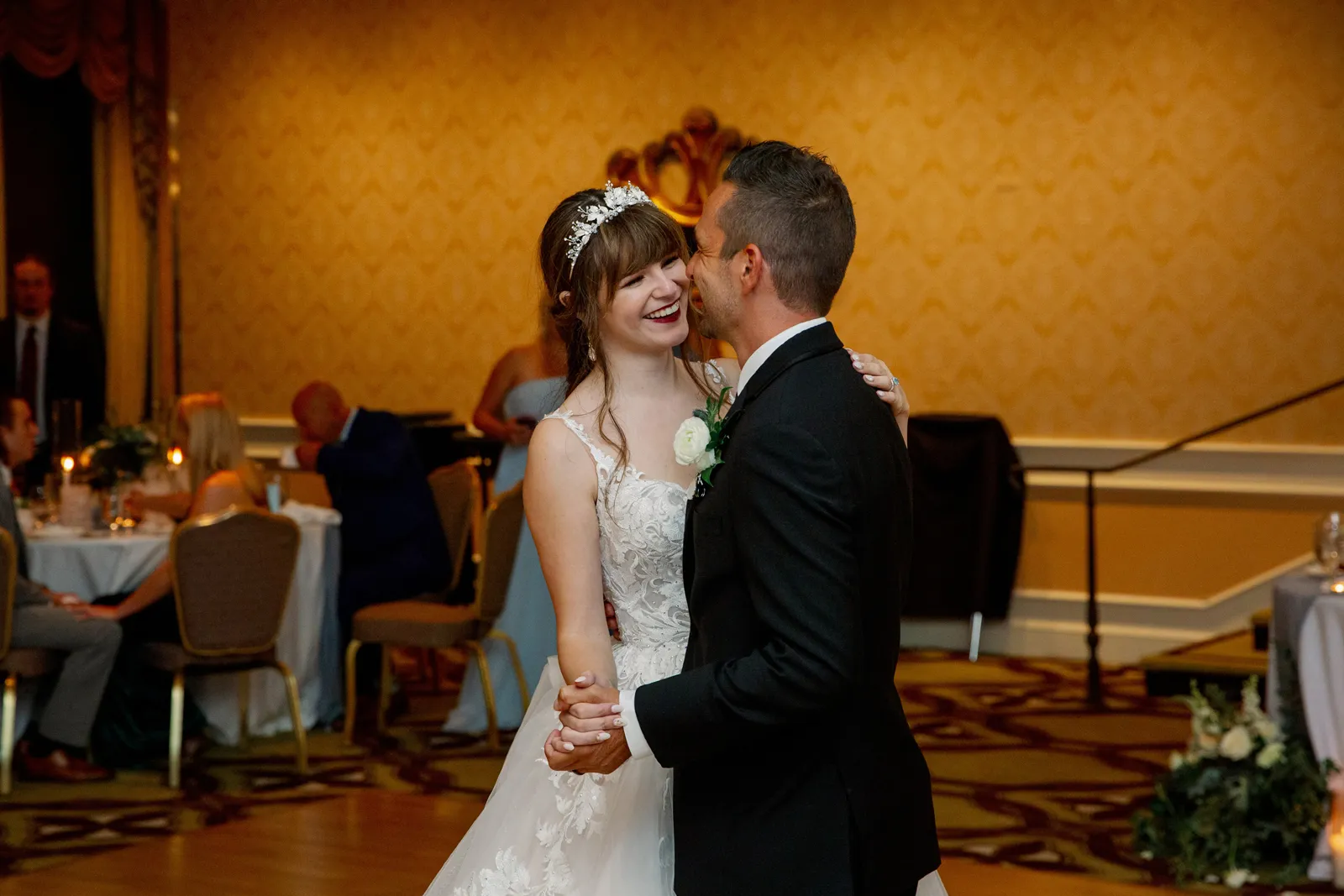 The whole day was an absolute dream come true. We both agree that seeing each other for the first time as I walked down the aisle with my parents was indescribable. We both cried! We had decided on doing a first touch instead of a first look where we read our vows to each other privately before the ceremony. Having that intimate moment between us helped calm our nerves and feel more connected on our big day. Our first dance was complete magic but the last dance we shared at the very end of the night was one of the most amazing, memorable moments of the whole day. After all our guests had left, we arranged for a private final dance for the last song of the night. We chose the song “Can’t Help Falling in Love” by Elvis since it was “our song” throughout the course of our relationship. That special moment and the feelings we felt will live in our hearts forever.
