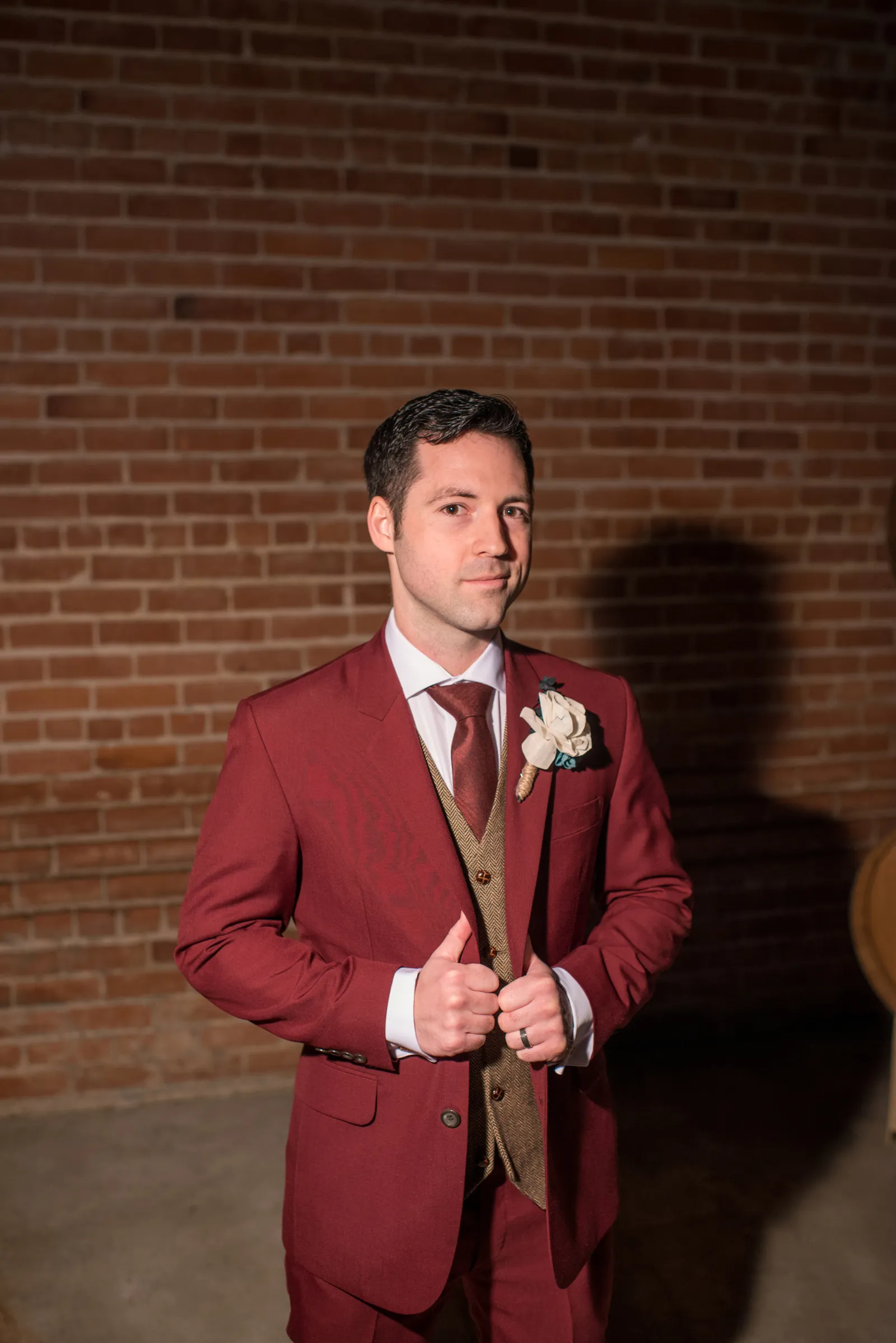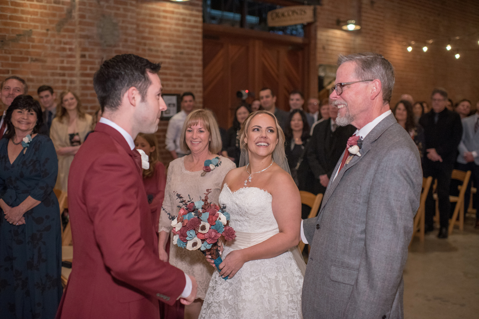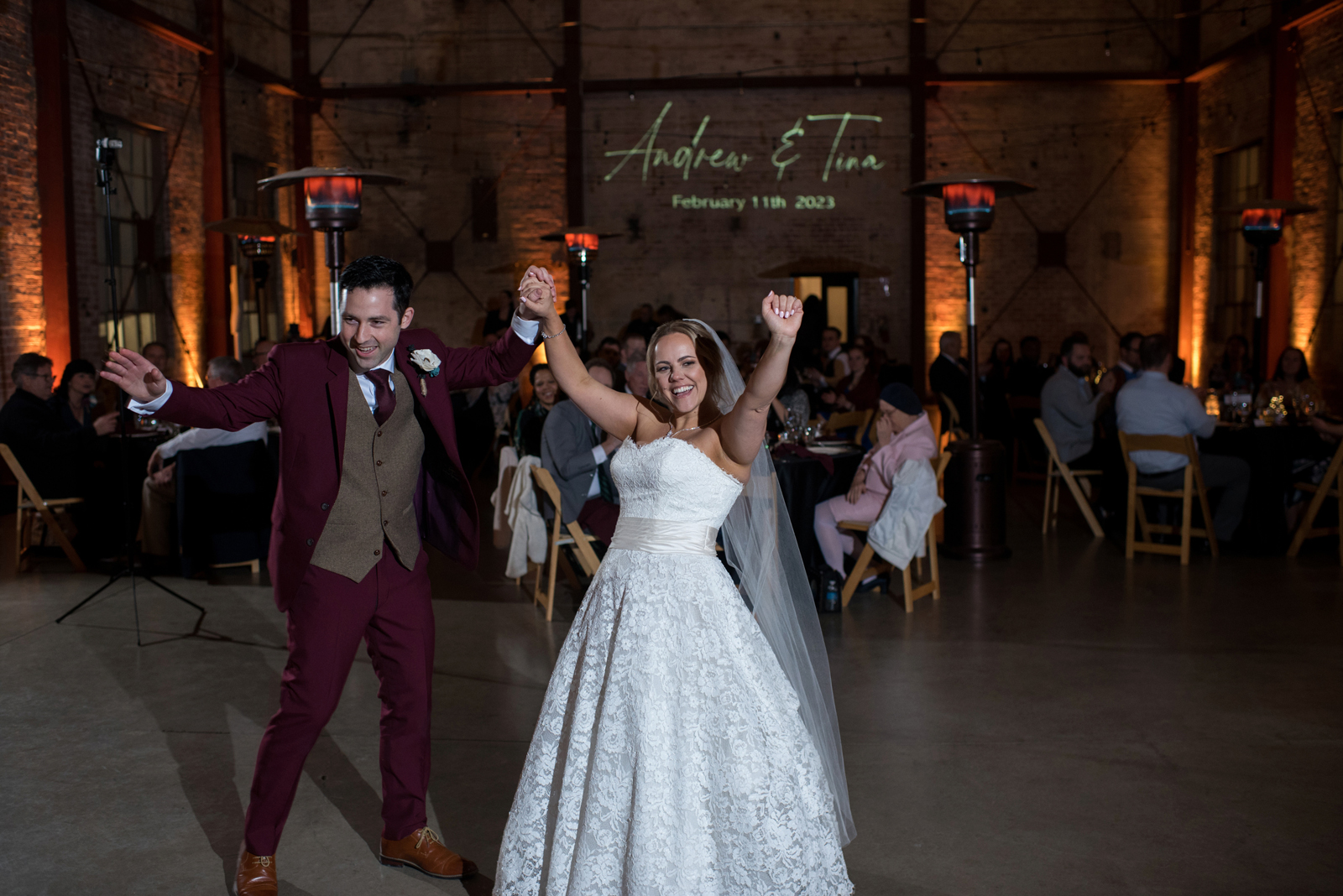 We met while we were living in Alexandria, VA. On our first date, we ended up walking around beautiful Old Town Alexandria until the early hours of the morning because we were having such a good time talking and getting to know each other. We moved out to the West Coast about two years ago, then in March of 2022, Andrew said he wanted to do an escape room to decompress from work. We love doing escape rooms together and there was a place we hadn’t visited yet near our house. What I didn’t know was that Andrew had been working with the staff there for months to plan an amazing proposal at the end of one of their rooms. I should have picked up on the fact that he seemed to know the answer every time we got stuck on a clue. I was completely surprised when the last puzzle opened to a riddle about a ring, and he got down on one knee. From there it was a whirlwind with less than a year until our February wedding. (We just couldn’t wait!) Planning the wedding was a great experience, even with the occasional and lofty hurdles that can be thrown at you. We coordinated early on for the vision and combined our two styles into a wedding that felt truly representative of us as a couple.
