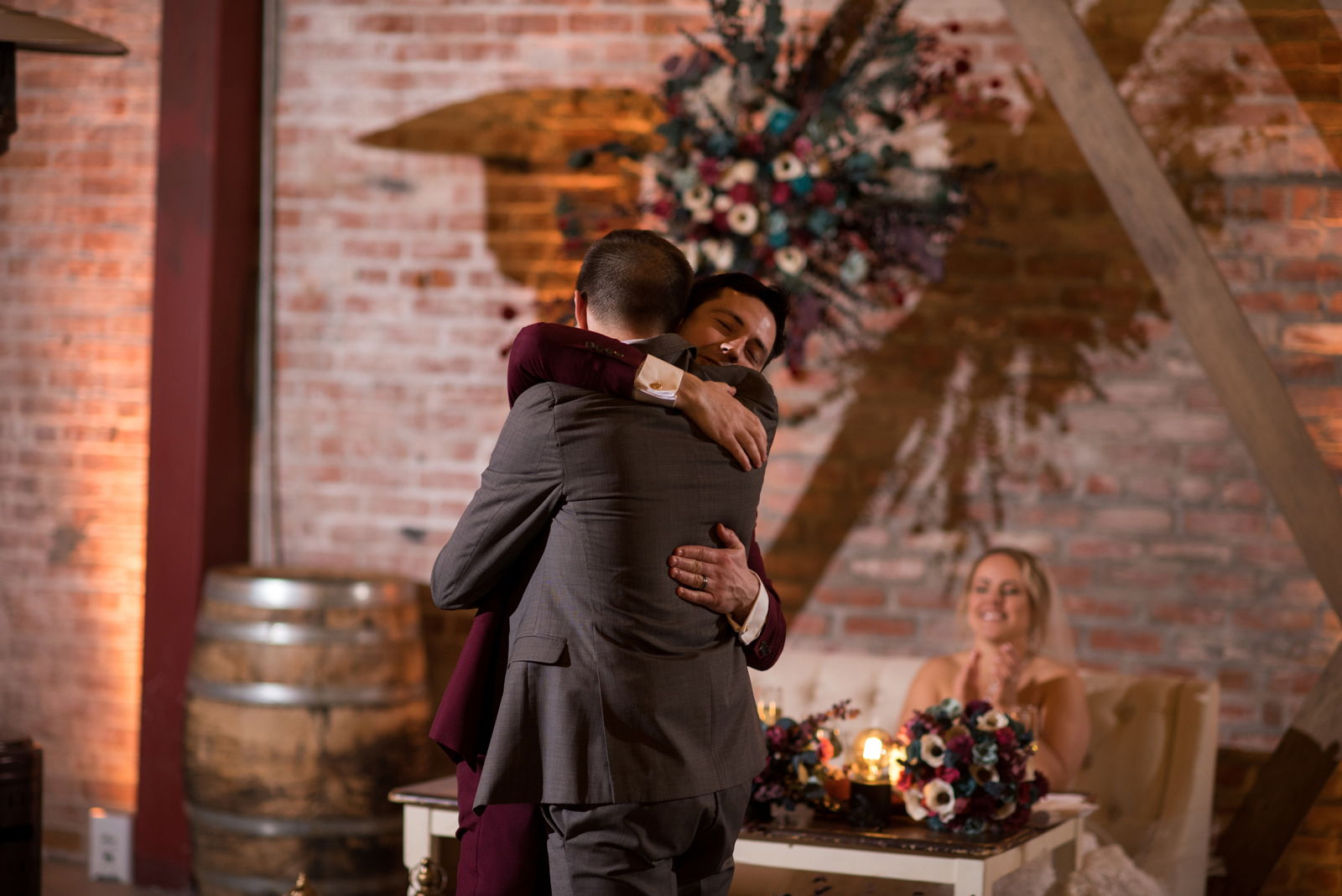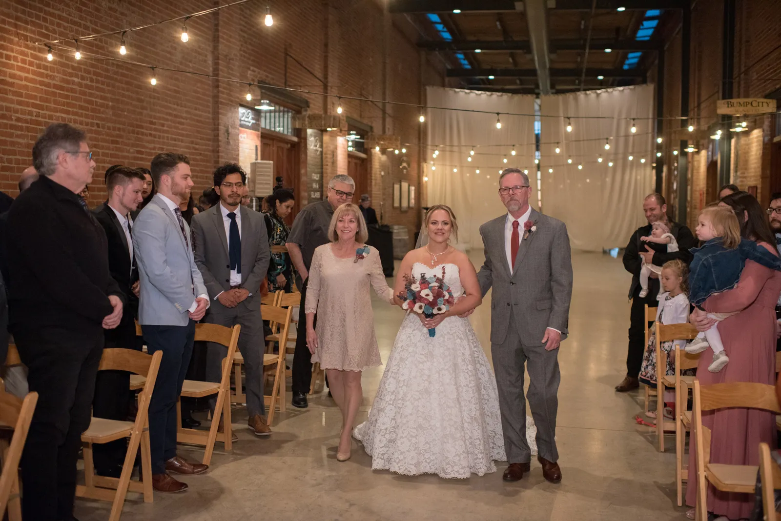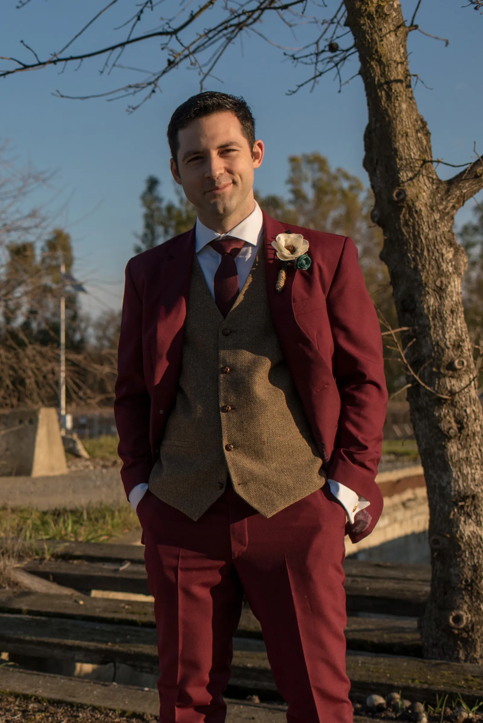 We met while we were living in Alexandria, VA. On our first date, we ended up walking around beautiful Old Town Alexandria until the early hours of the morning because we were having such a good time talking and getting to know each other. We moved out to the West Coast about two years ago, then in March of 2022, Andrew said he wanted to do an escape room to decompress from work. We love doing escape rooms together and there was a place we hadn’t visited yet near our house. What I didn’t know was that Andrew had been working with the staff there for months to plan an amazing proposal at the end of one of their rooms. I should have picked up on the fact that he seemed to know the answer every time we got stuck on a clue. I was completely surprised when the last puzzle opened to a riddle about a ring, and he got down on one knee. From there it was a whirlwind with less than a year until our February wedding. (We just couldn’t wait!) Planning the wedding was a great experience, even with the occasional and lofty hurdles that can be thrown at you. We coordinated early on for the vision and combined our two styles into a wedding that felt truly representative of us as a couple.