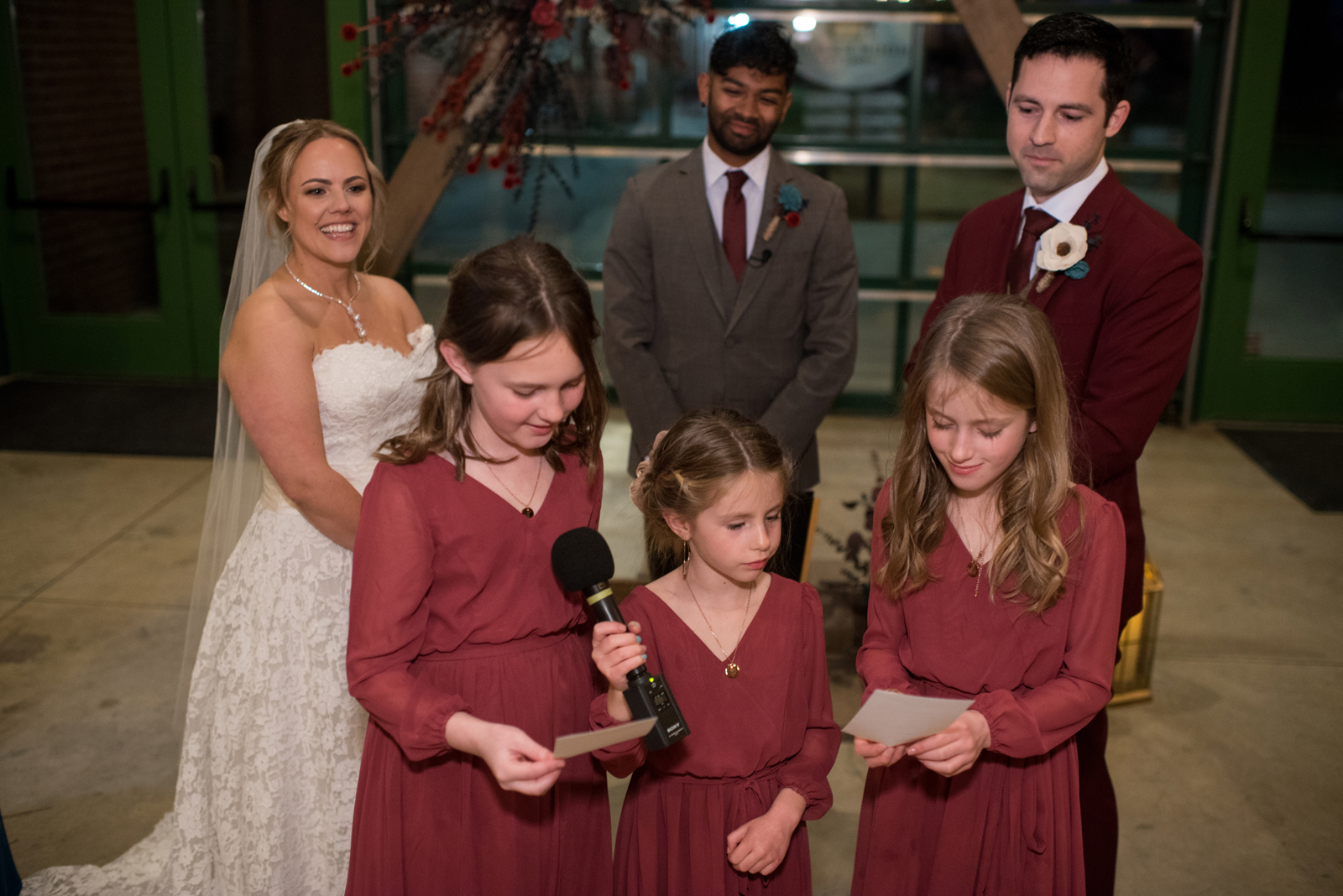 Andrew: With all the dancing and fun at the reception, I still think my favorite part of the whole day was the ceremony. Being up there was such an incredible moment that somehow managed to be both powerful and intense, yet fun and playful. Having our family and friends there while we said our vows, with the occasional adorable interruption from the under-5 crowd, made coming together as one an unforgettable moment.