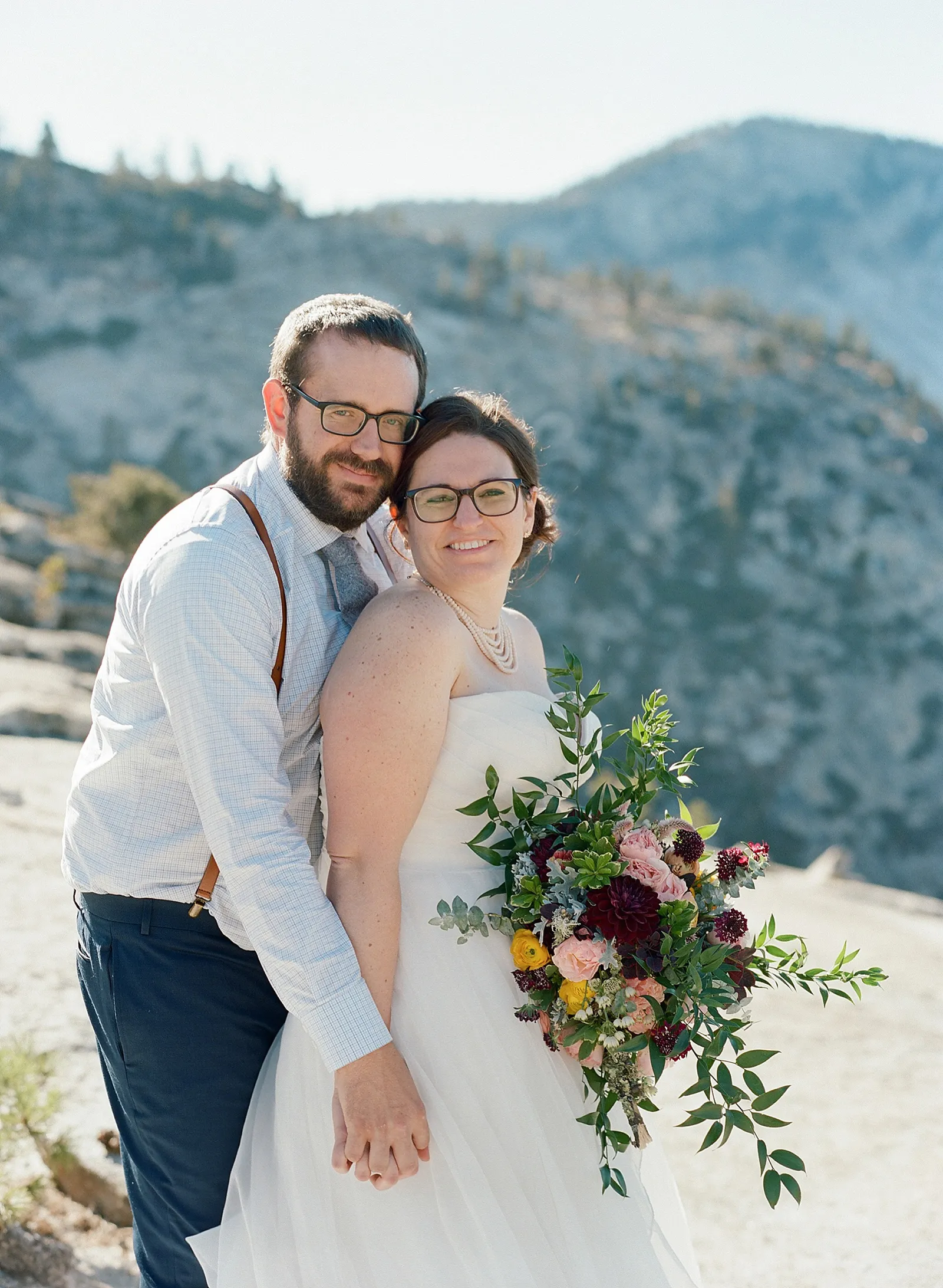 In my prior life, I was a wedding photographer for over 15 years and was published in Real Weddings Magazine a number of times over the years. Having shot more than 500 beautiful weddings myself I was very firm about what I wanted, but also that I wanted to elope. Given the pandemic, and our mutual desire to protect our families from COVID, we planned a wedding guest list of eight people, all of whom would be asked to be tested for COVID, and isolate prior to traveling. Yosemite National Park was our first trip together as a couple while I was training for the Chicago Marathon, as well as a special place from childhood. After a lot of google map exploring, we decided to apply for a permit to have the ceremony at Olmstead Point, a scenic overlook in the high country, and a brunch reception at Tenaya Lake, about five minutes away.