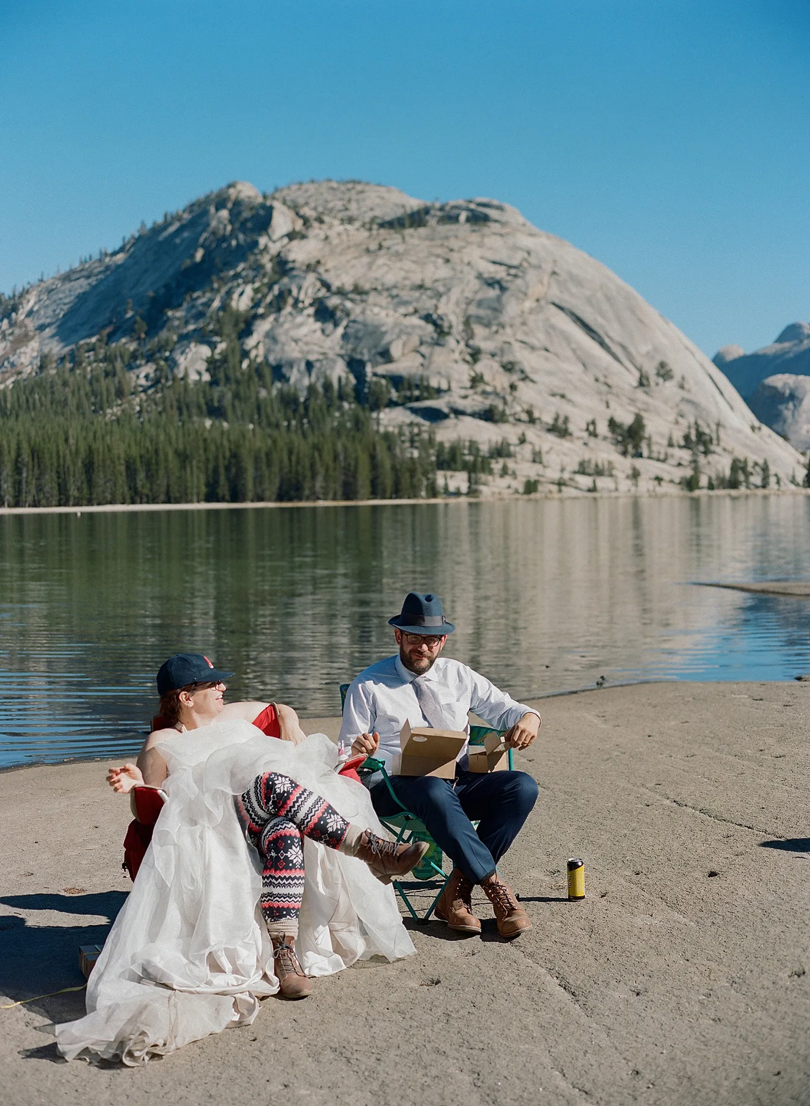 The wedding was incredibly complicated because of COVID testing, entrance restrictions into Yosemite (each person needed reservations or a day use permit to enter), and doing all of our own catering. Catering in the park was closed at the time, and we had to transport our own food in. We spent a significant amount of time packing things on ice, locking food away in bear boxes, and ultimately grilling our rehearsal dinner food on the trunk of our car.