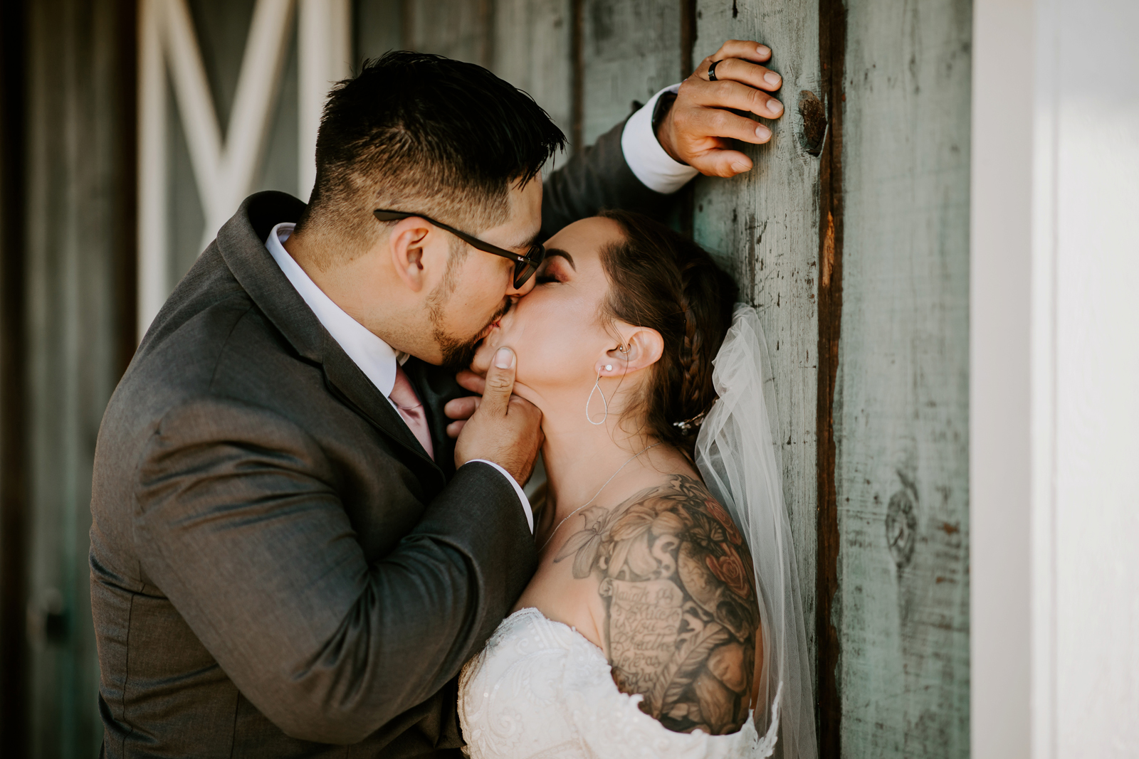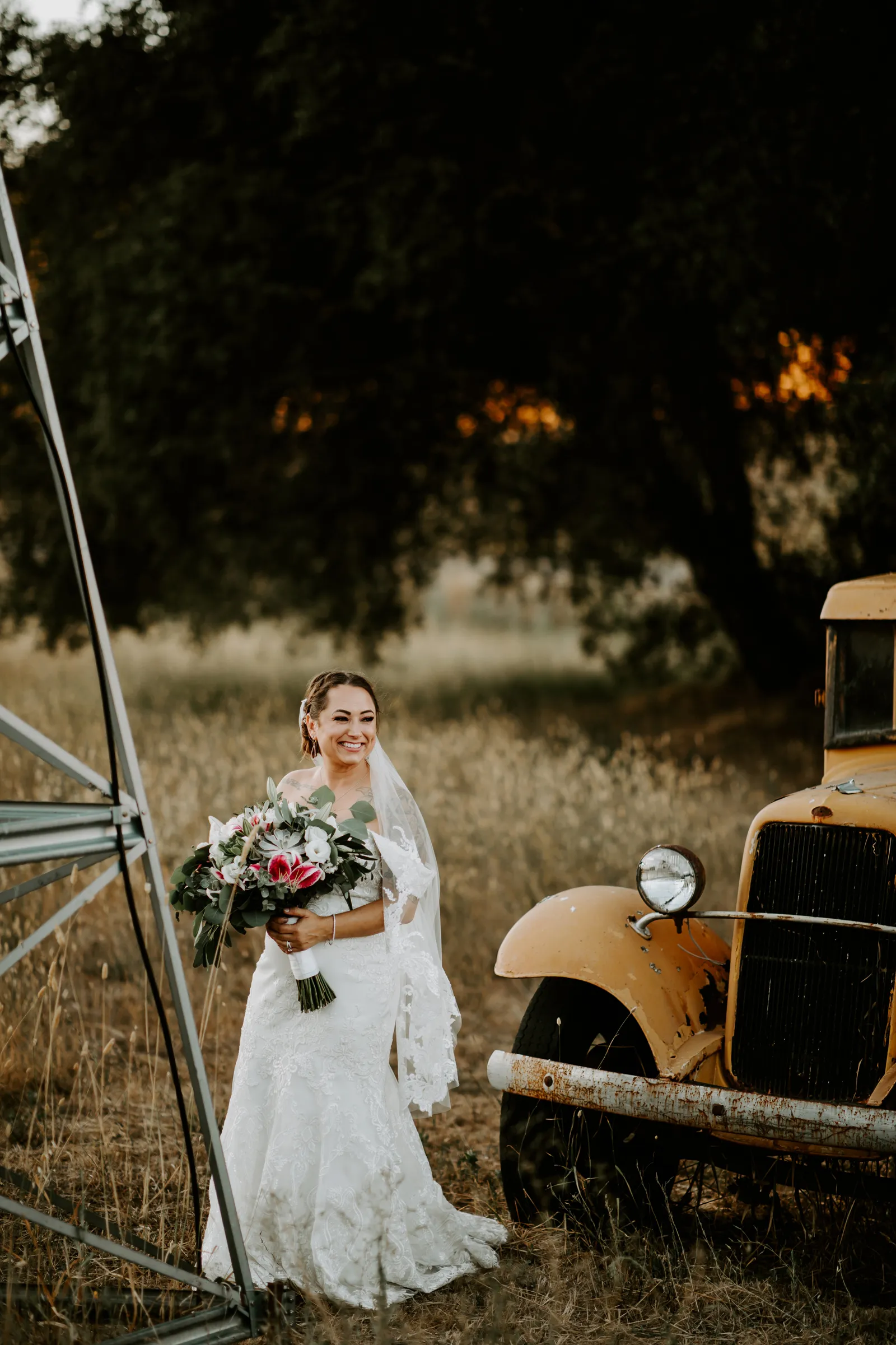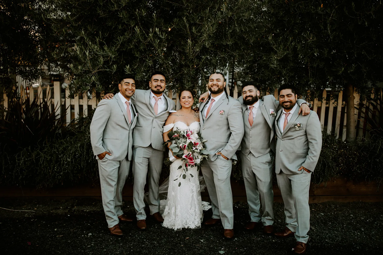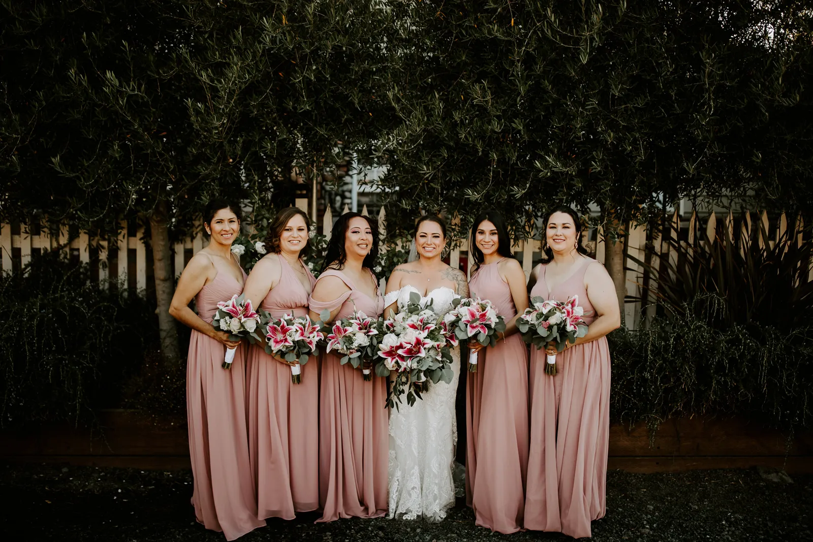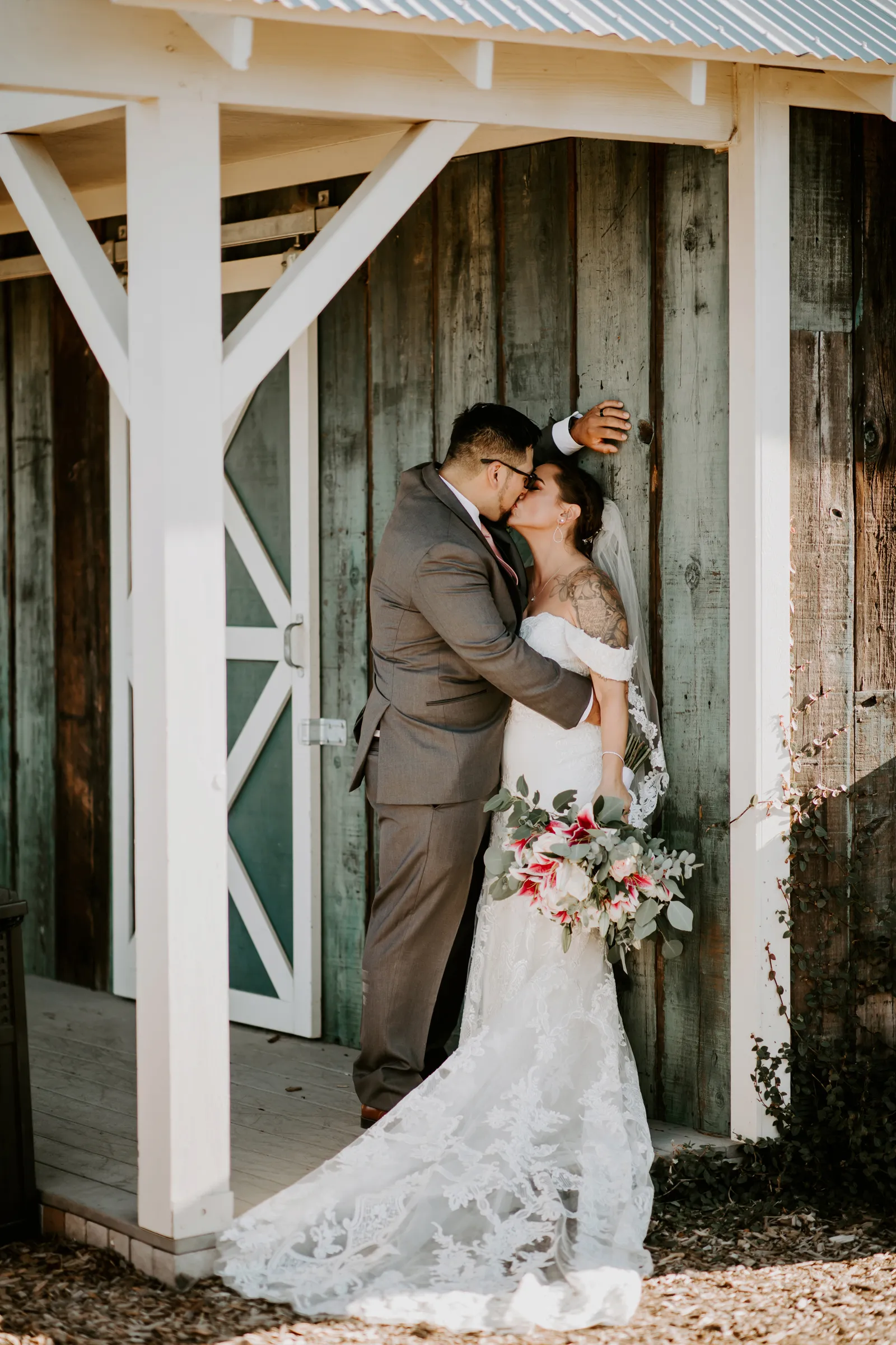 Happy Real Weddings Wednesdays, everyone. Today, we’re celebrating Leslie + Rudy’s beautiful Mountain House Estate wedding, complete with beautiful sunset photos, a stunning rose-petal wedding cake, and more. Keep scrolling to read more about the couple, and to see more amazing photos!