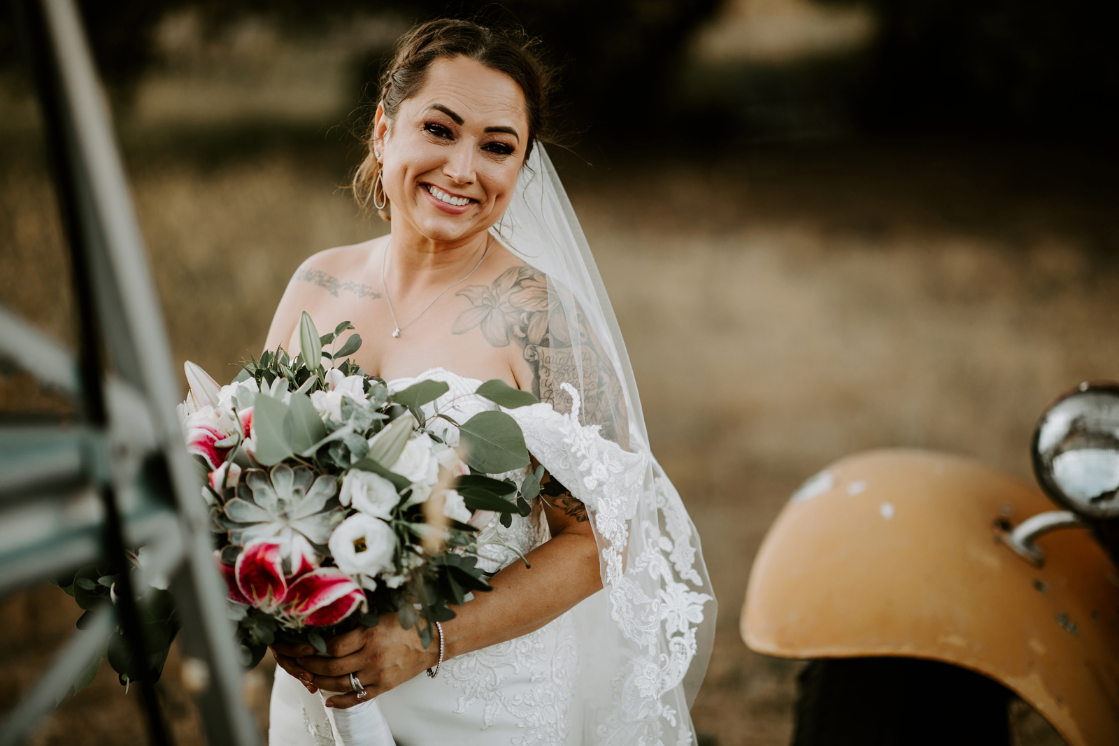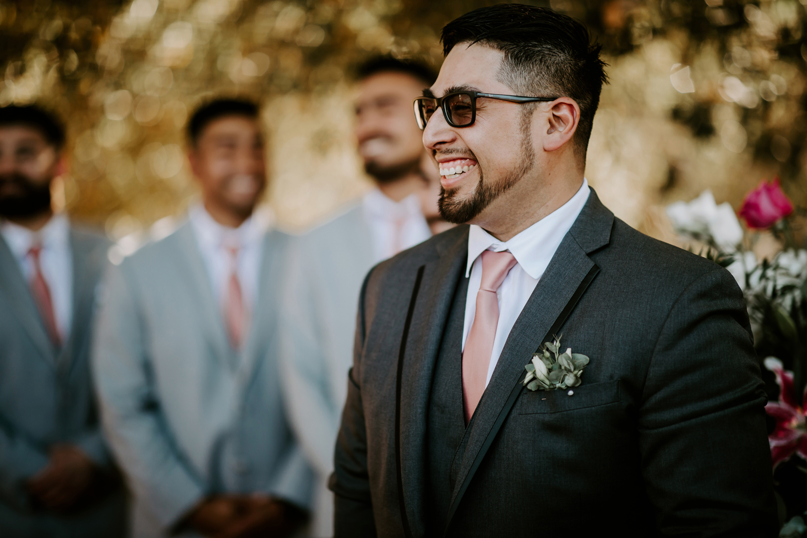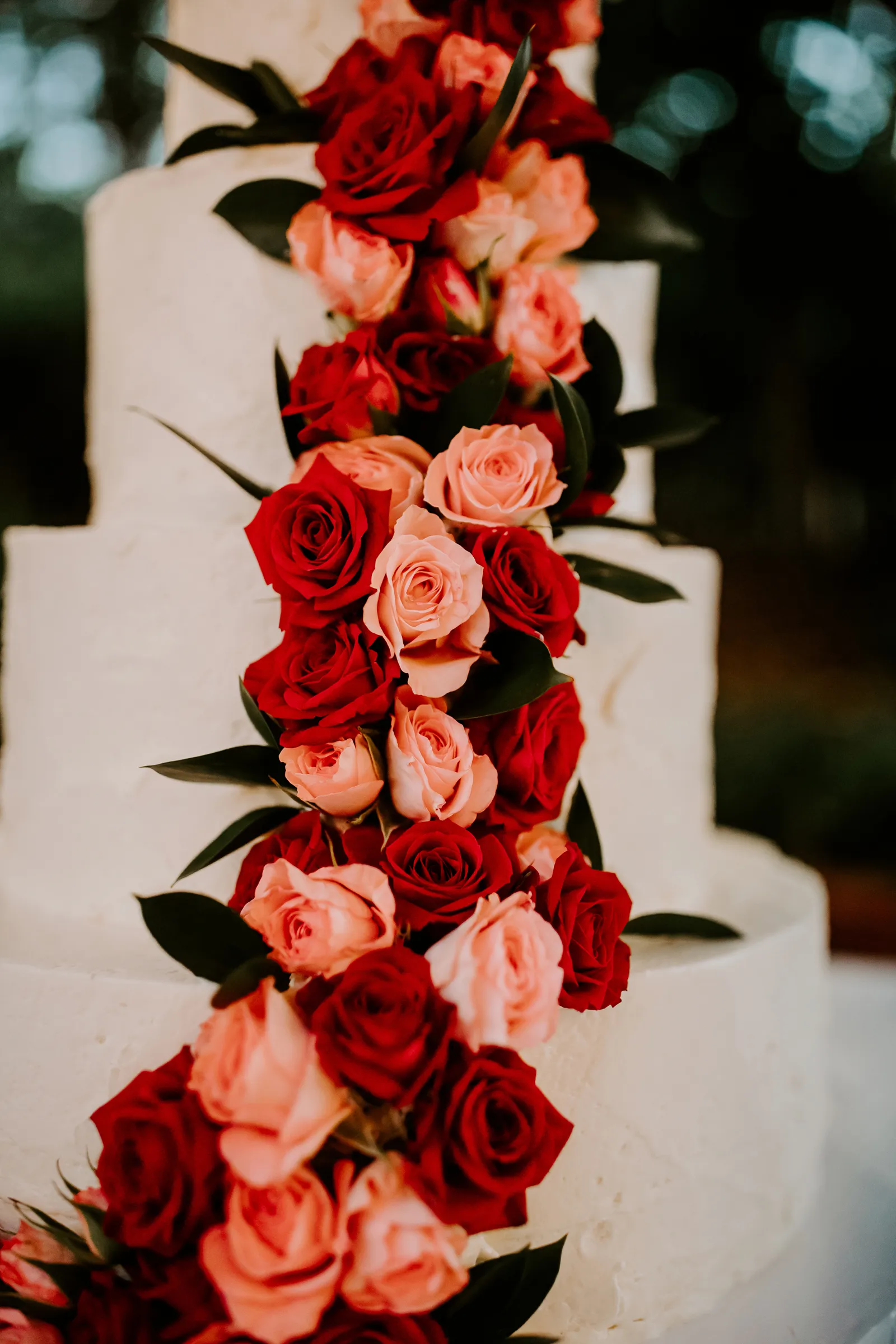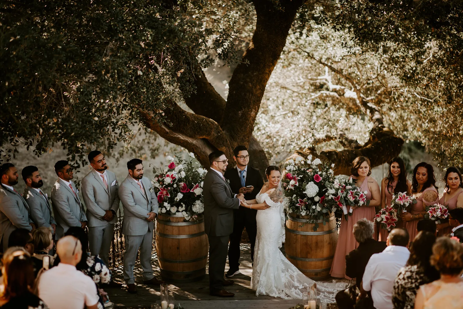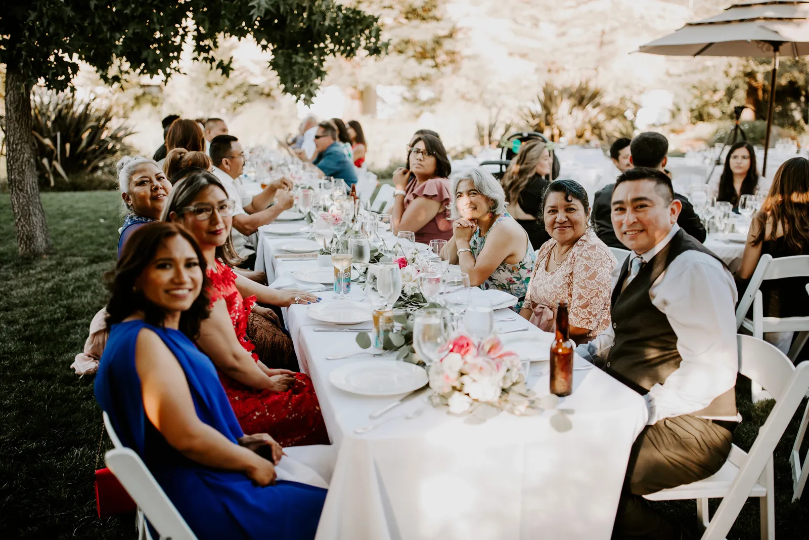 Happy Real Weddings Wednesdays, everyone. Today, we’re celebrating Leslie + Rudy’s beautiful Mountain House Estate wedding, complete with beautiful sunset photos, a stunning rose-petal wedding cake, and more. Keep scrolling to read more about the couple, and to see more amazing photos!