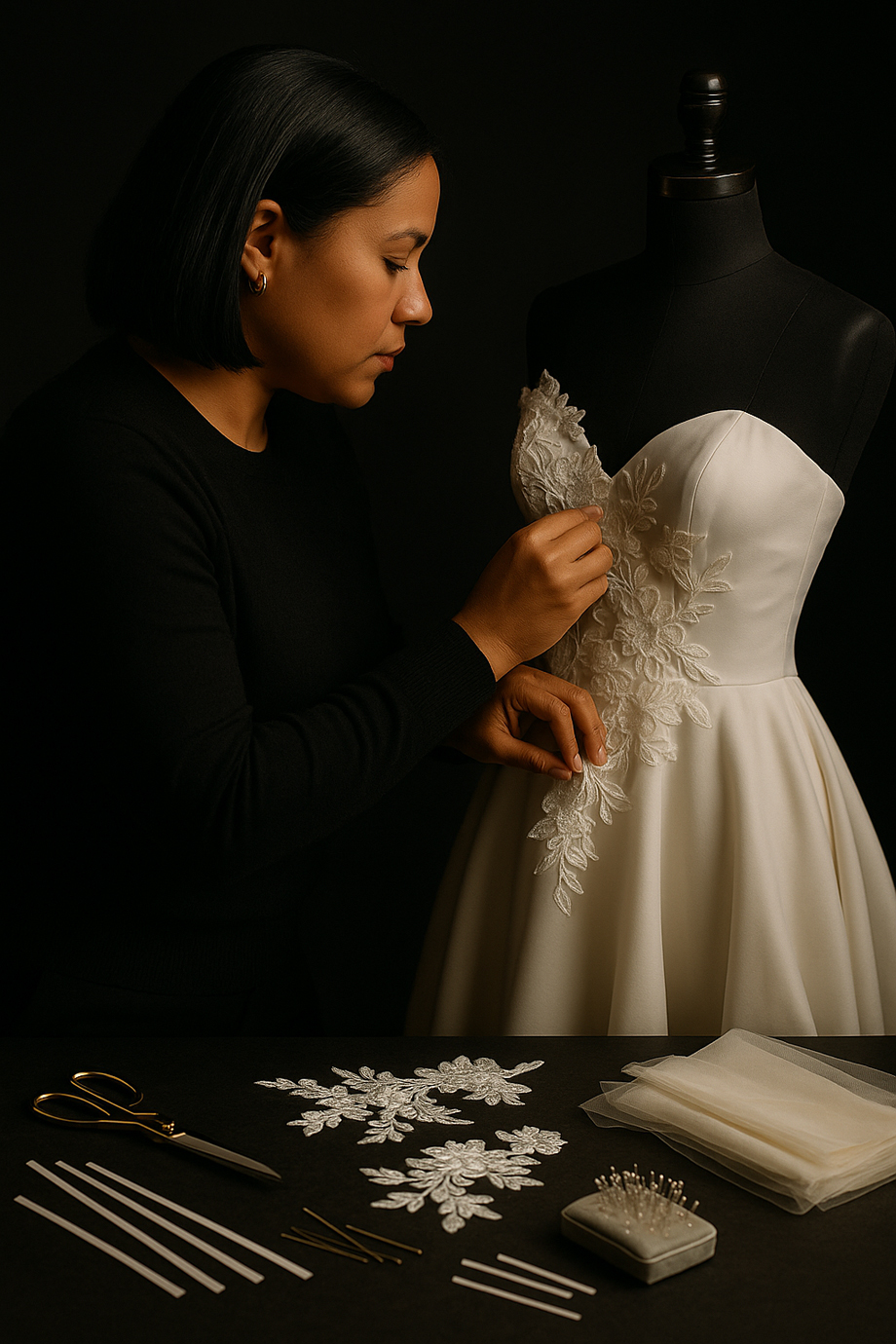 With over a decade of bridal expertise, deep gown knowledge, and precision tailoring management, my team and I handle every detail including fittings, pinning, design adjustments, steaming, and final delivery so you can simply enjoy the moment.