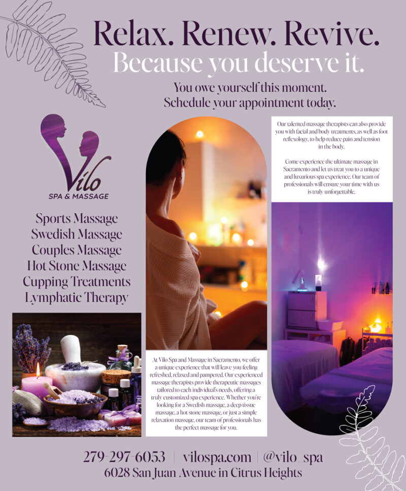 At Vilo Spa and Massage in Sacramento, we offer a unique experience that will leave you feeling refreshed, relaxed and pampered. Our experienced massage therapists provide therapeutic massages tailored to each individual’s needs, offering a truly customized spa experience. Whether you’re looking for a Swedish massage, a deep tissue massage, a hot stone massage, or just a simple relaxation massage, our team of professionals has the perfect massage for you.
