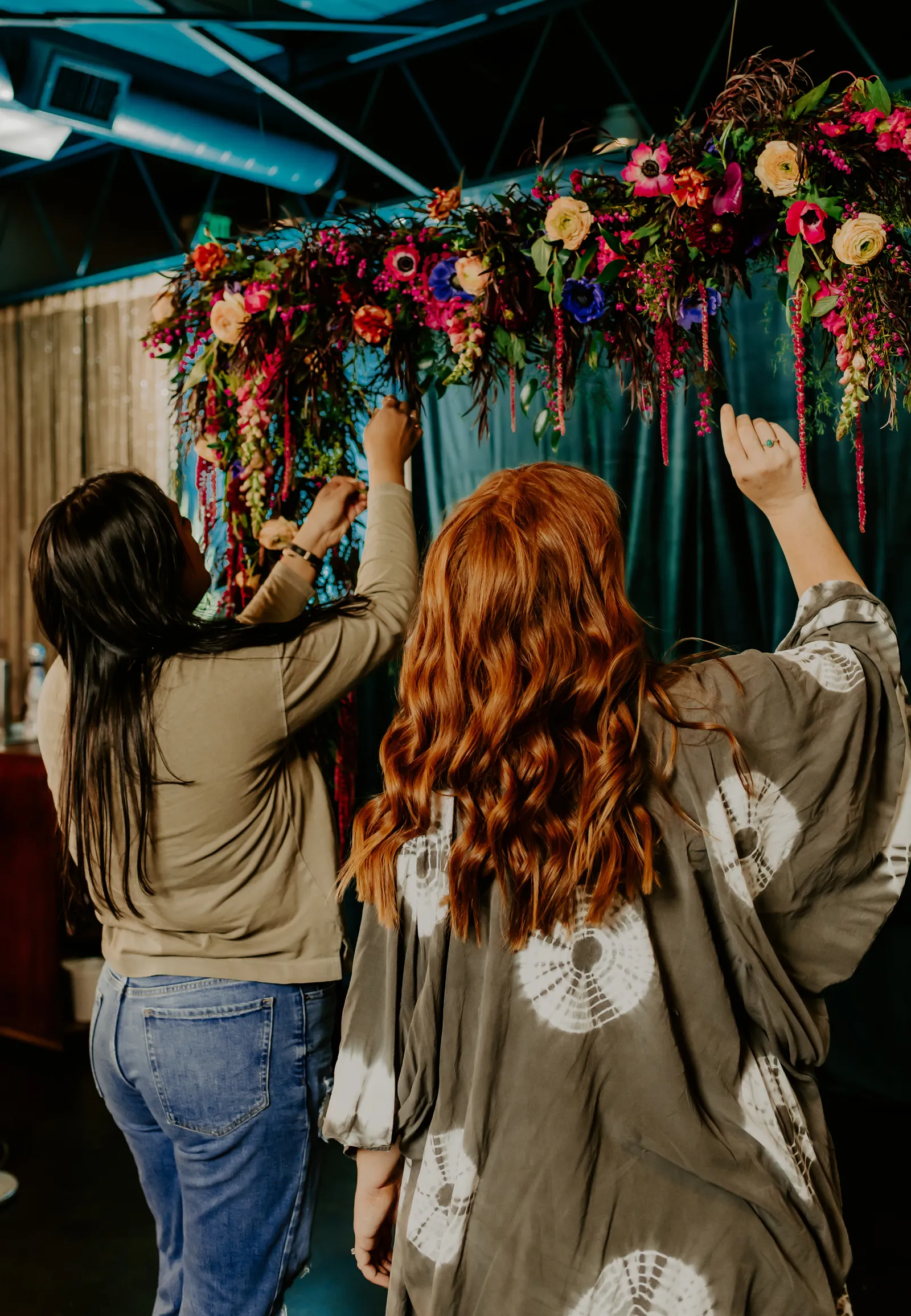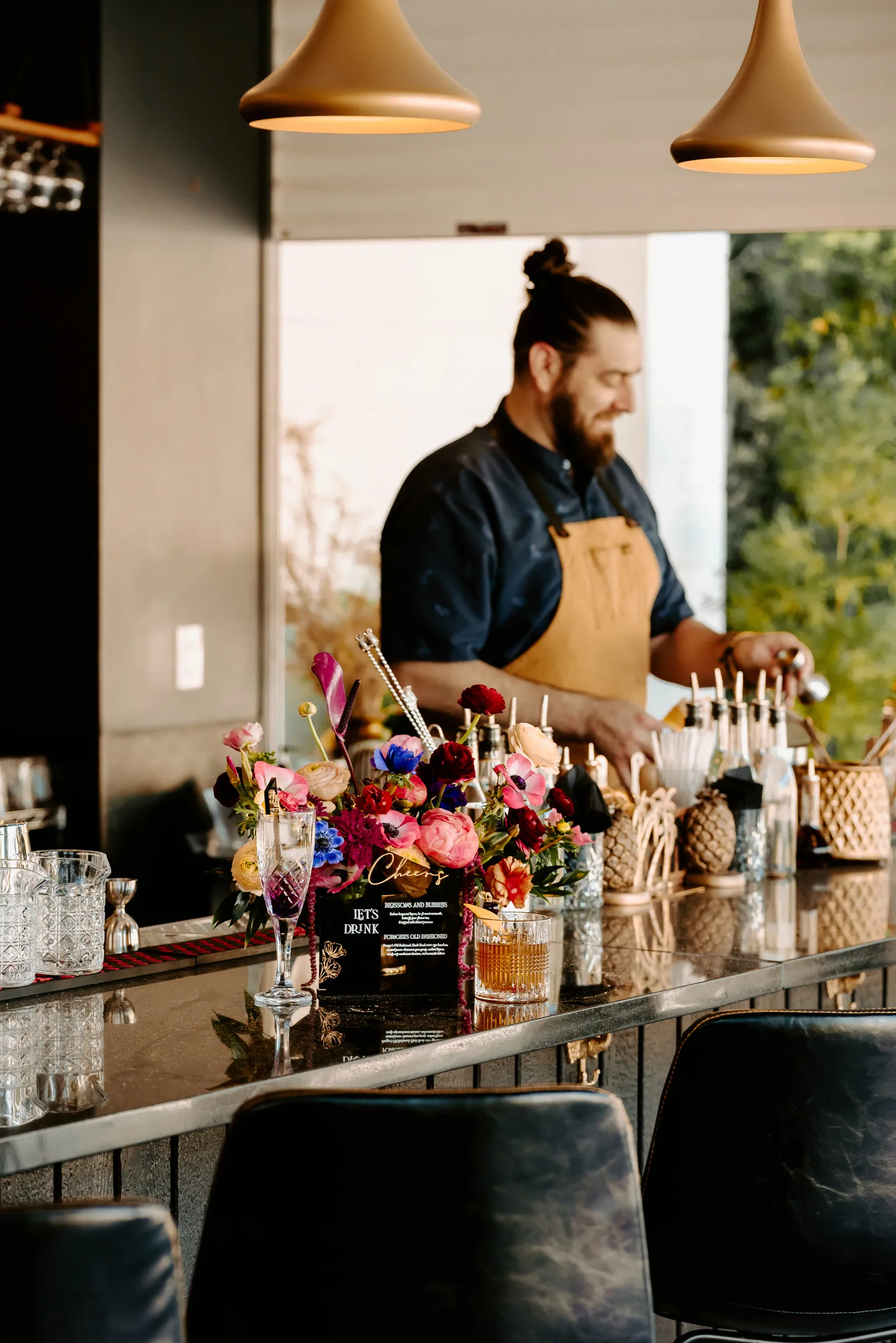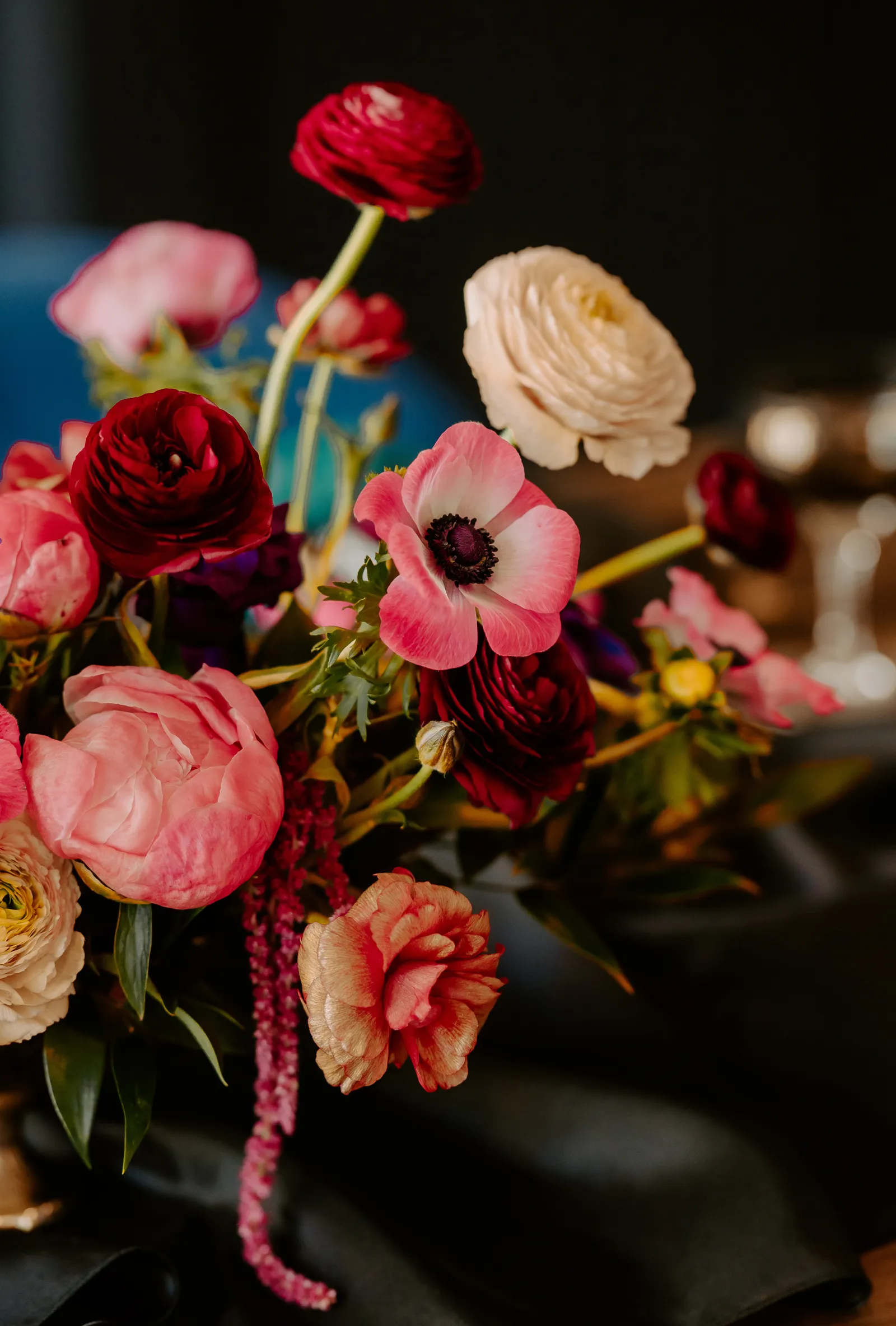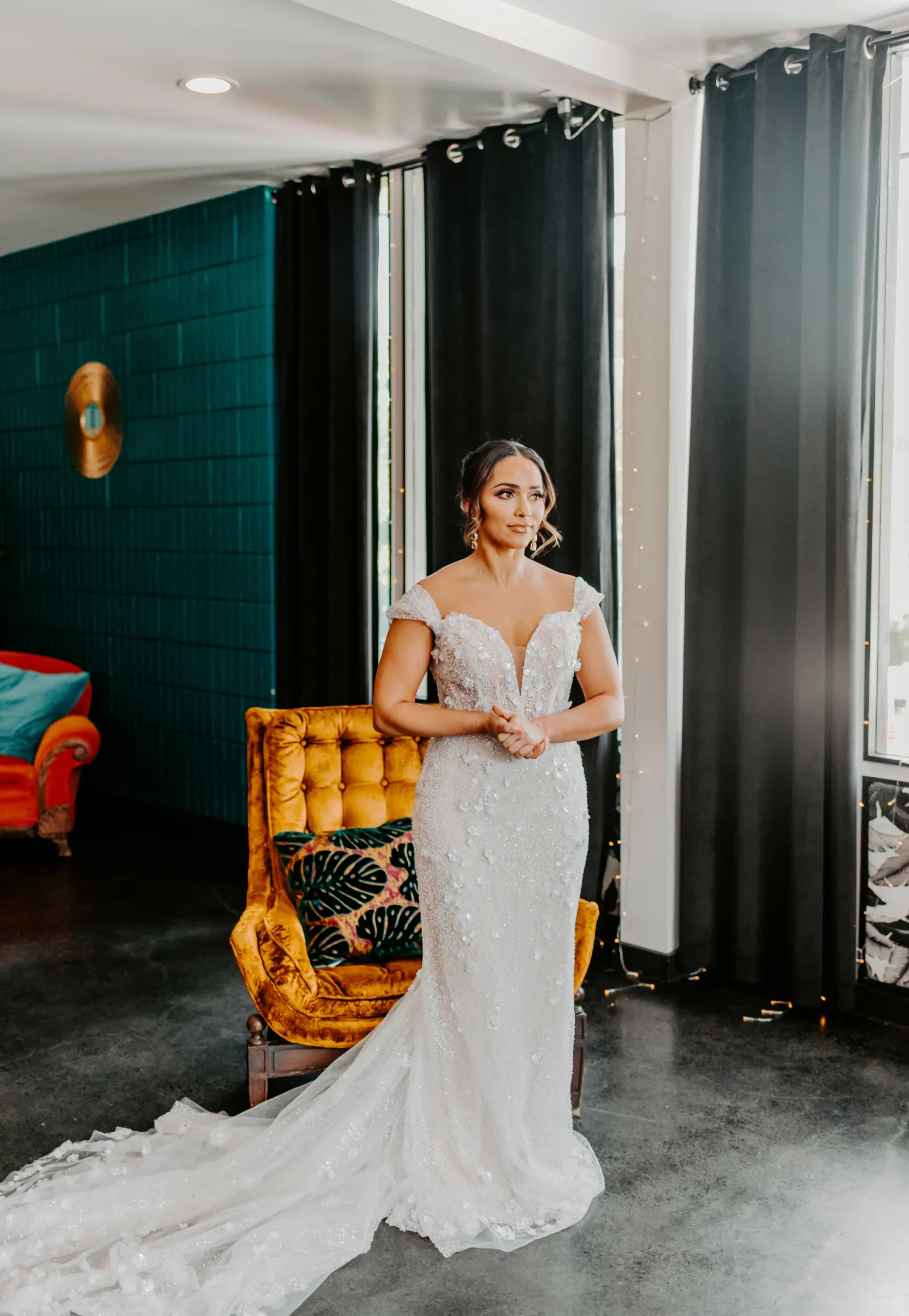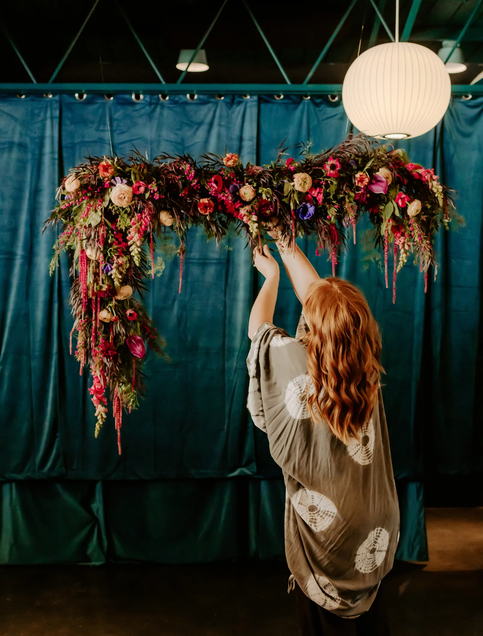 Happy Submitted Styled Shoot Sunday, folks! Today, we have an absolutely unique and colorful styled shoot with tons of teal and pops of deep fuchsia. This beautiful shoot has a bit of everything for everyone, be it sleek tuxedos, courtesy of Tuxedo Den, a too-pretty-to-eat wedding cake, a venue full of retro vibes (thanks Shangri-la Fair Oaks!), or a mouthwatering food and drink setup. Keep scrolling to get in on all the fun details. Happy Sunday, and happy reading!