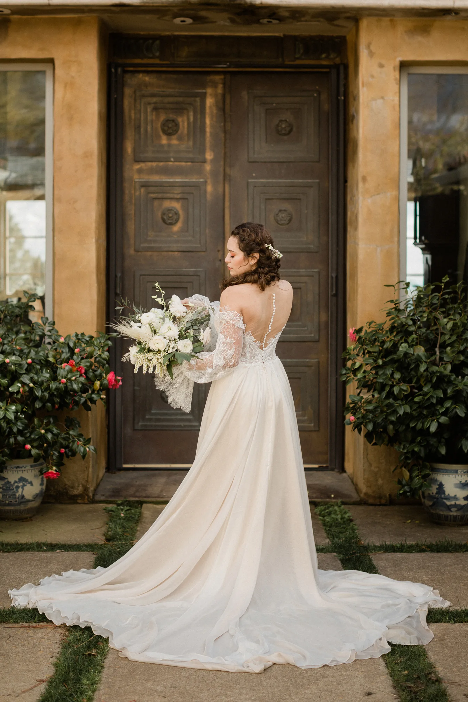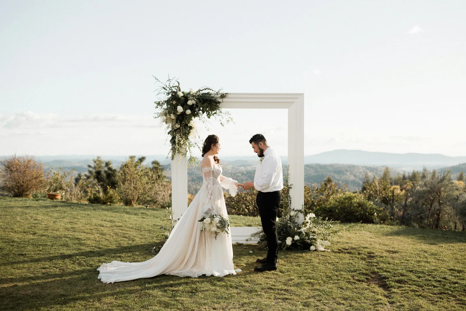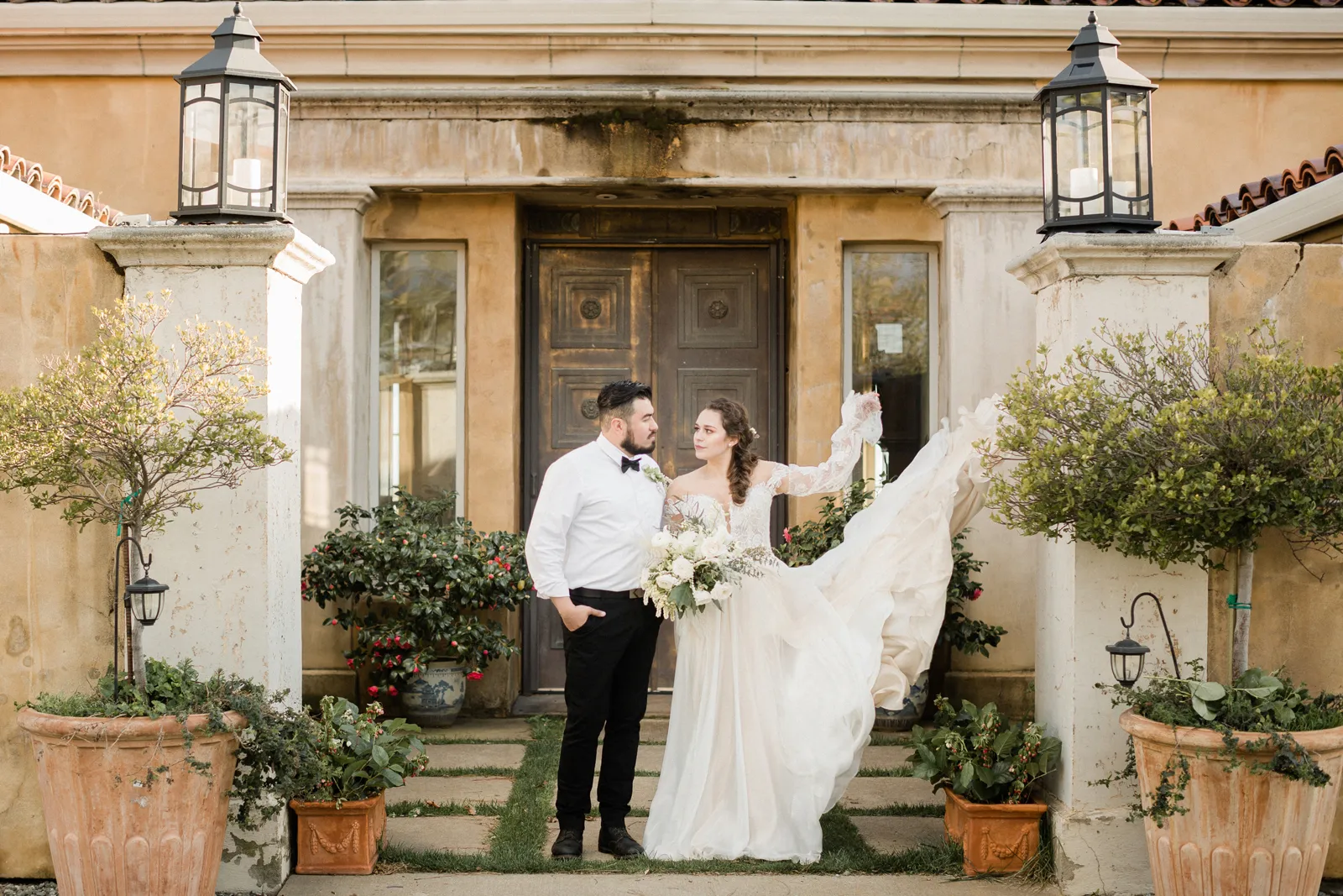 “We are inspired by the timeless beauty of the venue, Venticello. We wanted to keep it, classic, timeless, and romantic. It was mid march and Covid had just started to effect the wedding industry. Our florist had a canceled event and a whole bunch of flowers, not wanting them to go to waste, and with a bit of anxious feeling that things were about to change, we put together this shoot. We wanted to show that an elopement or micro wedding could be very elegant and timeless and not all elopements need to including hiking boots ” -Joleen, Joleen Willis Photography