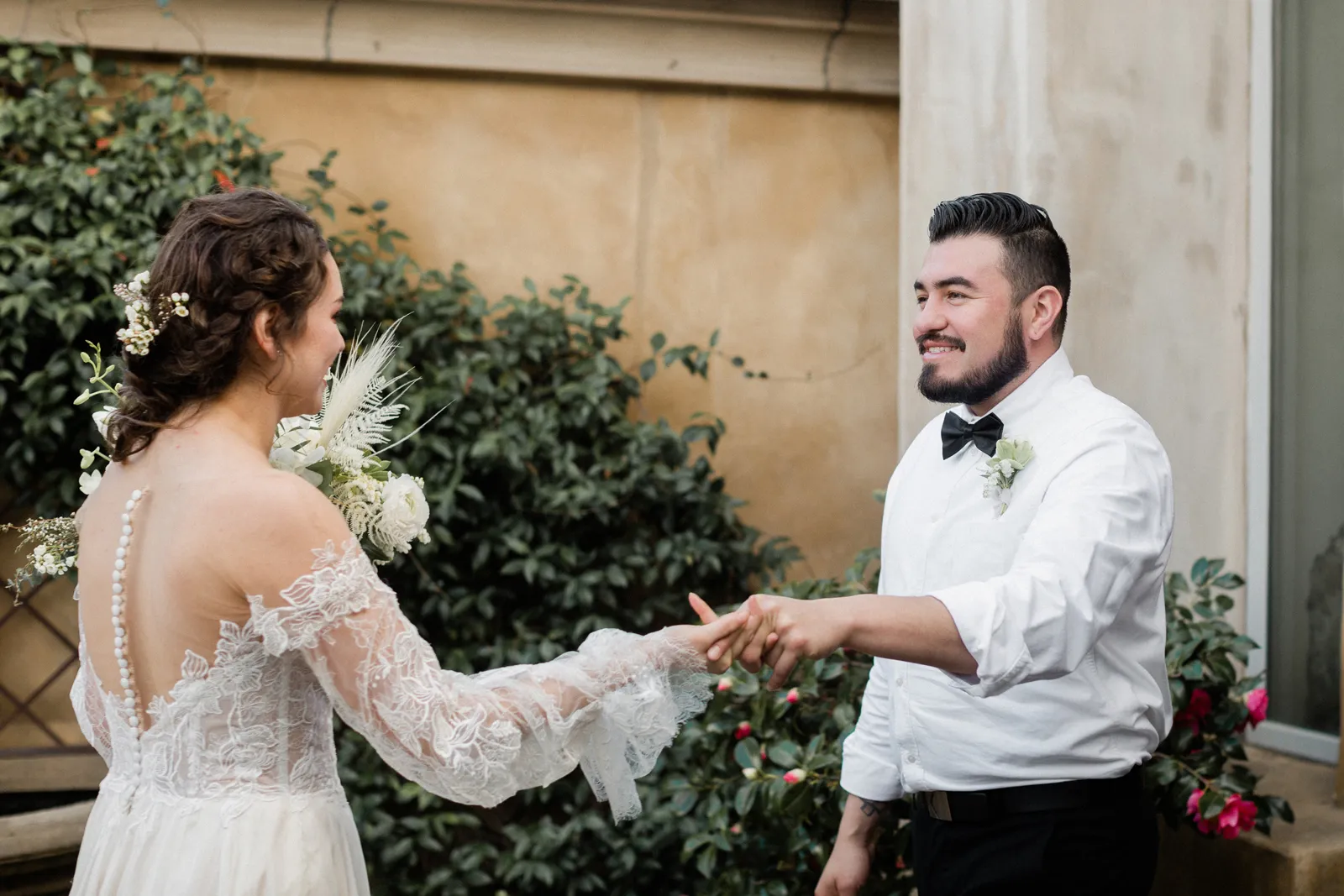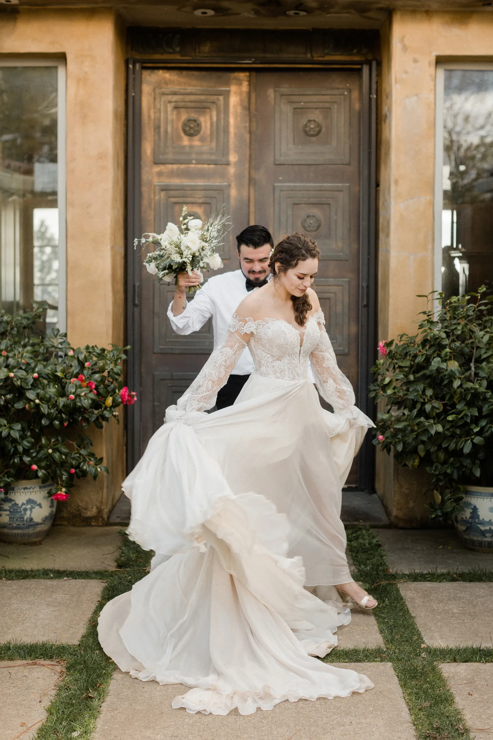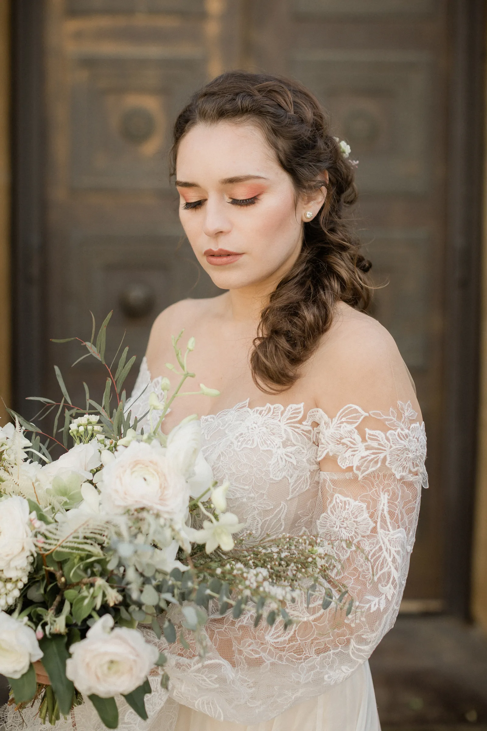 “We are inspired by the timeless beauty of the venue, Venticello. We wanted to keep it, classic, timeless, and romantic. It was mid march and Covid had just started to effect the wedding industry. Our florist had a canceled event and a whole bunch of flowers, not wanting them to go to waste, and with a bit of anxious feeling that things were about to change, we put together this shoot. We wanted to show that an elopement or micro wedding could be very elegant and timeless and not all elopements need to including hiking boots ” -Joleen, Joleen Willis Photography