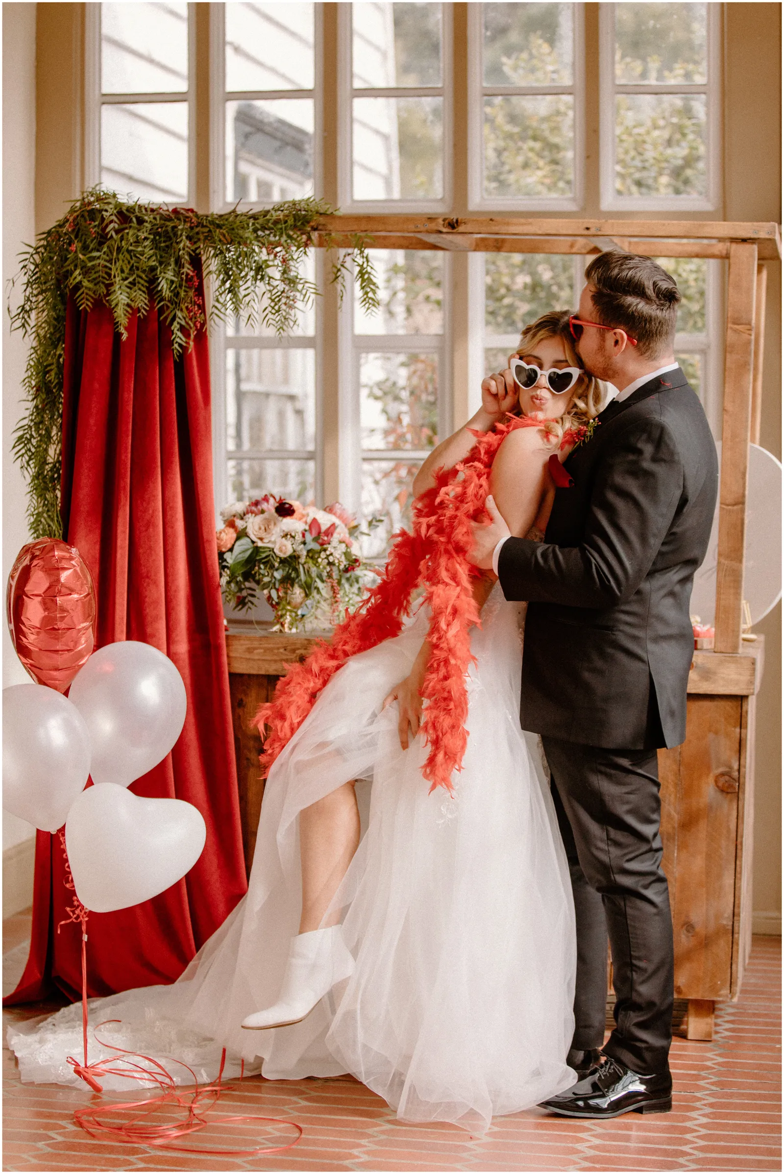 It’s a Valentine’s Day Love-Inspired Romantic + Chic Wedding Styled Shoot, with a real couple as our models who are clearly crazy in love with each other…and we cannot help ourselves but to fall in love with them too!