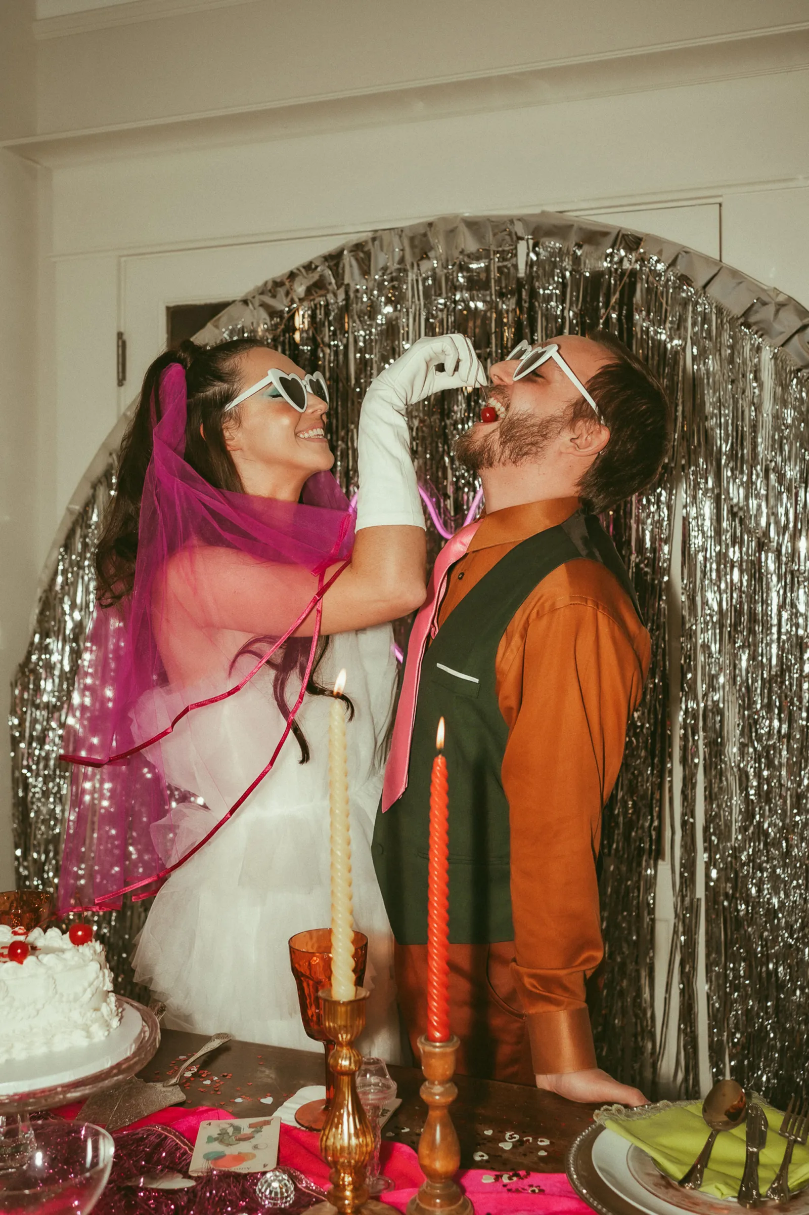 Happy Submitted Styled Shoot Sunday, everyone! We loved this fun, retro, playful and romantic shoot so much we couldn’t wait to share it with you. Think disco balls, 50s’ and 60s’ inspired decor, plenty of romantic and flirty photos, and so much more! With two gorgeous couples photographed by Pixel Perfect Photo and Missy Bee Photography at On Broadway Chico, we’re confident you’ll find plenty of inspiration today. Happy Sunday!