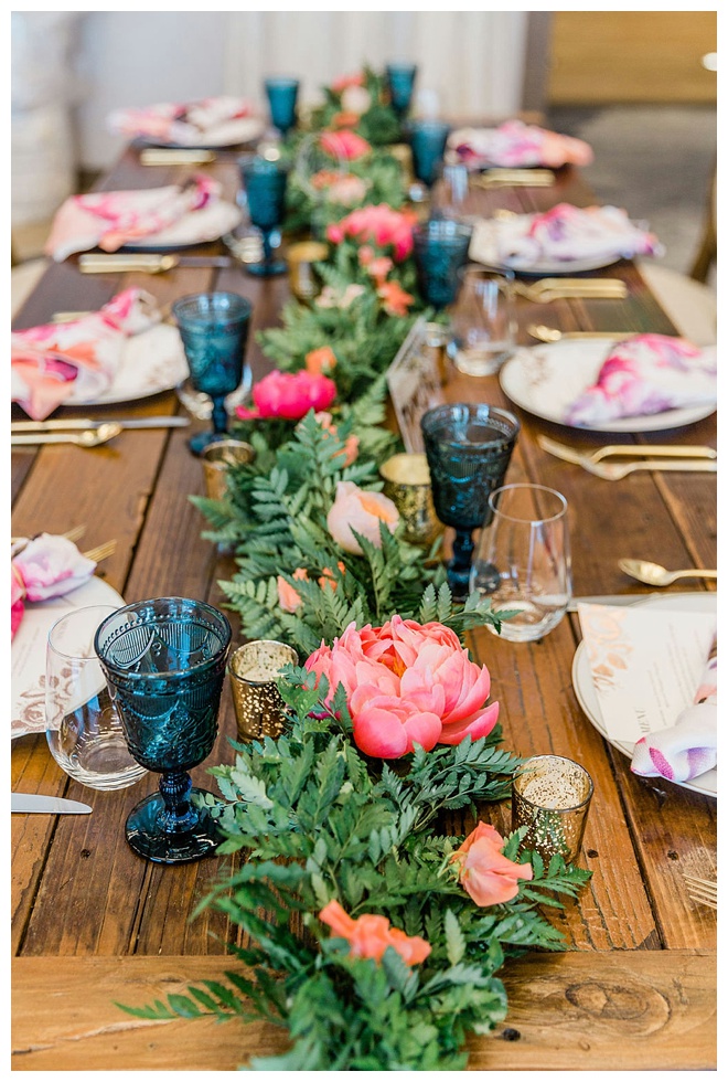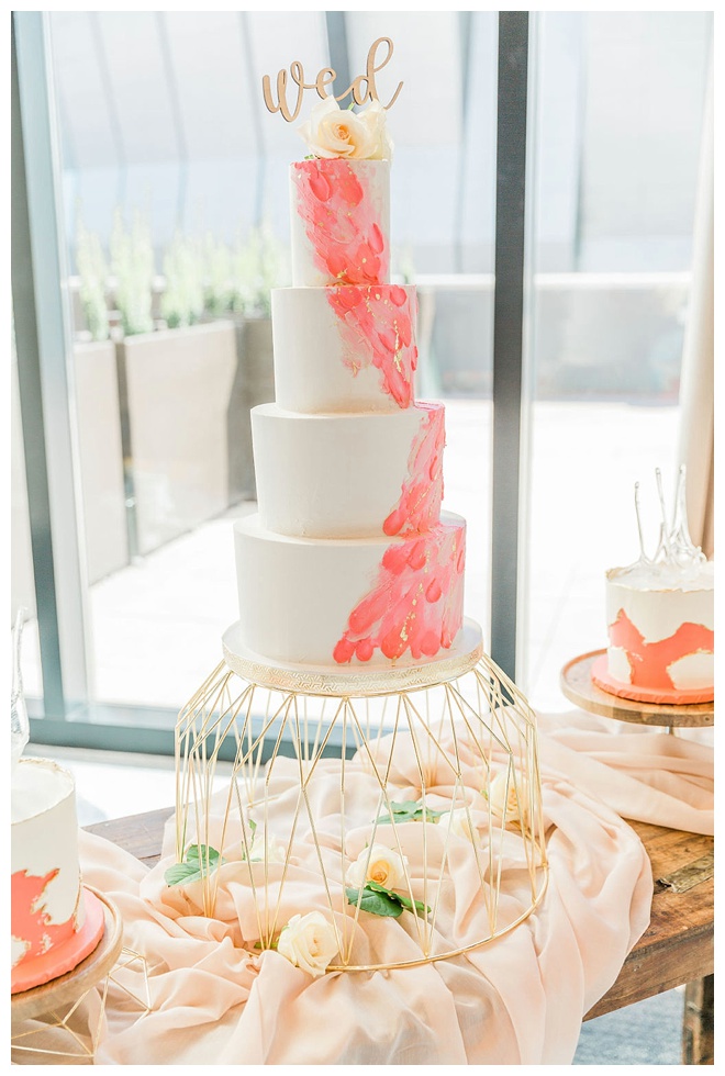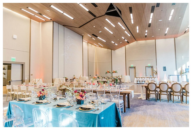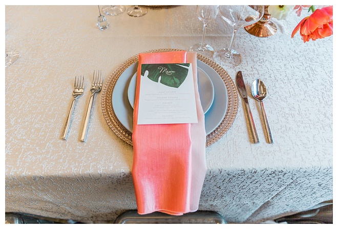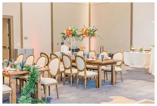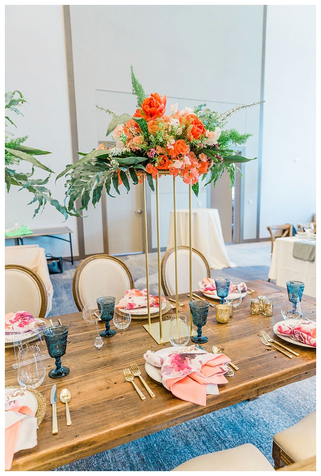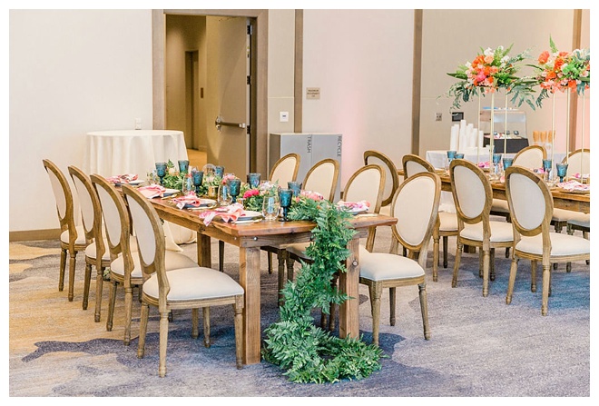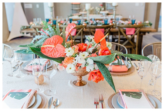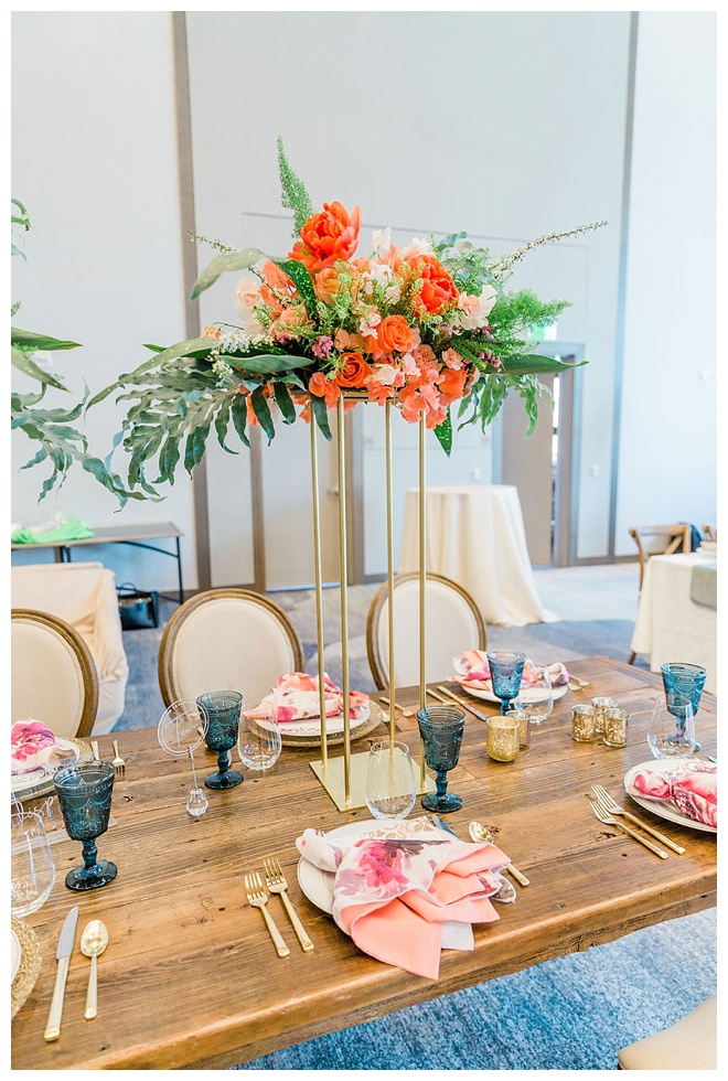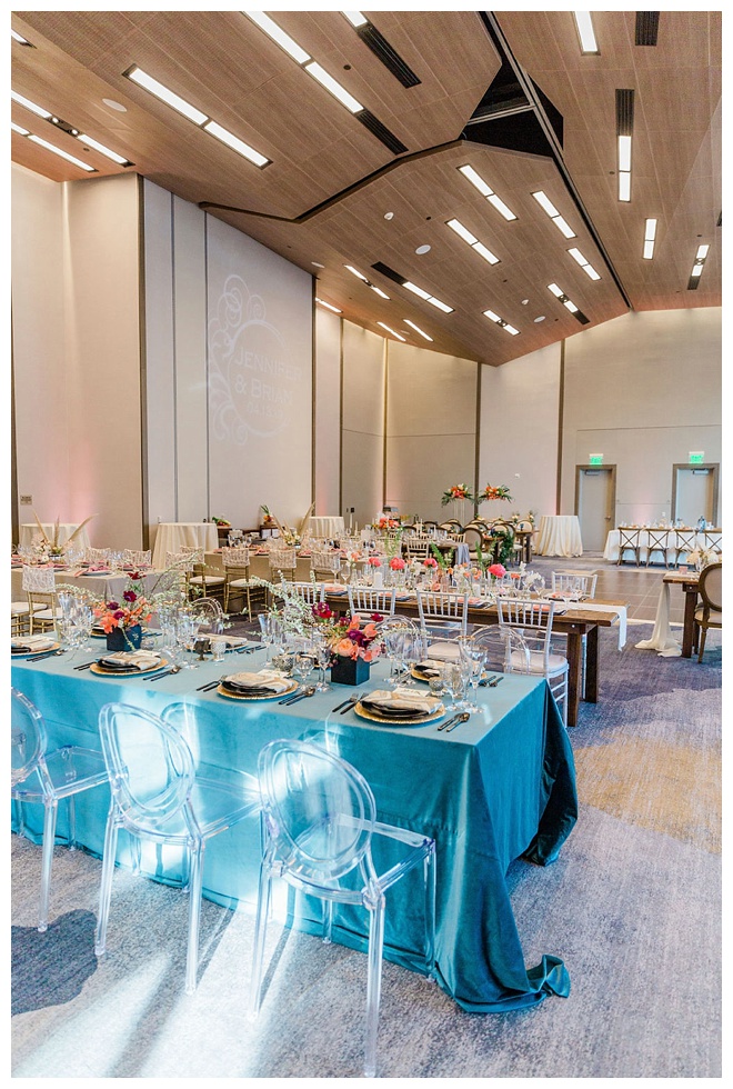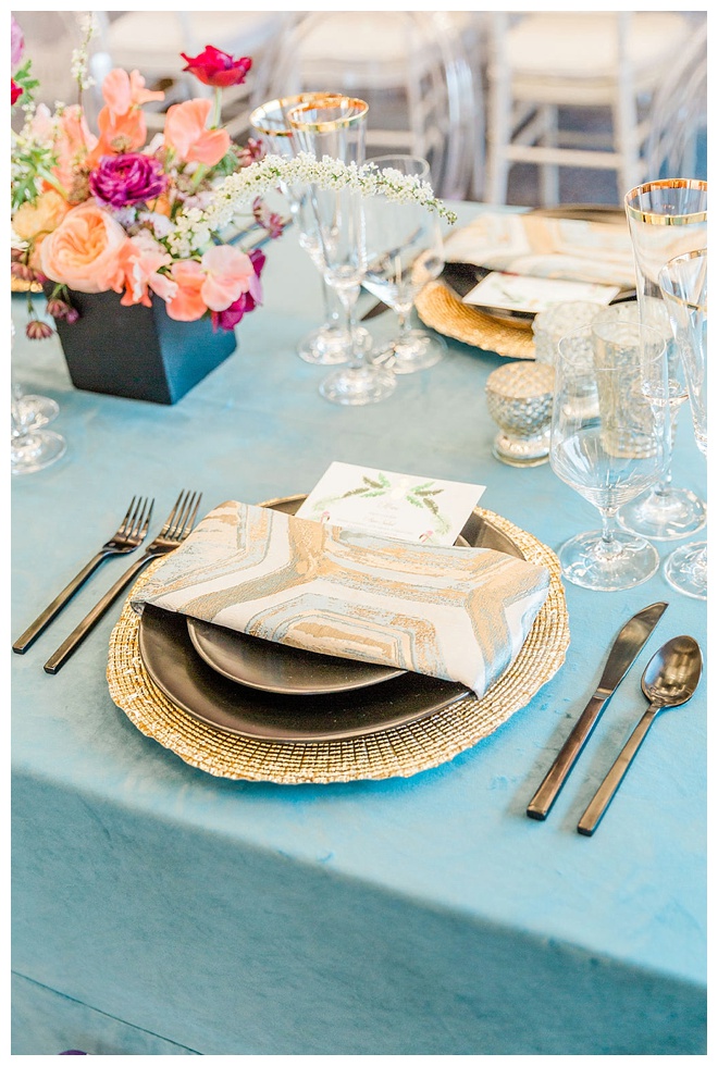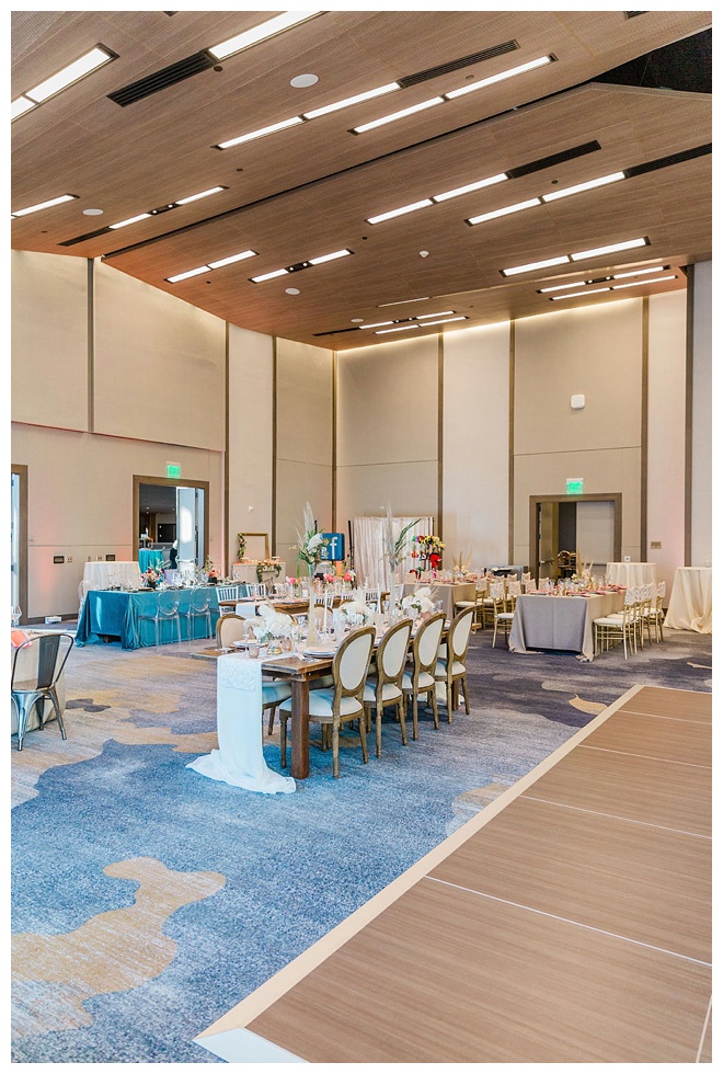 The show producer says, “We challenged our vendors to use the energizing colors found in nature to wow our guests. Think of it as a modern take on land, sky, and sea. Spoiler alert: they killed it. Between the balloon installation, rose gold dress and the blown sugar glass cakes, we couldn’t possibly pick a favorite detail. If Pantone had a Color of the Year party, this would be it.”