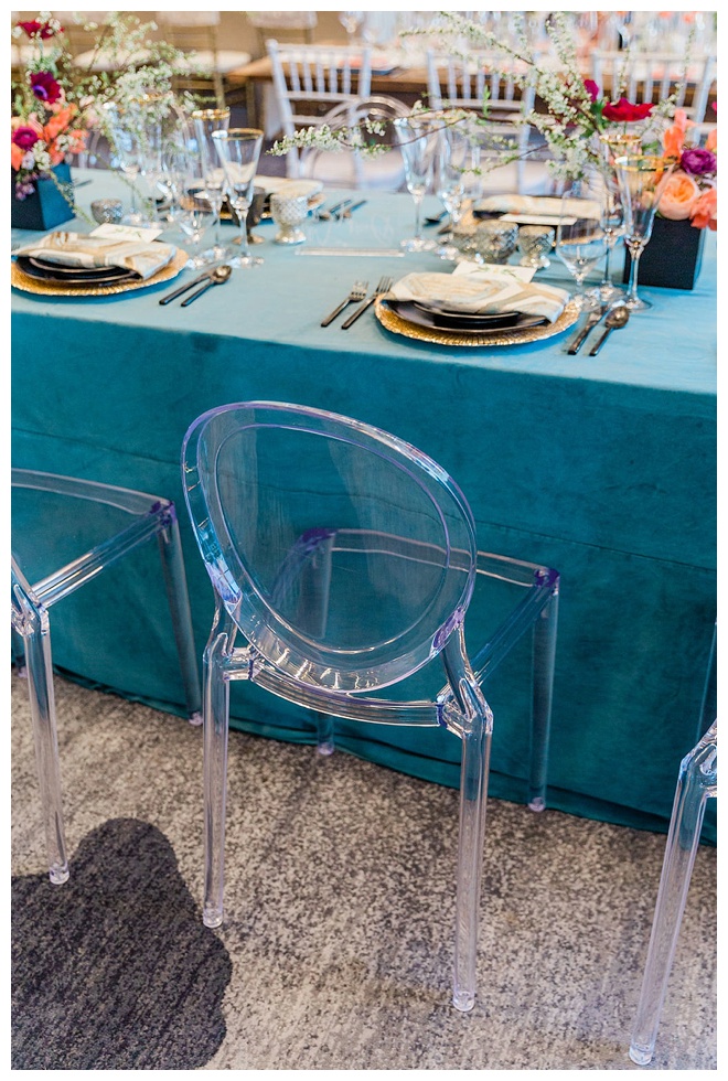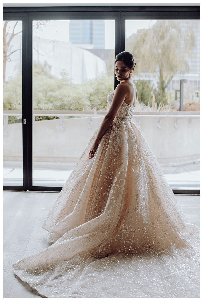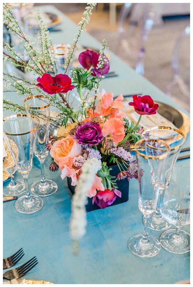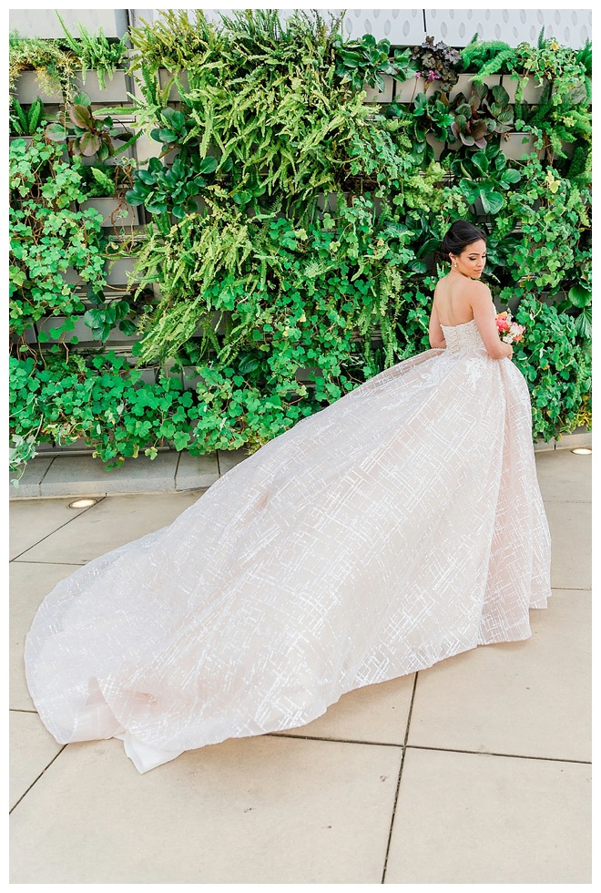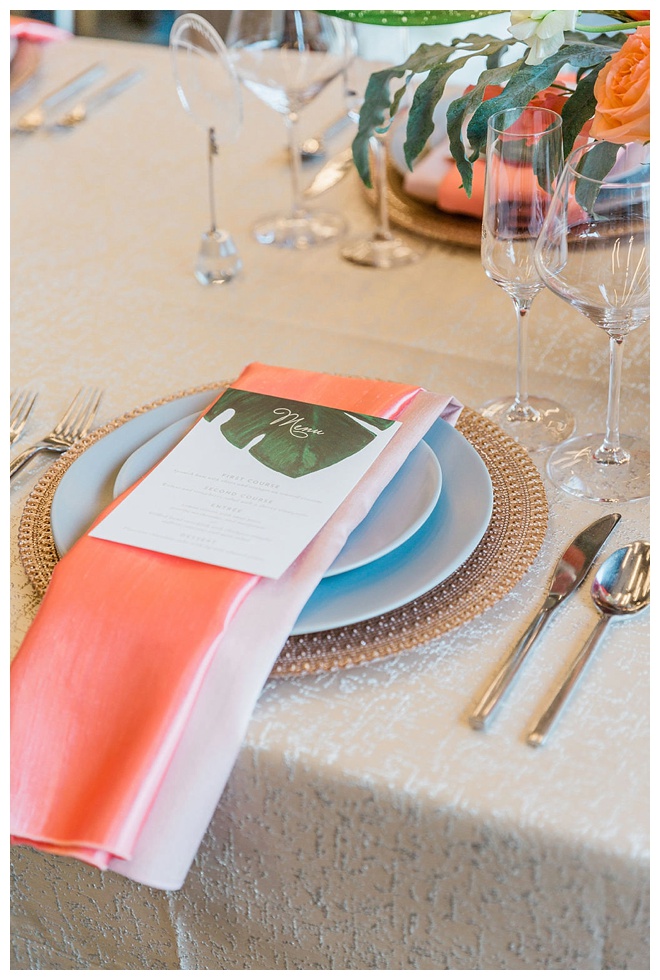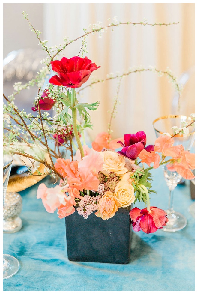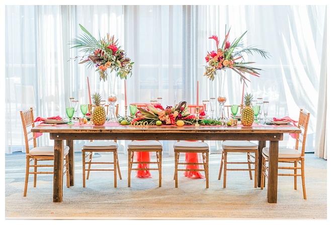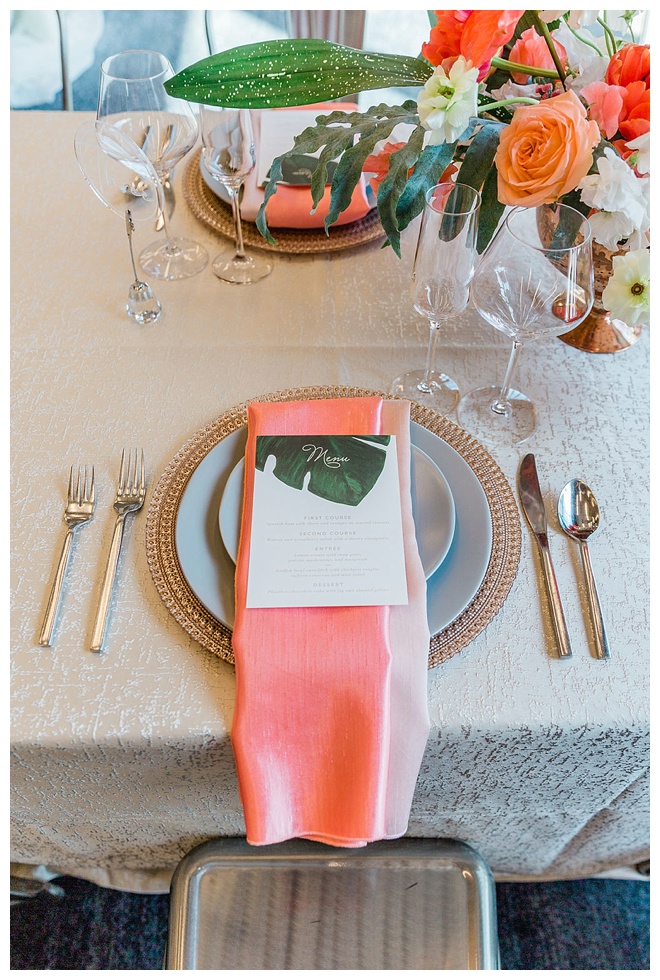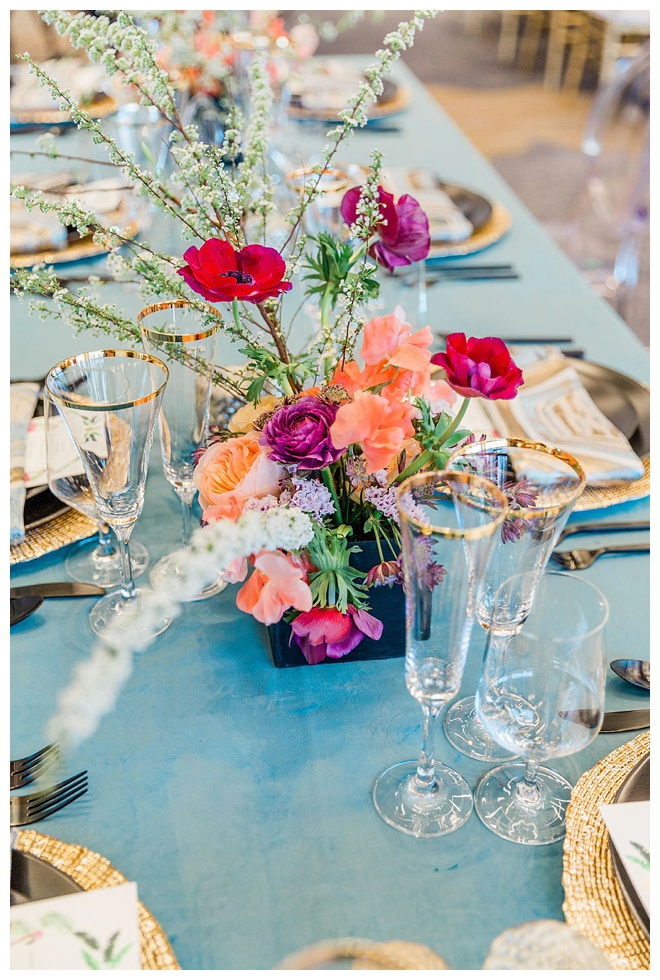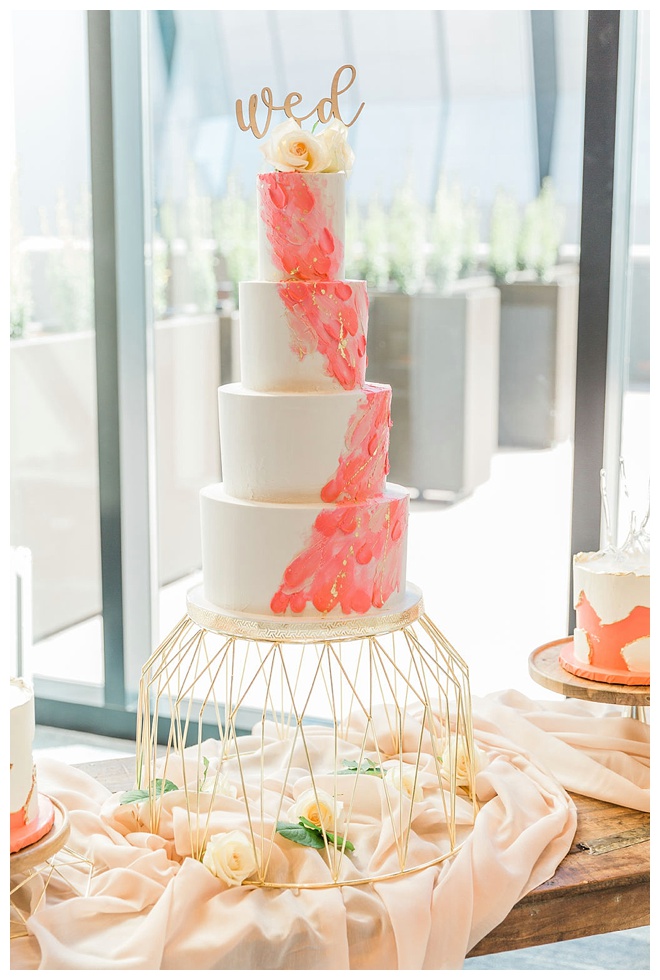 The show producer says, “We challenged our vendors to use the energizing colors found in nature to wow our guests. Think of it as a modern take on land, sky, and sea. Spoiler alert: they killed it. Between the balloon installation, rose gold dress and the blown sugar glass cakes, we couldn’t possibly pick a favorite detail. If Pantone had a Color of the Year party, this would be it.”