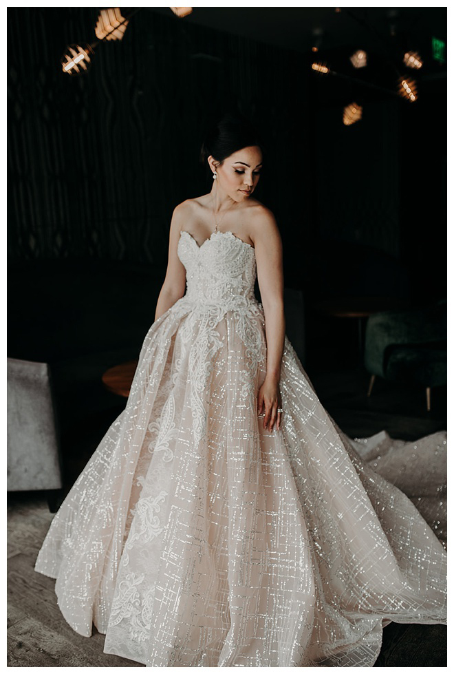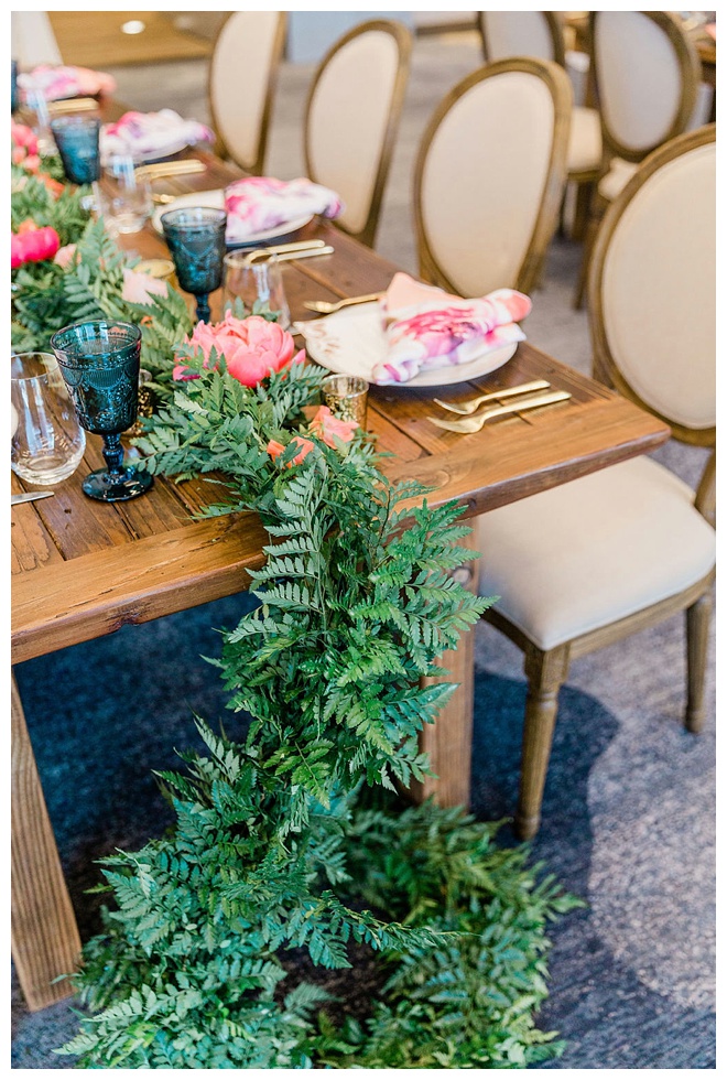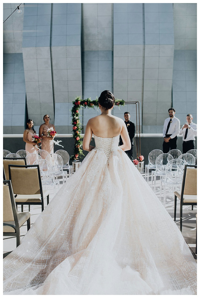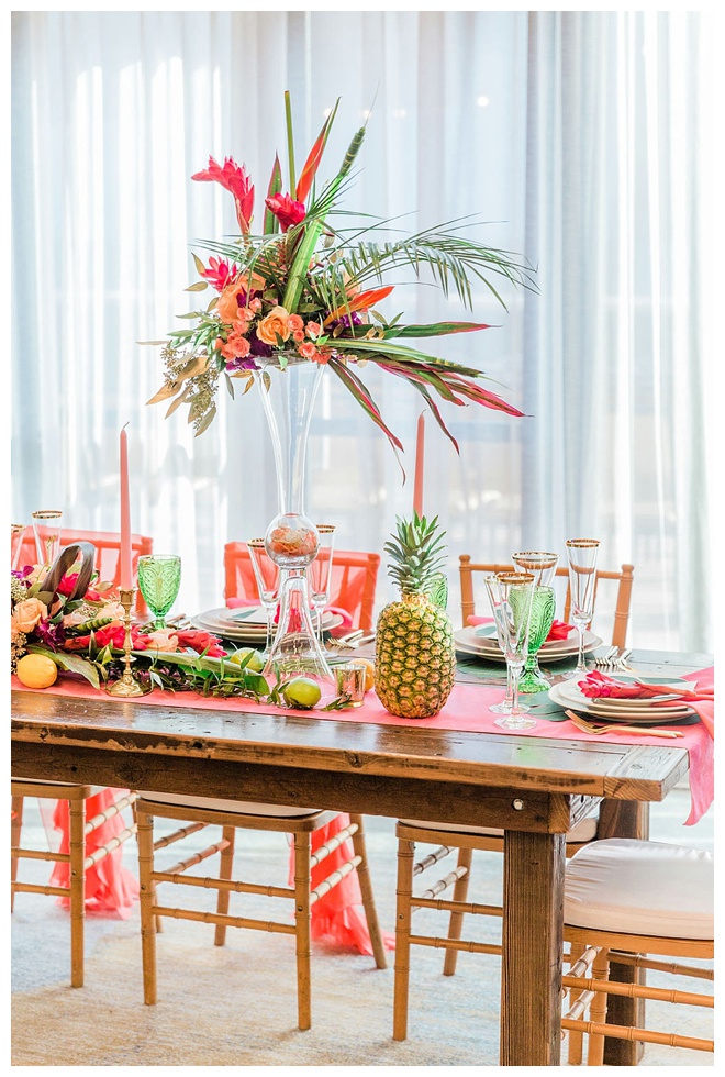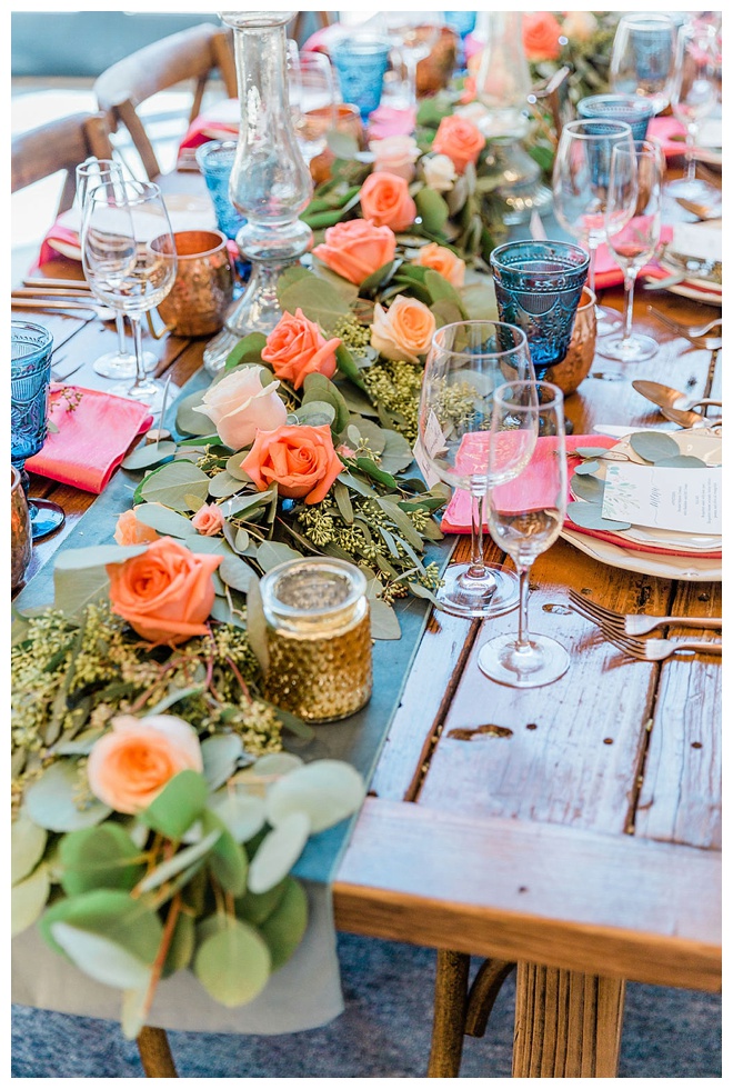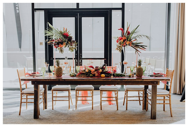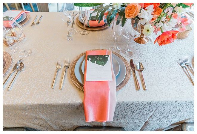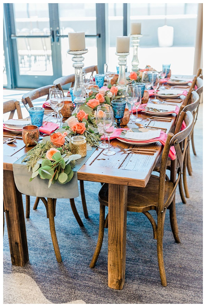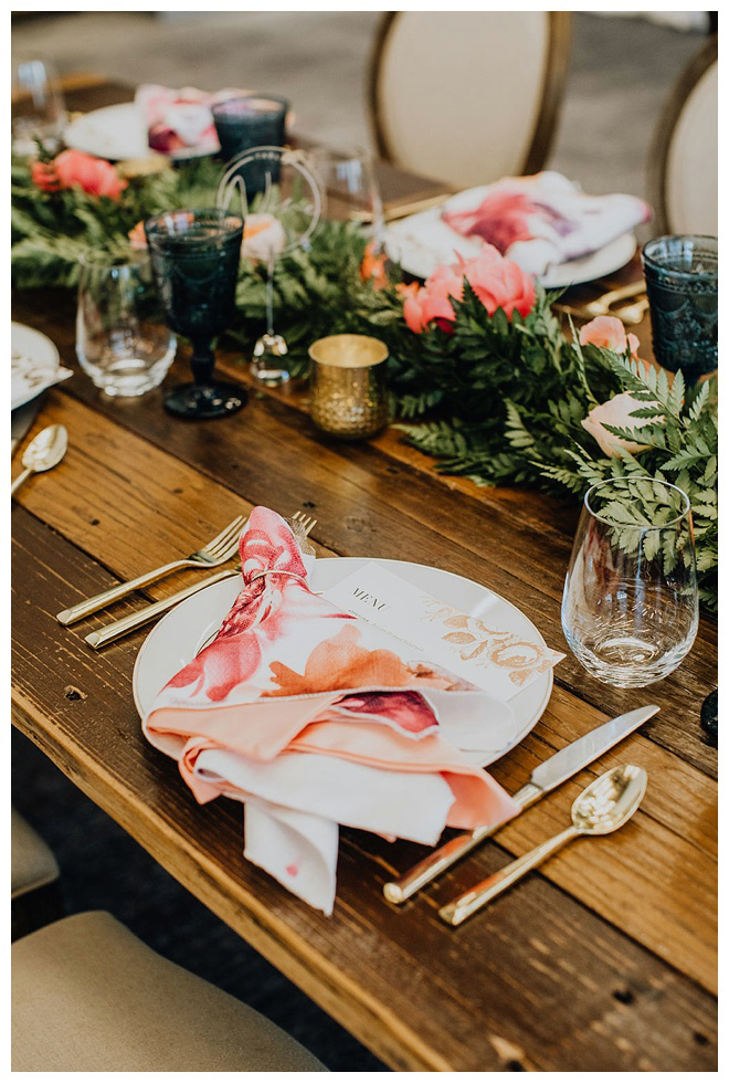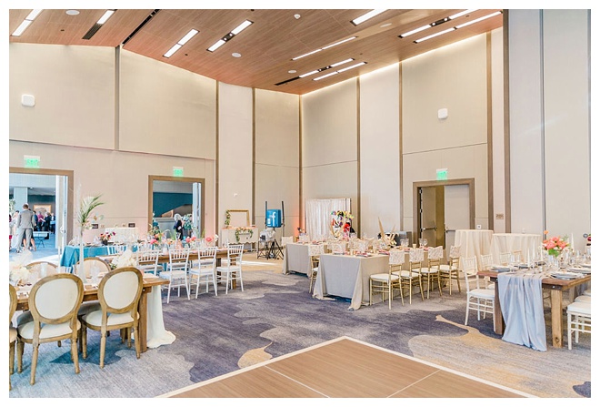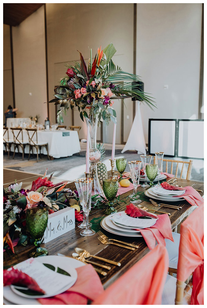 The show producer says, “We challenged our vendors to use the energizing colors found in nature to wow our guests. Think of it as a modern take on land, sky, and sea. Spoiler alert: they killed it. Between the balloon installation, rose gold dress and the blown sugar glass cakes, we couldn’t possibly pick a favorite detail. If Pantone had a Color of the Year party, this would be it.”